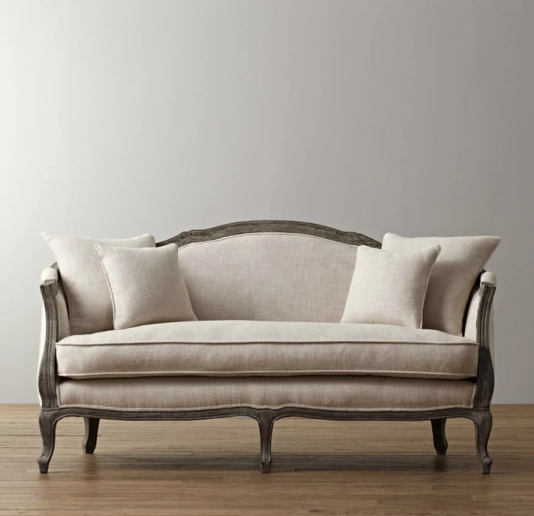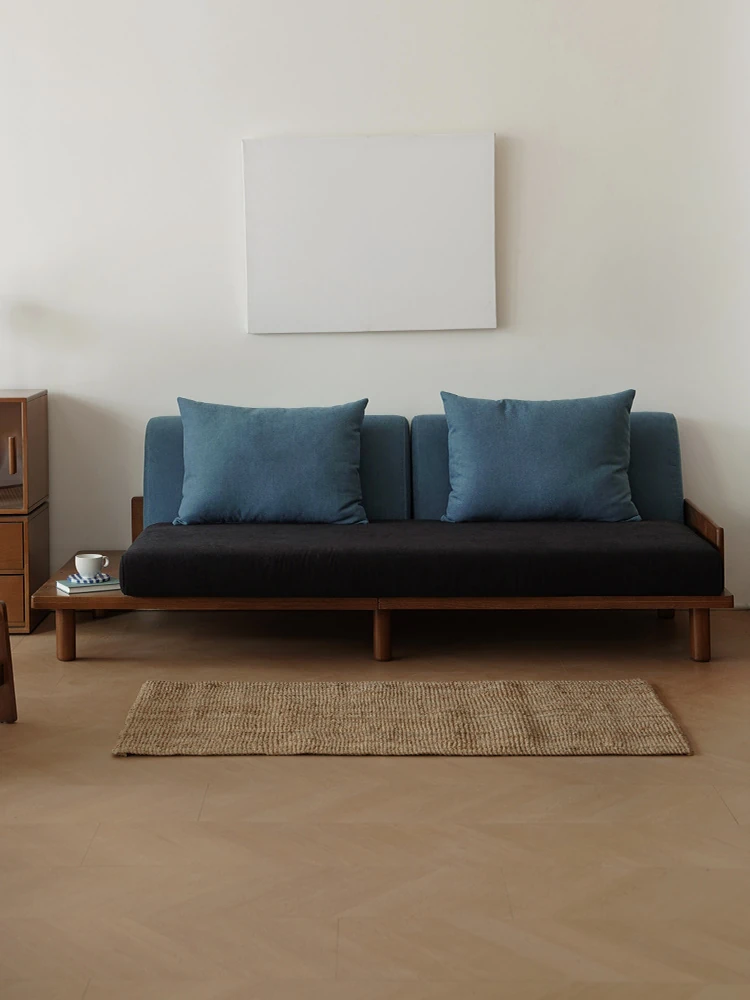アンザイ野実木ソファー - ヴィンテージスタイルのリビング用直線ソファー。全実木製、ヨーロッパのアンティークデザインで、冬夏両用のカラーブロックが魅力!快適な座り心地でお部屋をおしゃれに演出します。