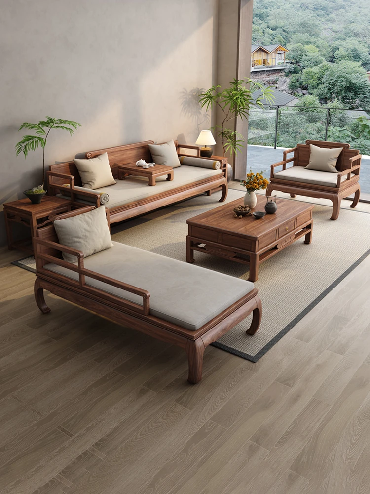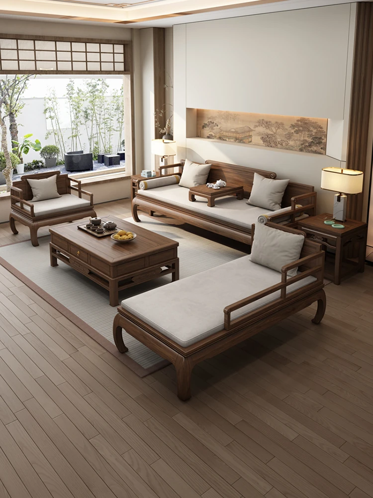 寸禾宋式美学南美胡桃木新中式实木沙发小戸型2025年新作貴妃ソファコンビネーション - スタイリッシュでコンパクトなデザインが魅力!あなたのリビングに上品なひとときを。