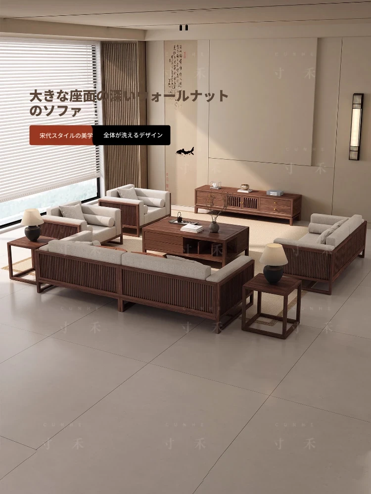 寸禾宋スタイル美学 南米ウォールナット無垢材ソファ 禅の心を感じる新中式リビング家具 全室セット 組み合わせ自由で、心安らぐ空間を演出!