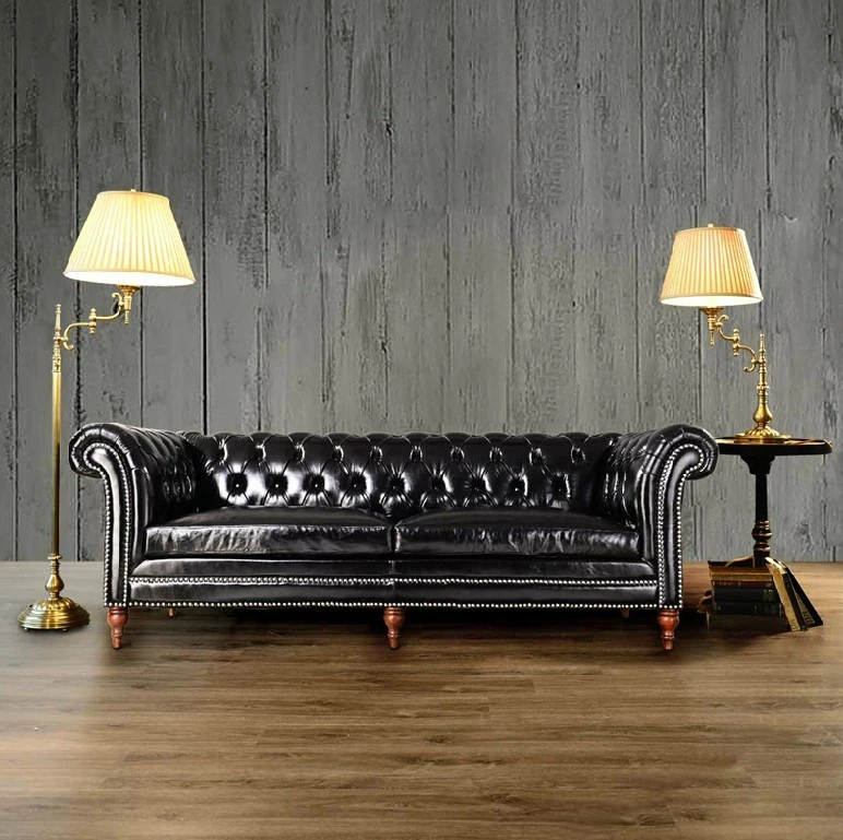 シックなカントリースタイルの本革ソファ|コンパクトなリビングに最適な一人掛け・二人掛け・三人掛けのレザーソファ|上質な牛革使用で、快適さとスタイルを両立!