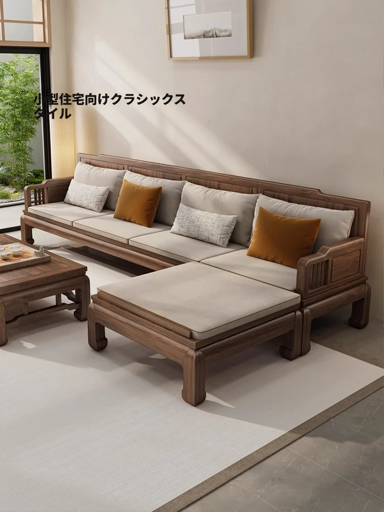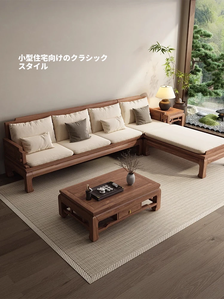 寸禾宋スタイル美学 南米クルミ材の新中式無垢材ソファ 小型住宅向け 貴妃風コンビネーションコーナーリビング用ソファで、上質な空間を演出!