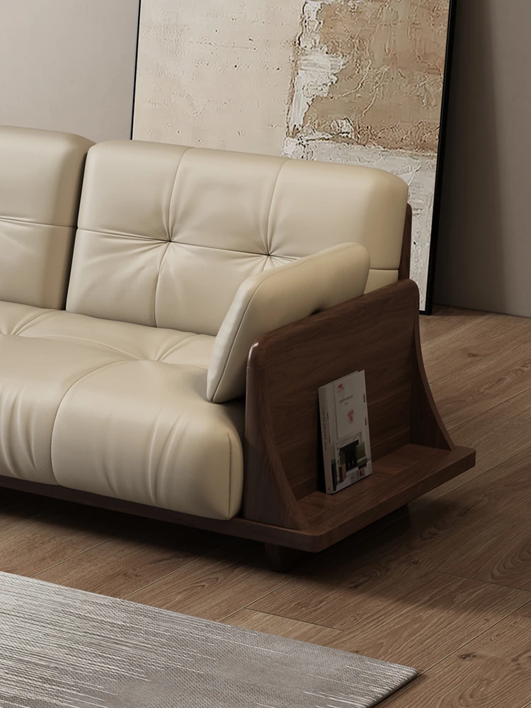 寸禾宋式美学のブラックウォールナット真皮ソファ - 新中式デザインで、小さなリビングにも最適!2025年の新作、居心地の良い家用ソファで、スタイリッシュな空間を演出します。