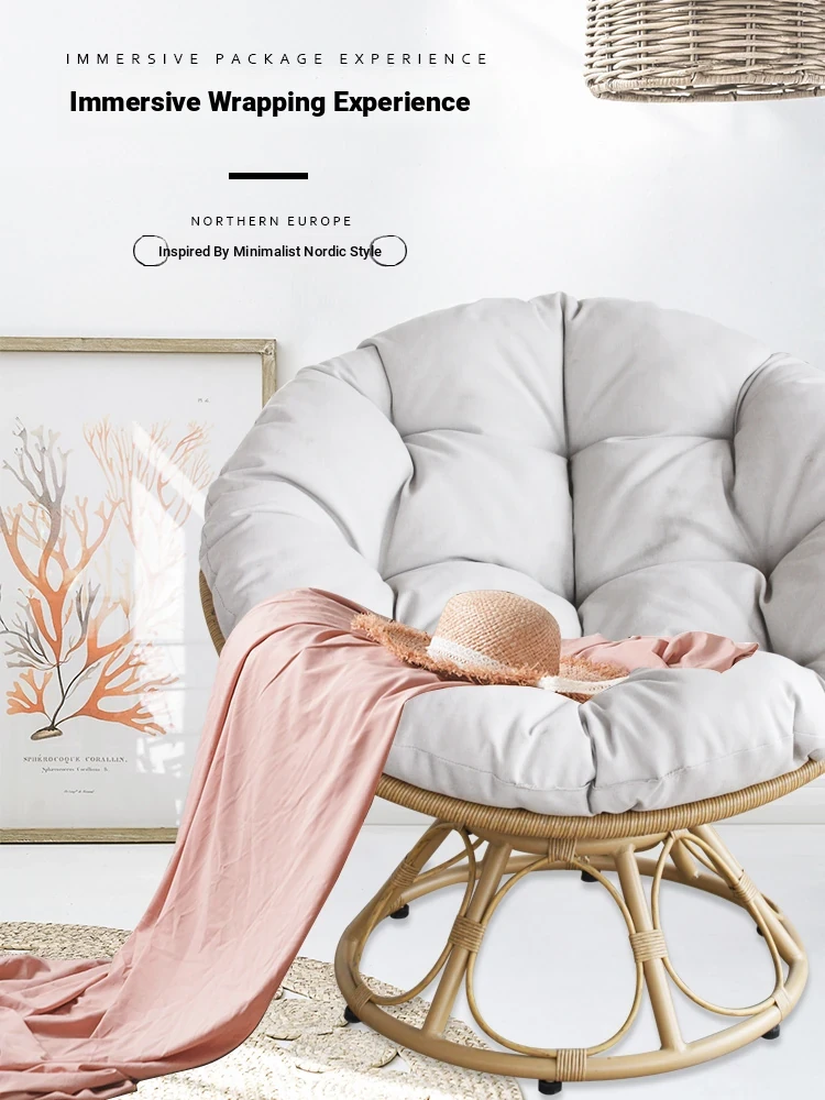 Cozy Rotating Rattan Lounge Chair - Round Outdoor Sofa Bed for Balcony, Perfect for Relaxing and Enjoying Your Leisure Time