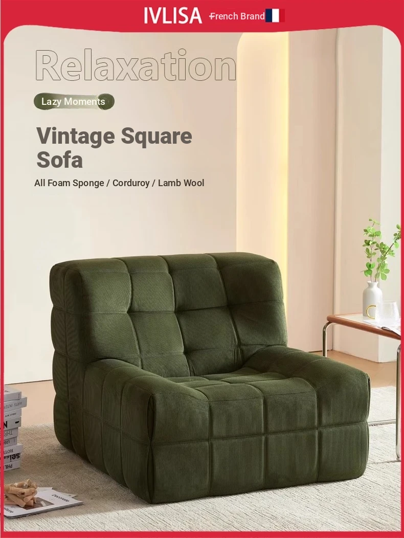 French IVLISA Lazy Sofa Caterpillar Retro Square Armchair - Versatile Design for Sitting and Lounging, Cat Scratch Resistant. Perfect for Cozy Spaces!