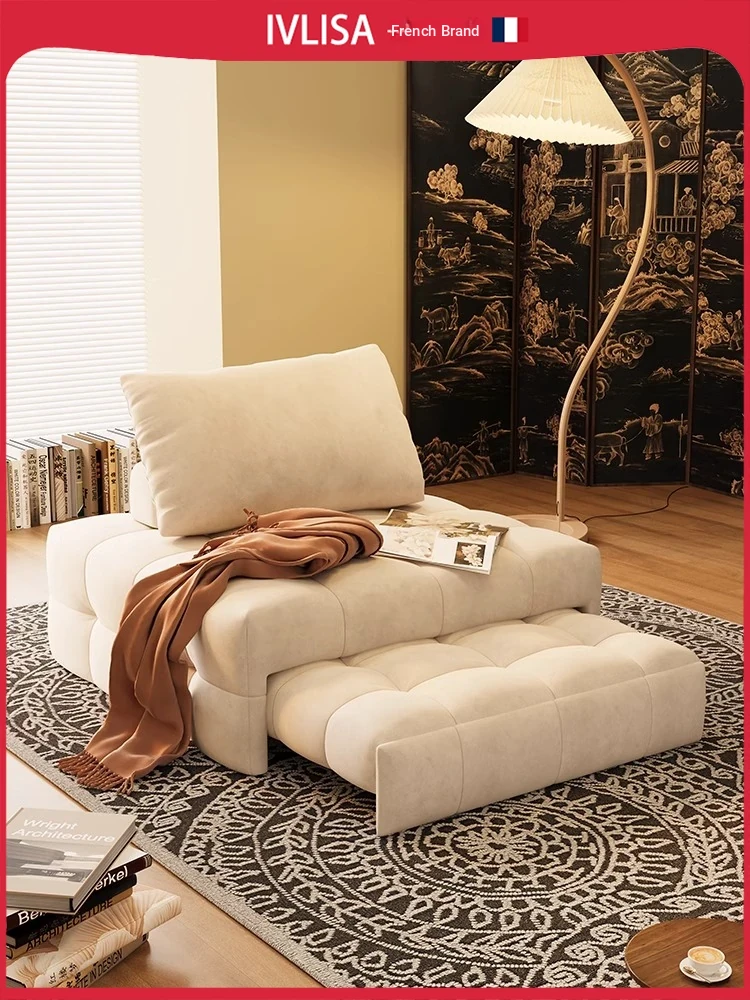 French IVLISA Multifunctional Lazy Sofa Bed – Versatile Lamb Fleece Leather Armchair for Solo and Group Relaxation, Perfect for Any Living Space!