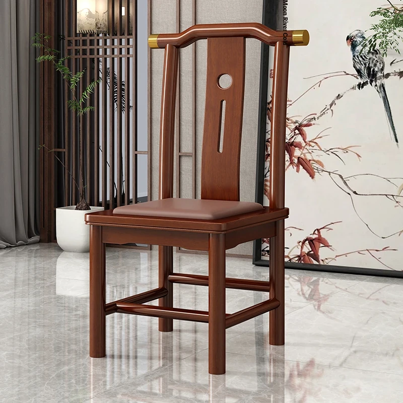 New Chinese Style Solid Wood Dining Chairs with Upholstered Comfort - Perfect for Home, Restaurants, and Tea Tables - Elegant Official Hat Design