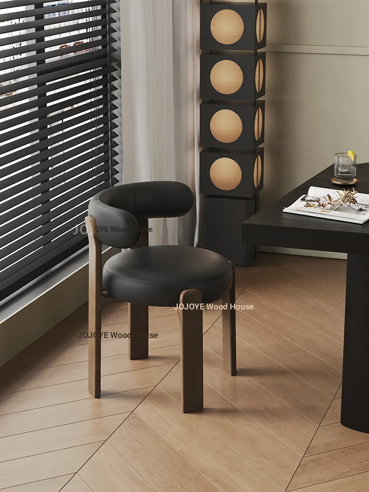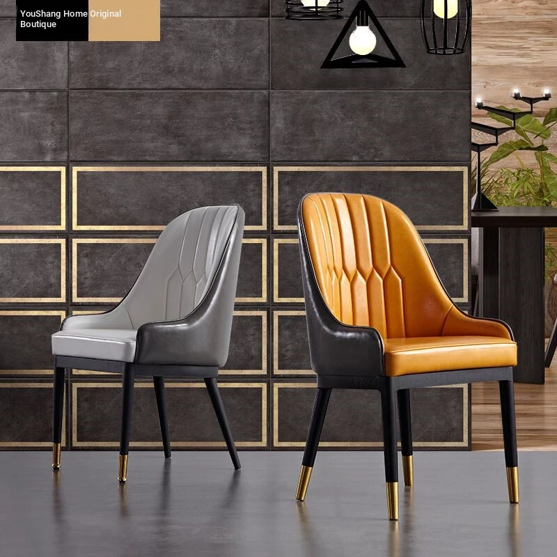 Modern Minimalist Dining Chair - Designer Backrest Chair for Home, Restaurant, and Hotel. Luxurious Genuine Leather Seat, Perfect for Elegant Dining Spaces.