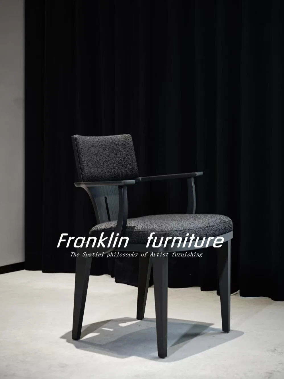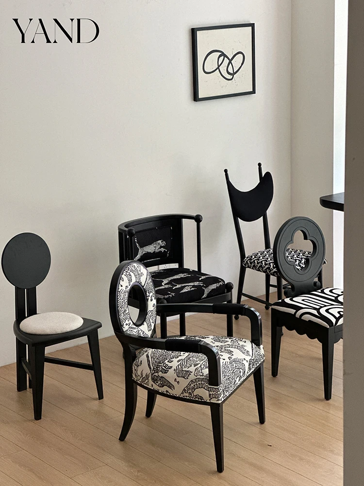 New Vintage-Inspired Solid Wood Dining Chair by Designer - French Retro Style with Backrest and Armrests, Perfect for Hotels and Model Rooms