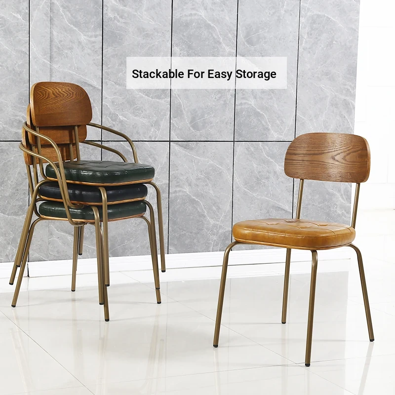 Stylish Solid Wood Designer Dining Chair - Perfect for Home, Cafés, and Vintage Balconies - Stackable with Comfortable Backrest - Ideal for Tea Shops and Retro Decor