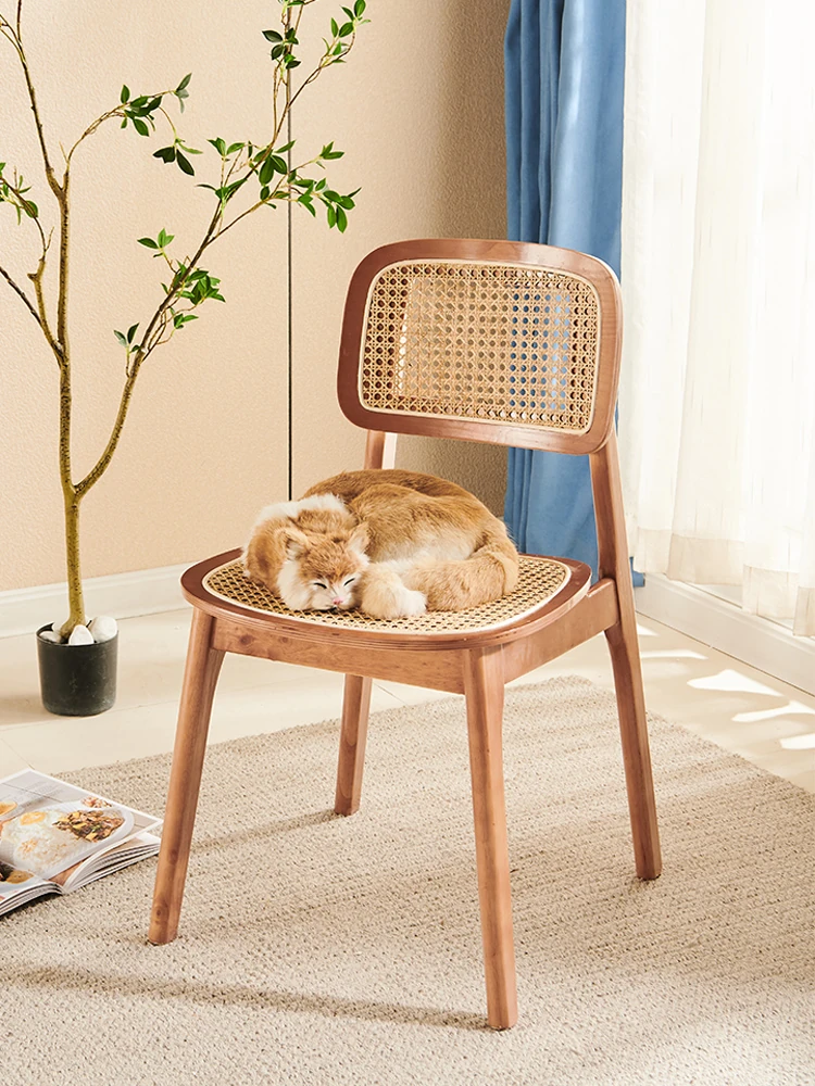 Modern Solid Wood Rattan Dining Chair - Nordic Wabi-Sabi Retro Design, Perfect for Your Home Dining Experience, Stylish and Comfortable Backrest Chair