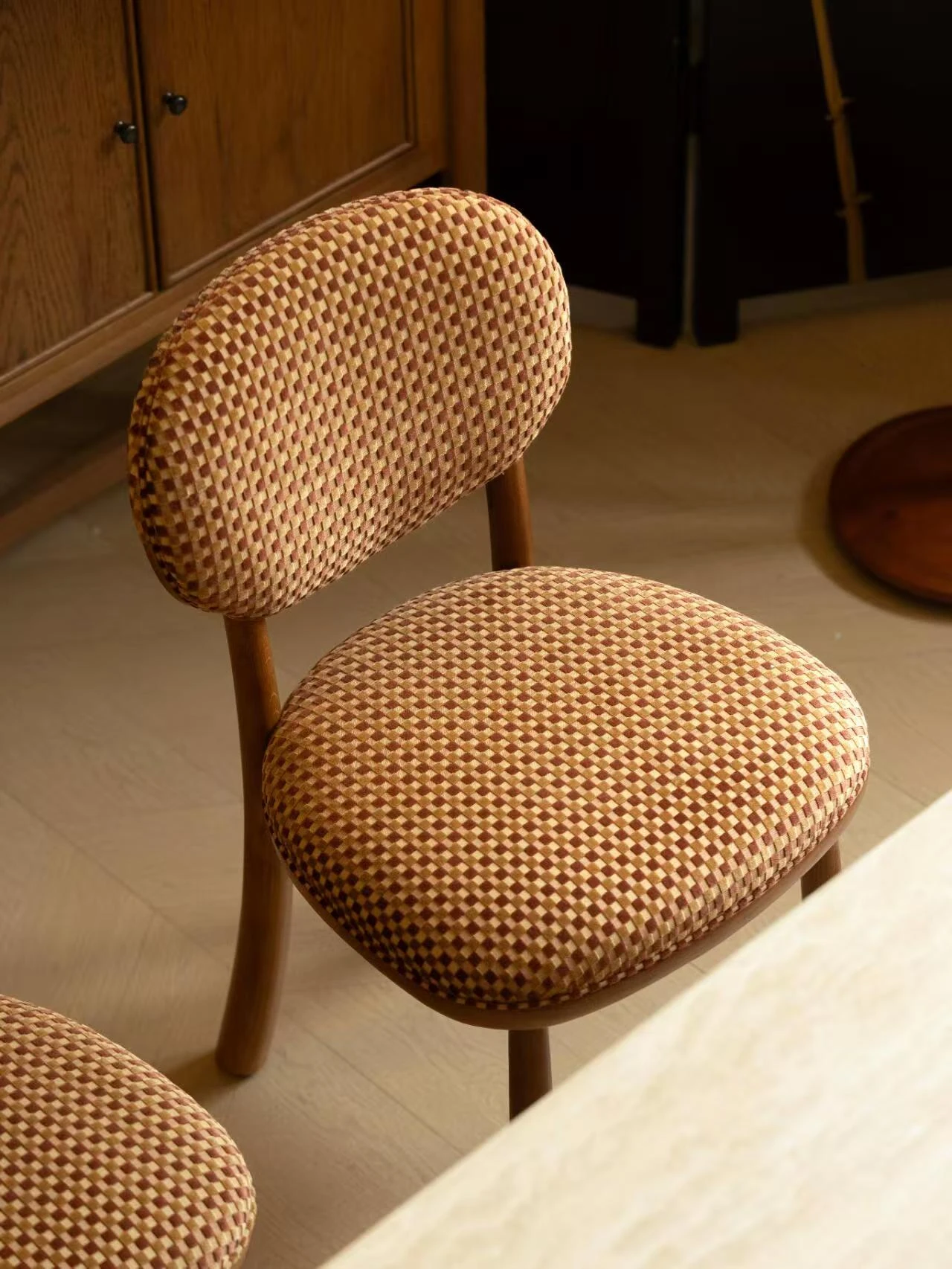 Vintage Solid Wood Dining Chair with Soft Cushion - Elegant Minimalist Design for Home, Perfect for Living Room and Leisure Spaces, Ideal for High-End Guesthouses and Resorts.