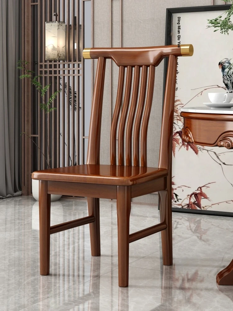 Elegant Solid Wood Dining Chair in New Chinese Style - Backrest Stool with Mortise and Tenon Design, Cross Bar for Stability, Perfect for Home or Restaurant, No Assembly Required
