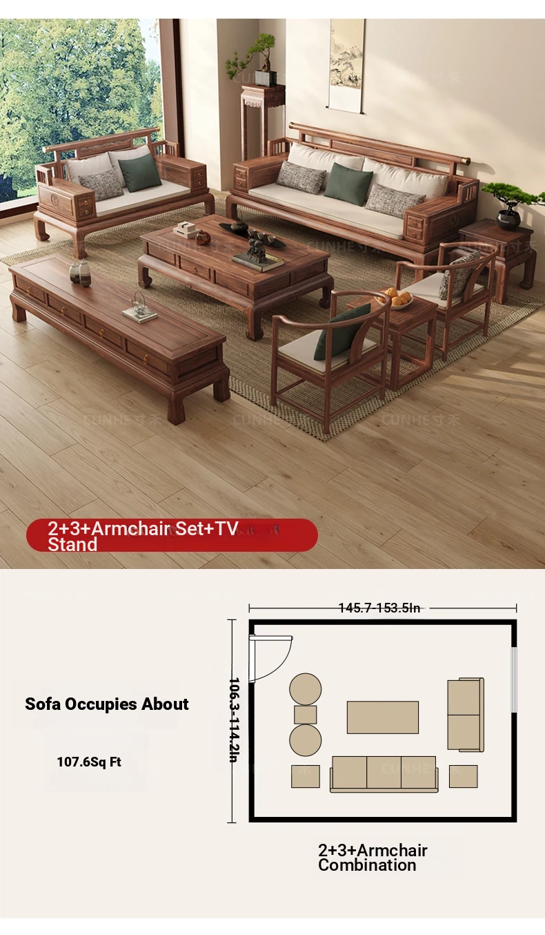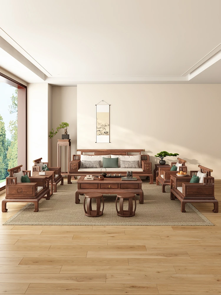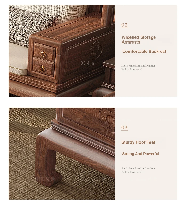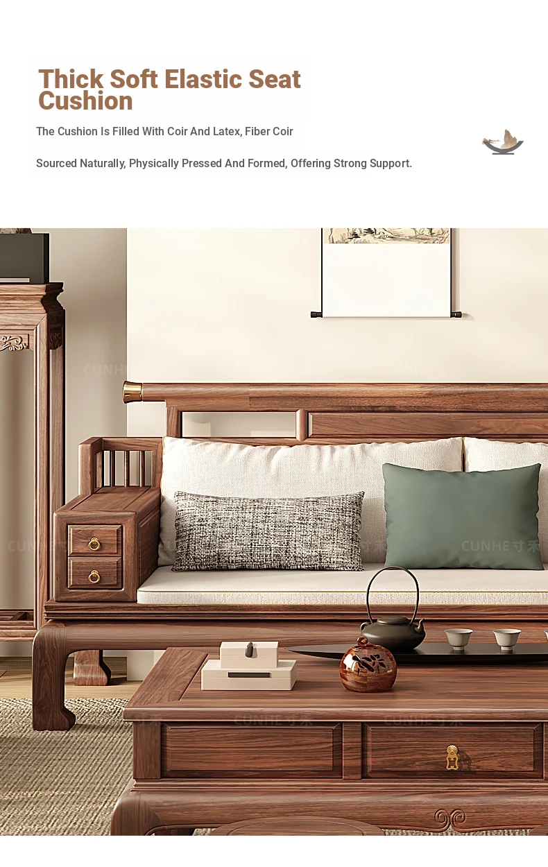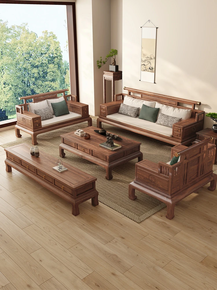 "2025 New Arrival: Elegant Song-style Solid Wood Sofa in South American Walnut - Perfect for Small to Medium Living Rooms, Embrace Modern Chinese Aesthetics at Home!"