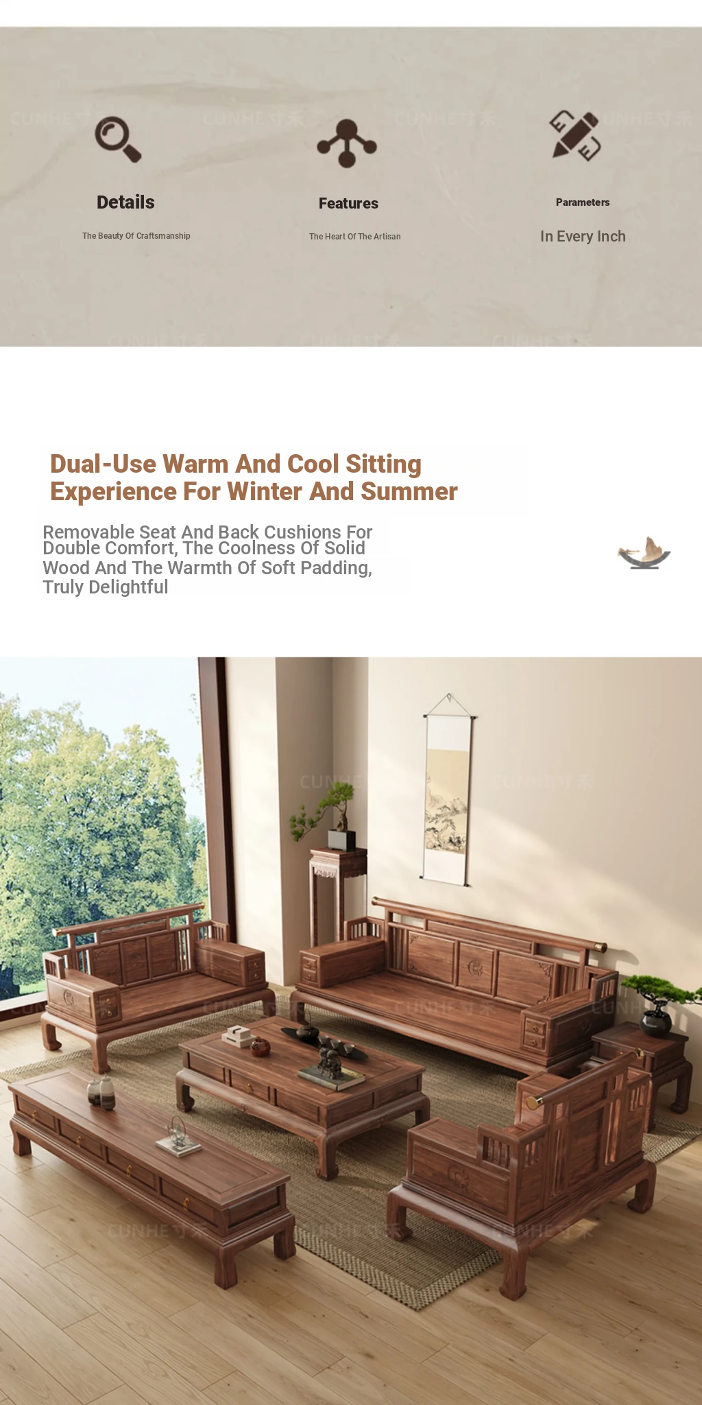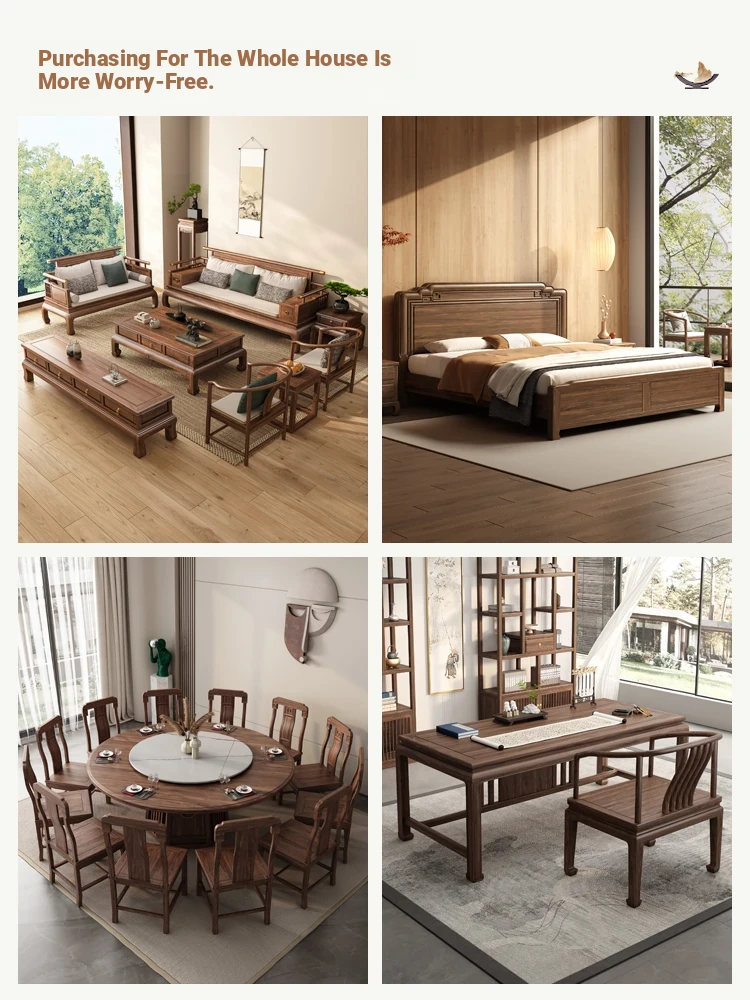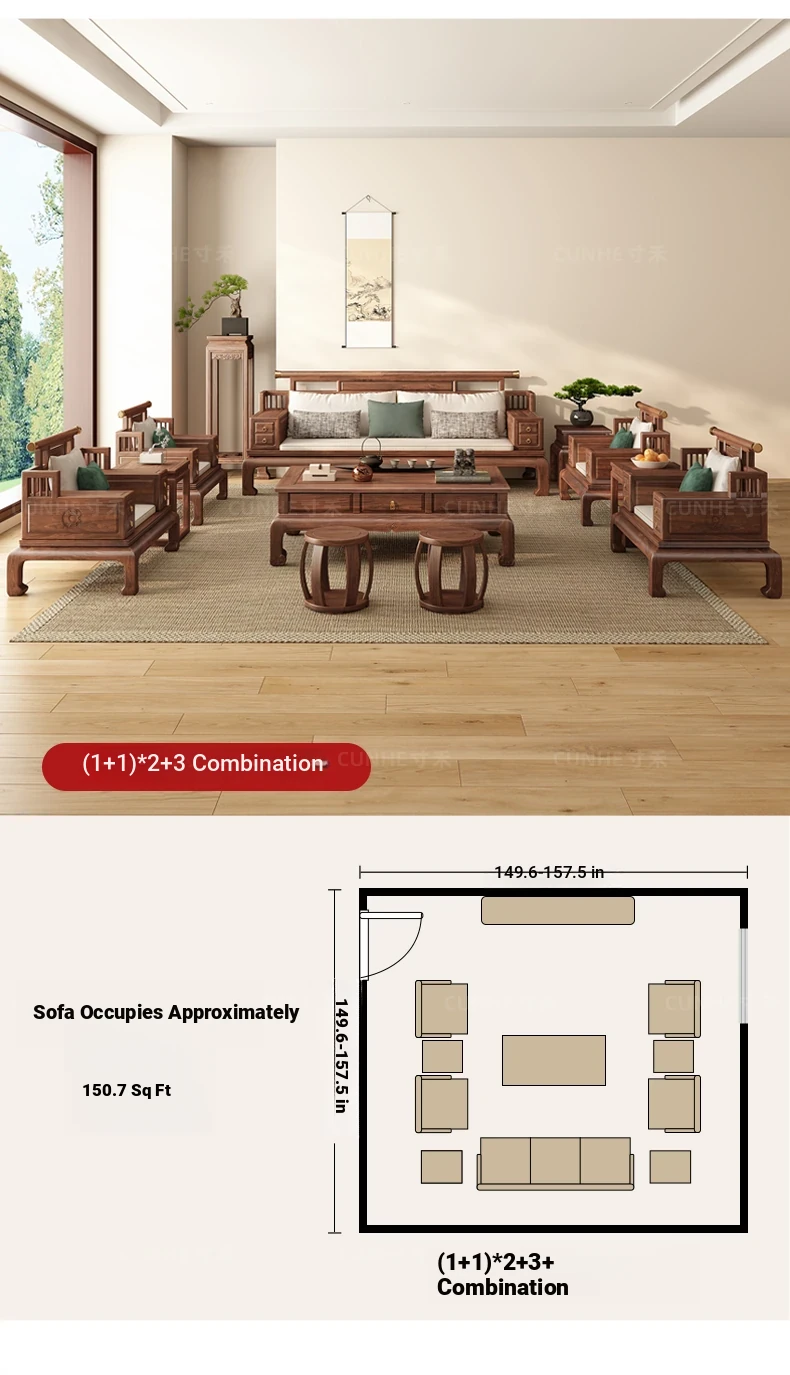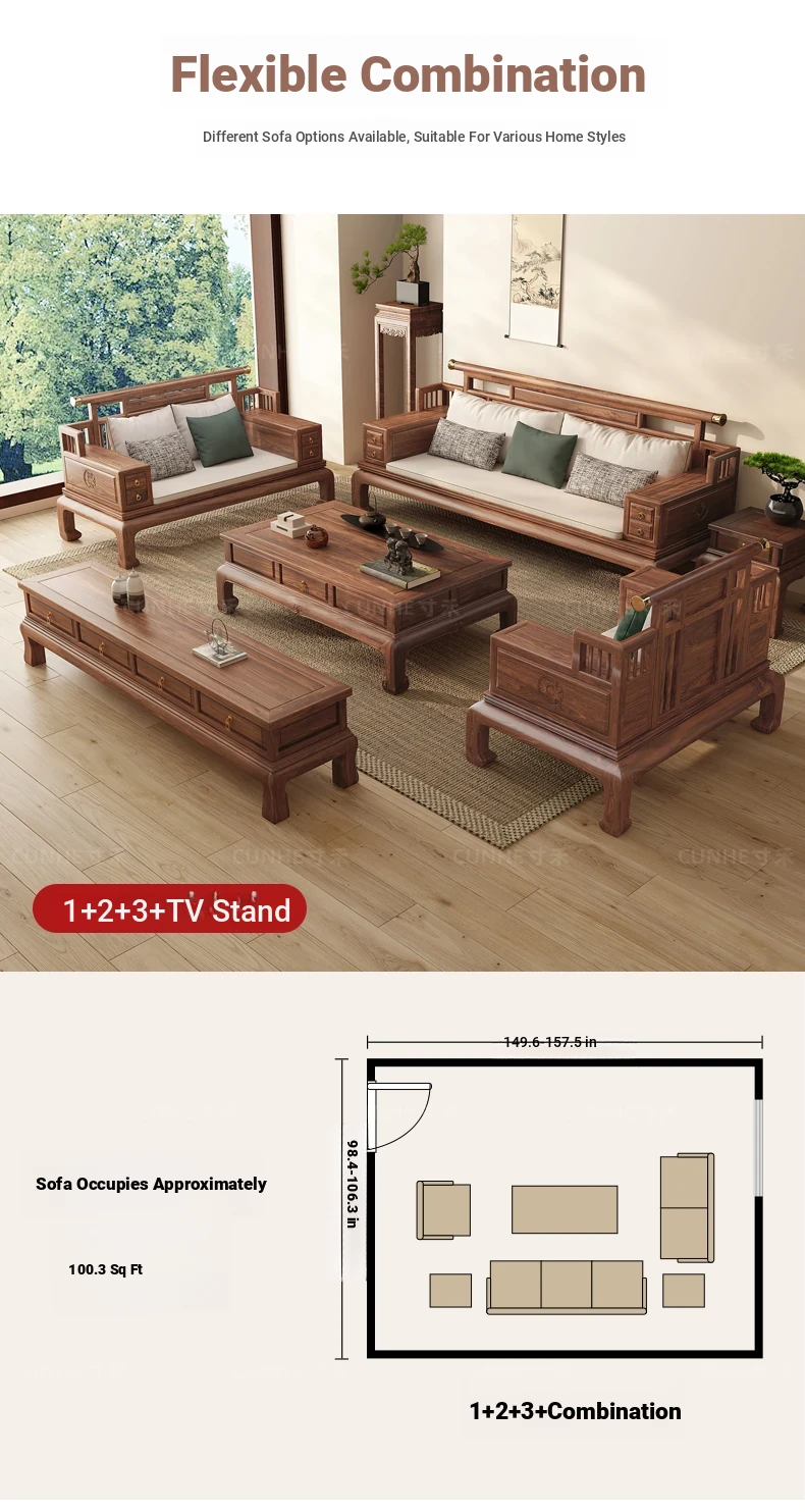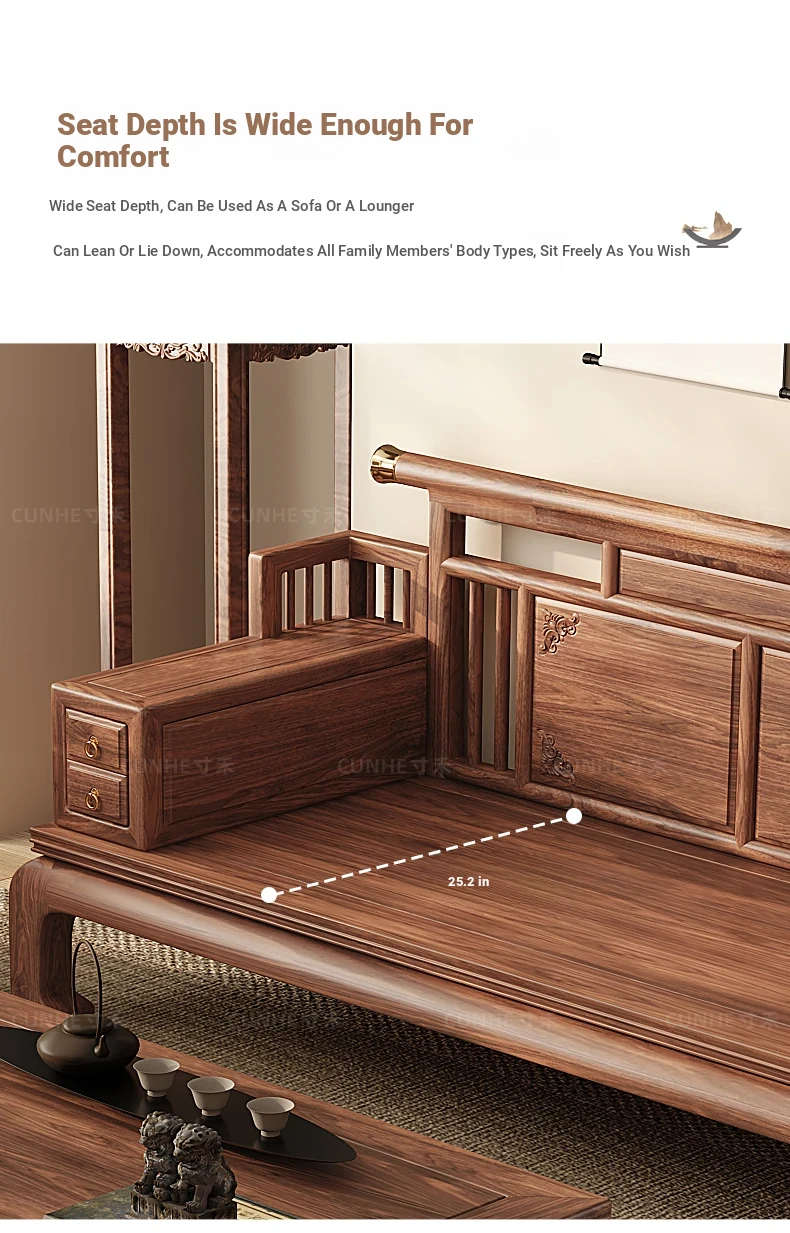 "2025 New Arrival: Elegant Song-style Solid Wood Sofa in South American Walnut - Perfect for Small to Medium Living Rooms, Embrace Modern Chinese Aesthetics at Home!"