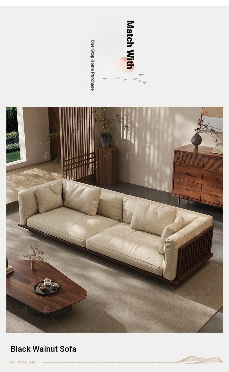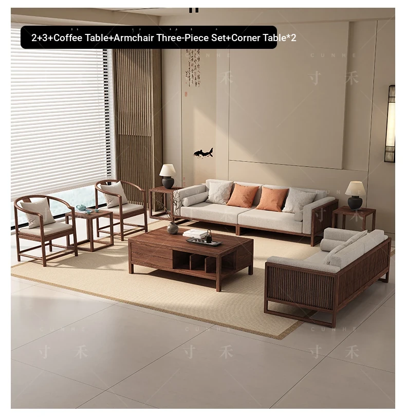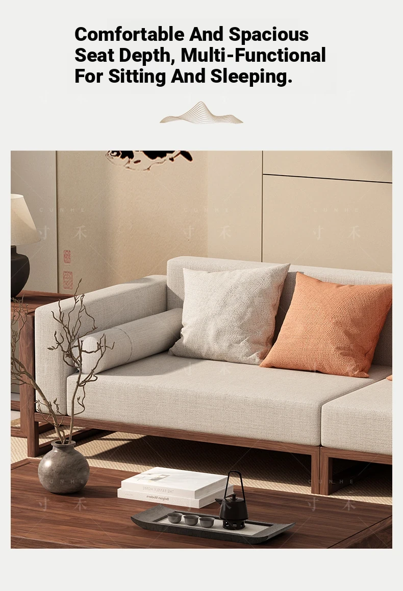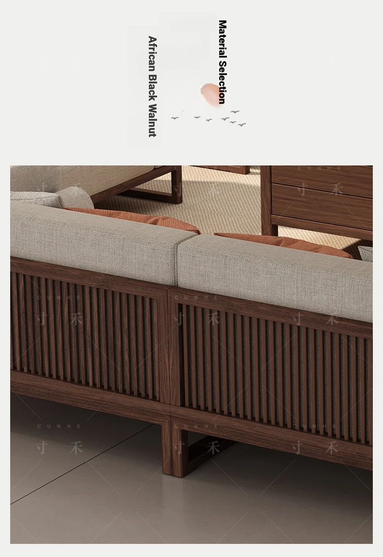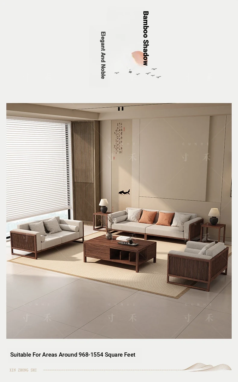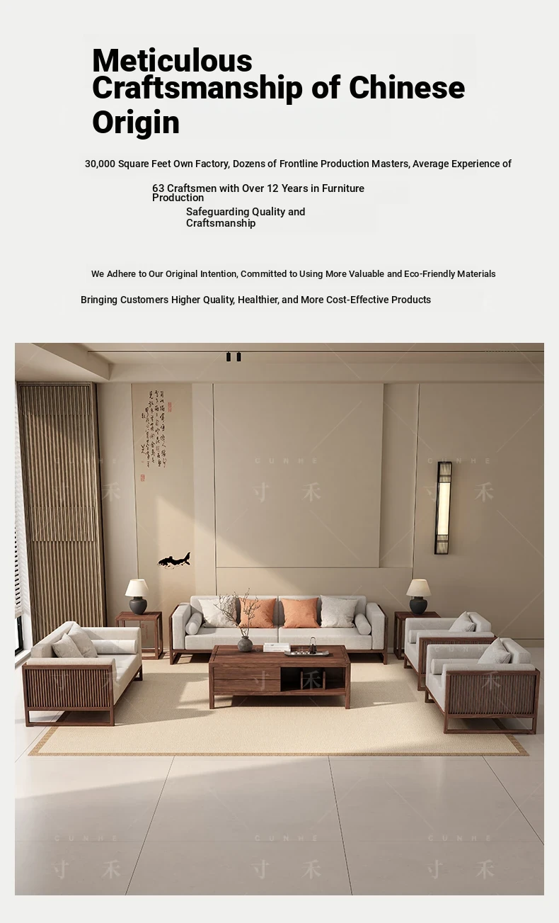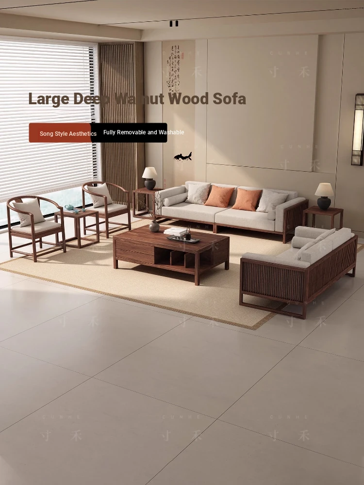 "2025 New Arrival: Zen-inspired Song Style Aesthetic Solid Walnut Sofa for Living Room & Tea House - Elegant New Chinese Design with Comfortable Booth Seating"