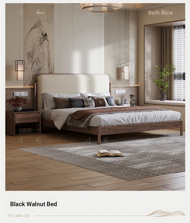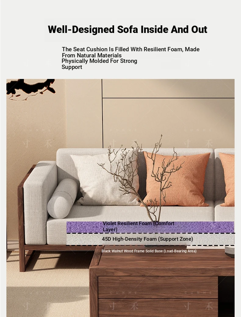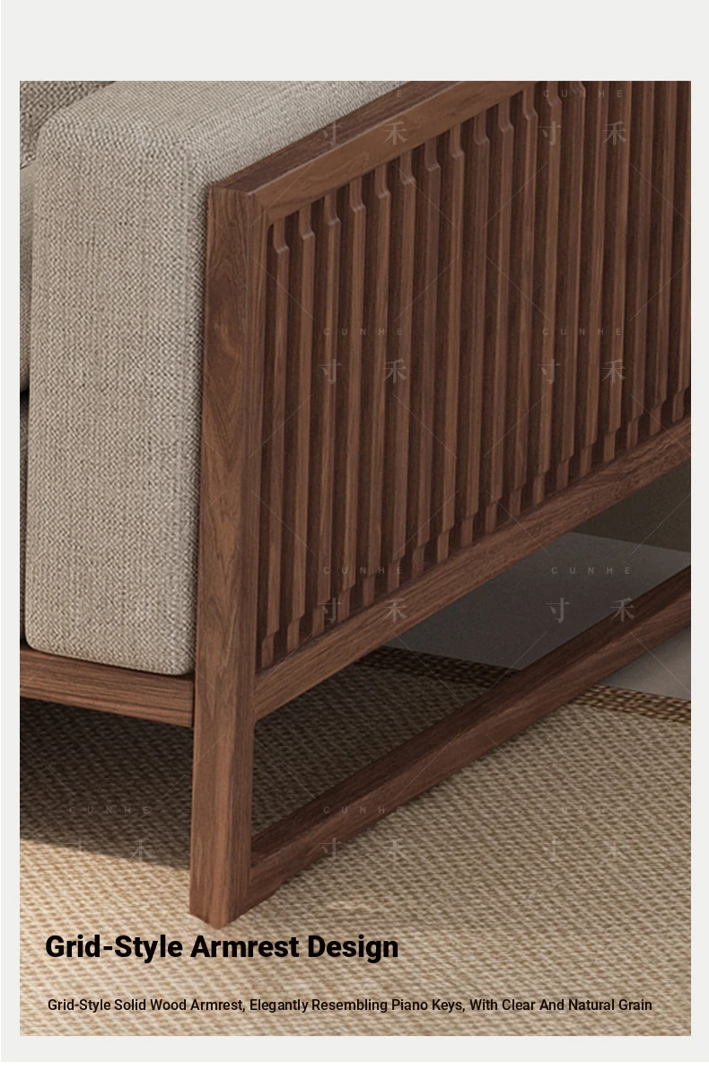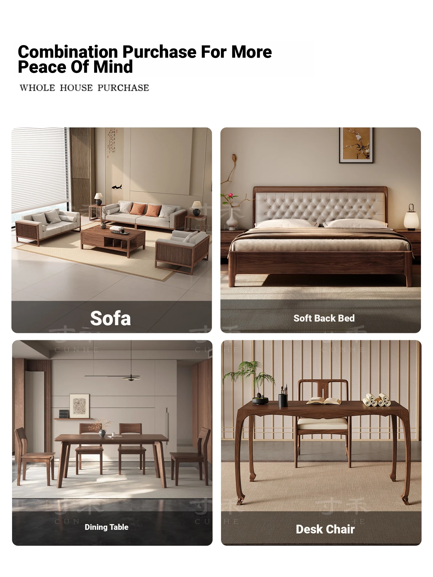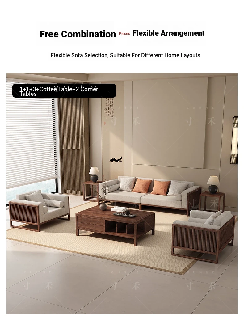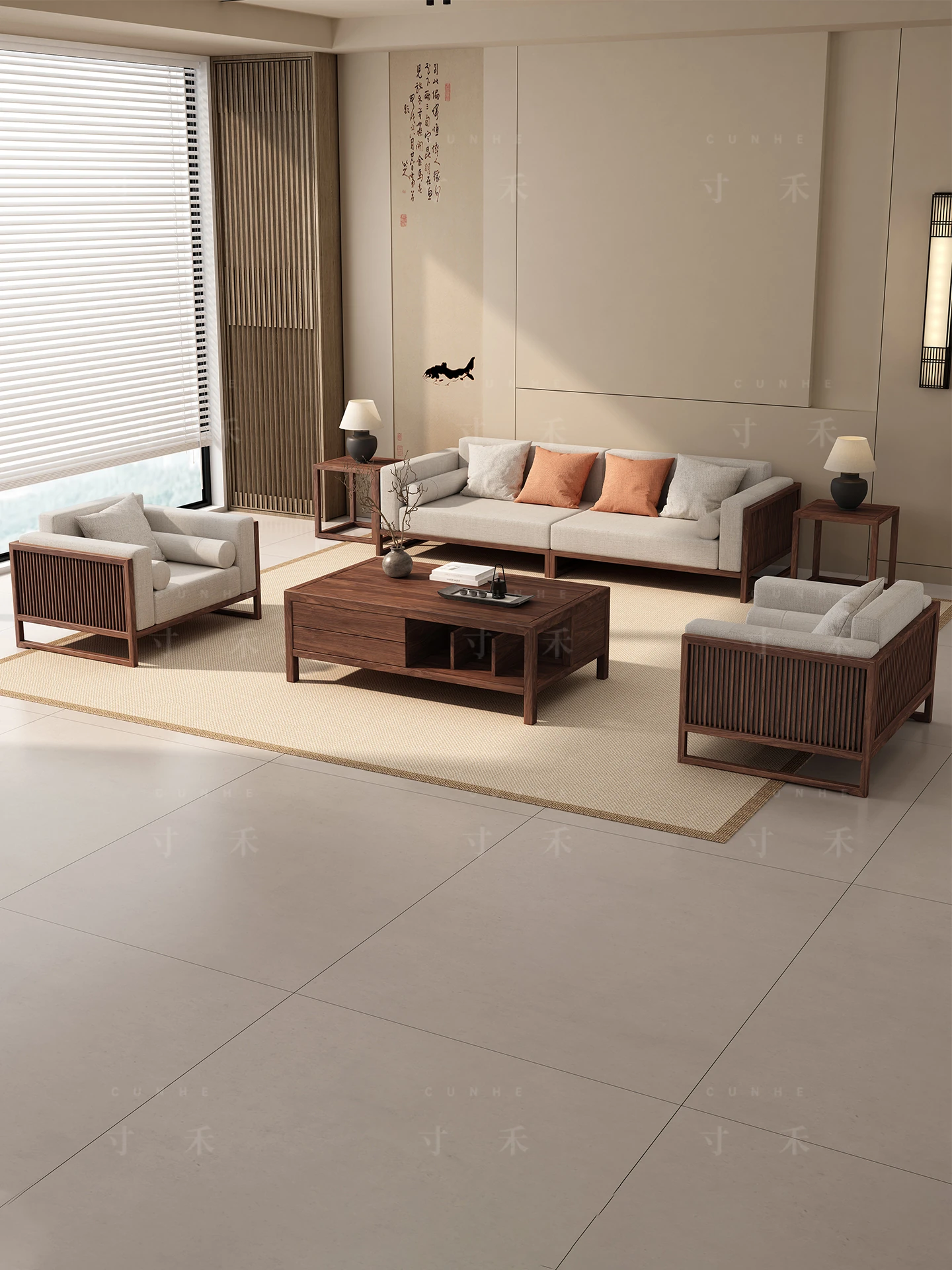 "2025 New Arrival: Zen-inspired Song Style Aesthetic Solid Walnut Sofa for Living Room & Tea House - Elegant New Chinese Design with Comfortable Booth Seating"