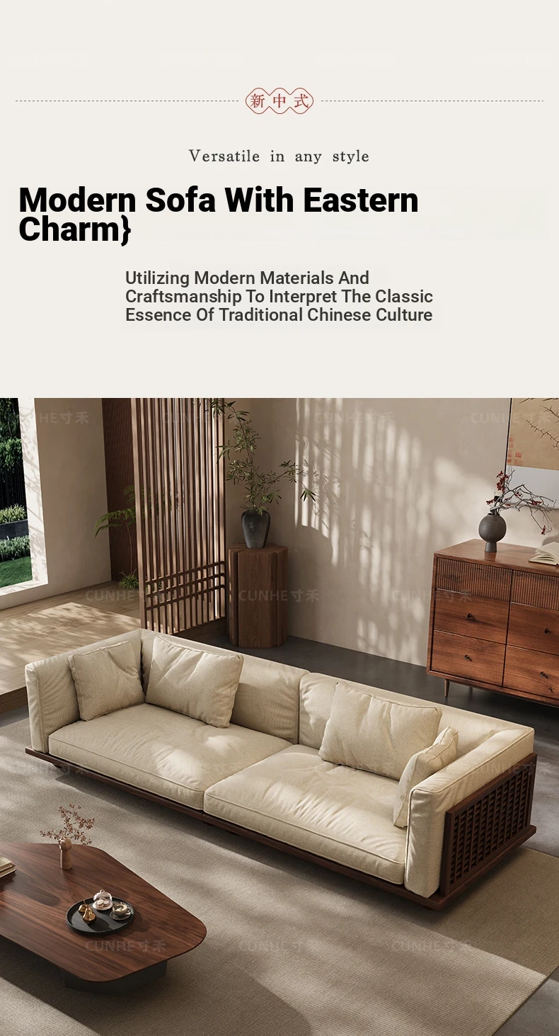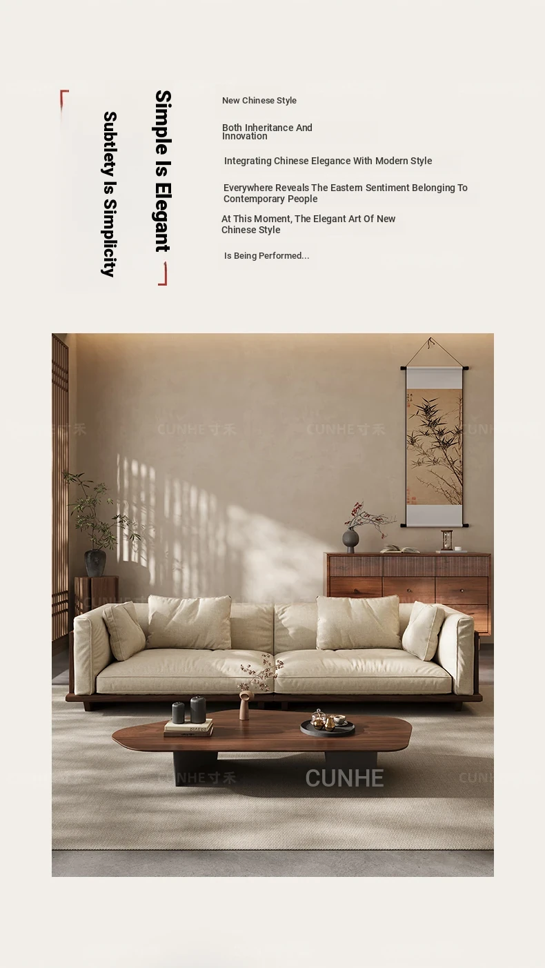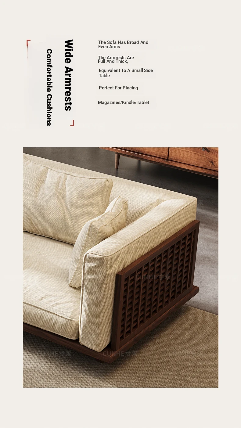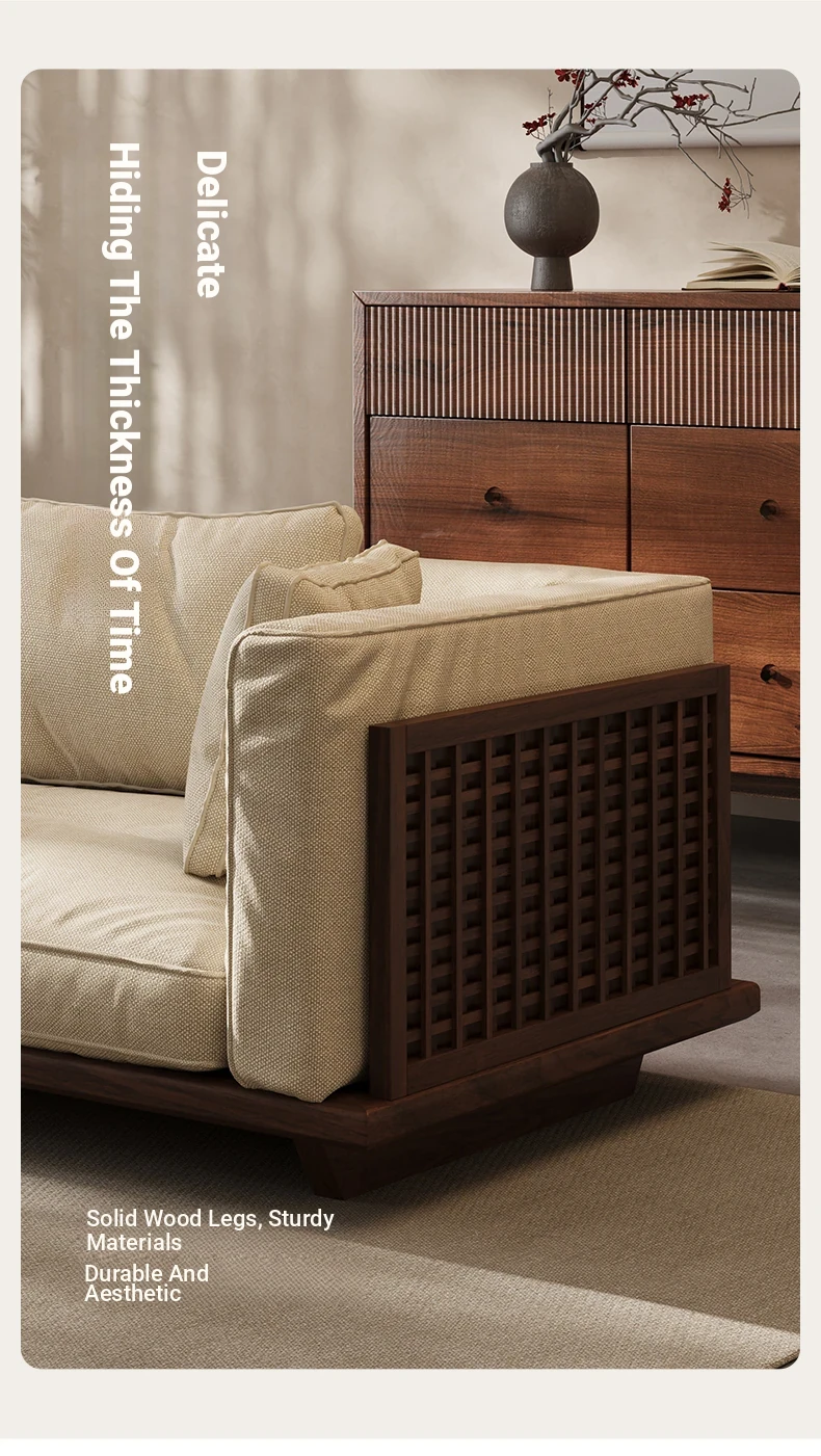 "2025 New Style Small Space Sofa - Elegant Song Dynasty Aesthetic in Black Walnut Wood with Cotton and Linen Fabric for Modern Chinese Living Rooms"