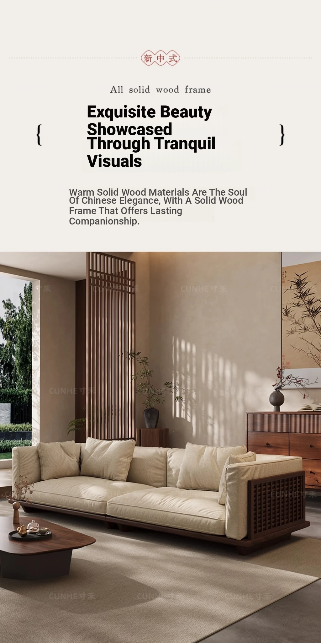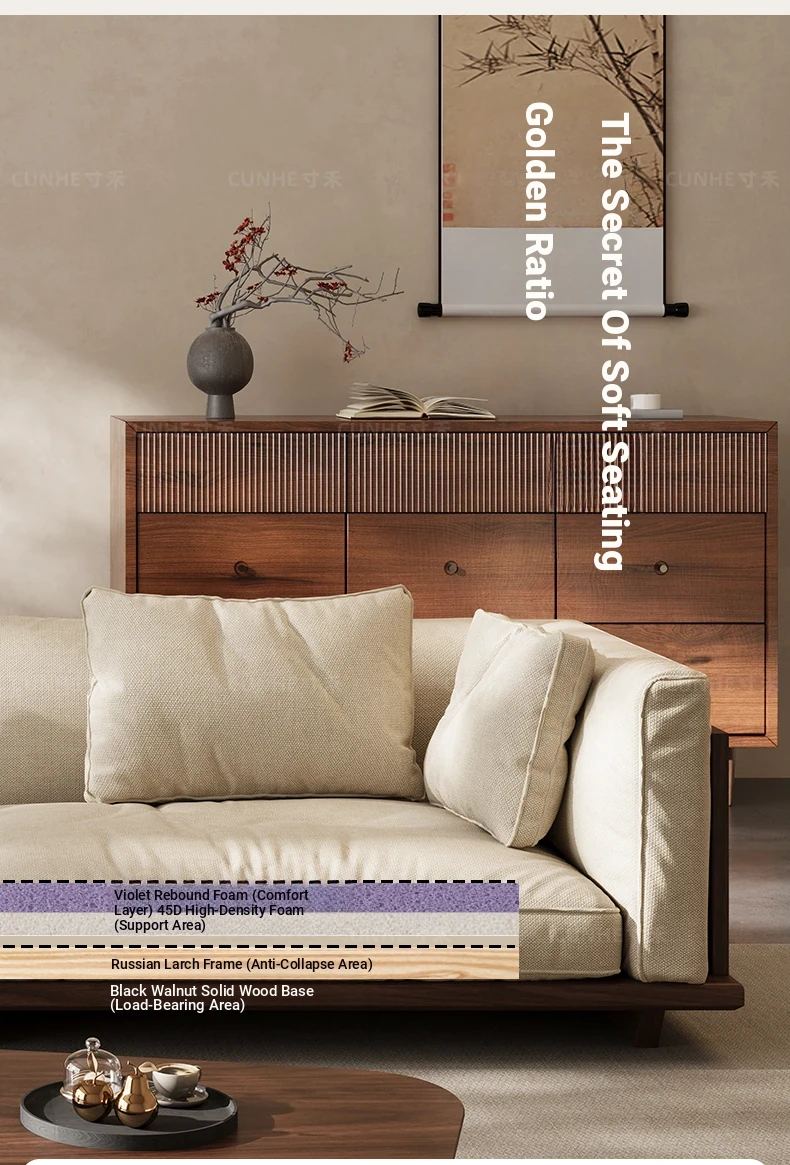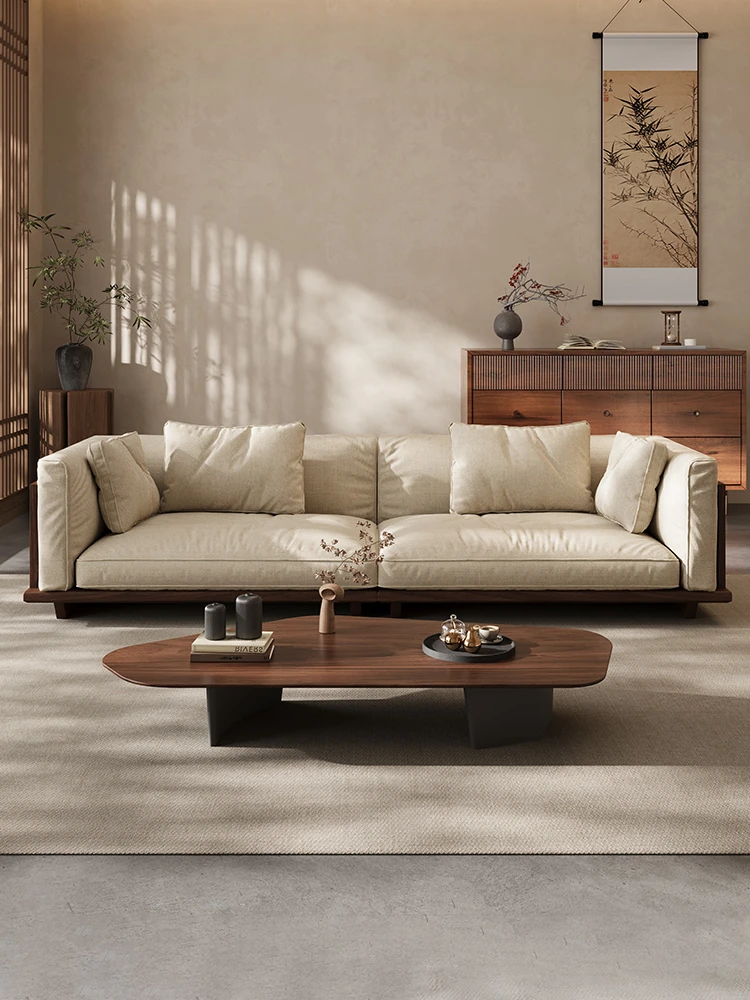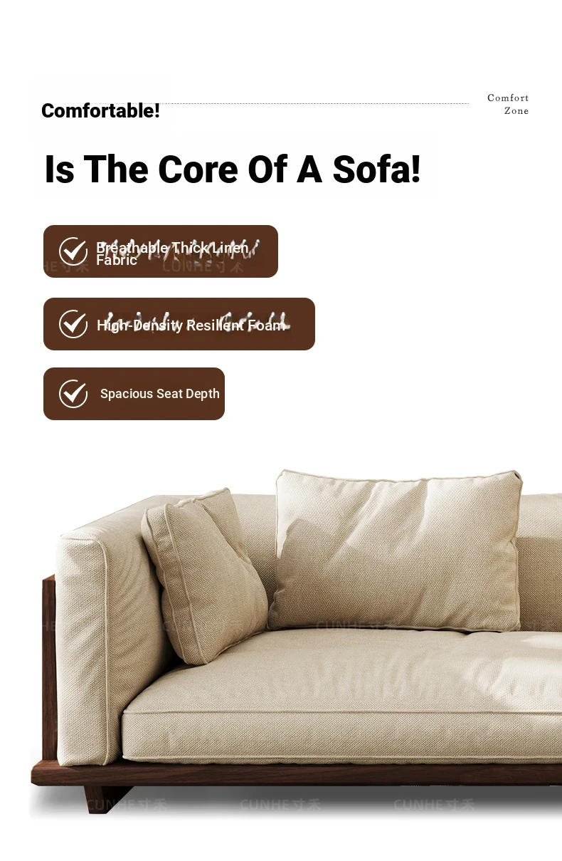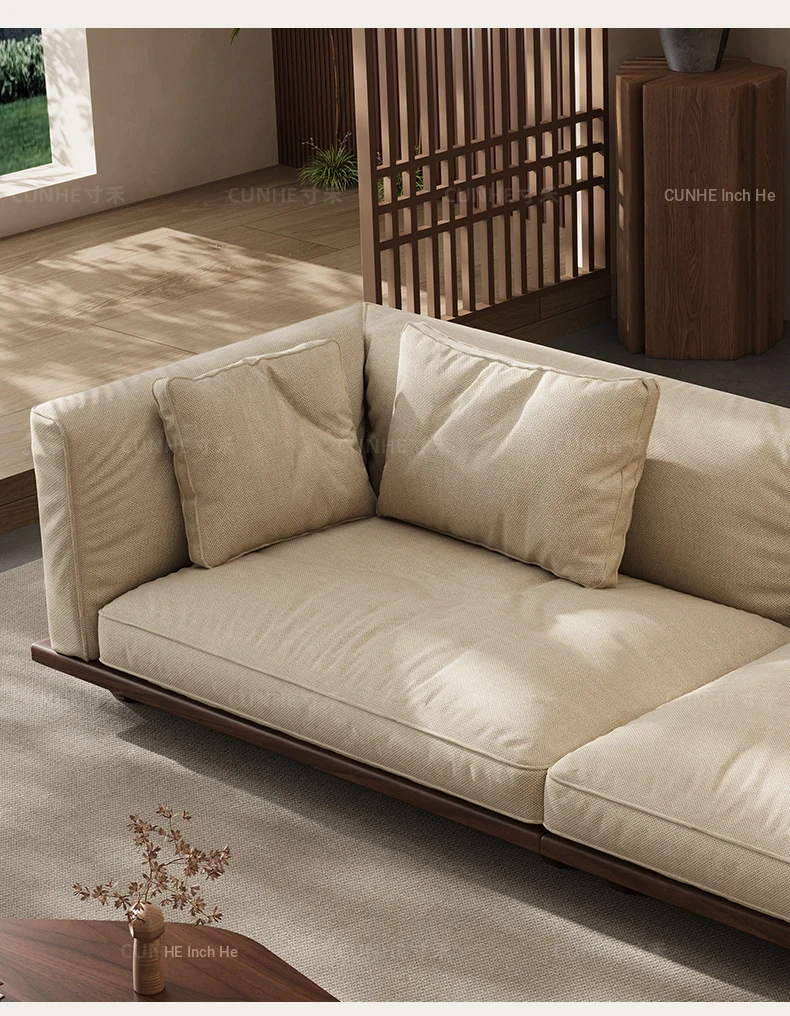 "2025 New Style Small Space Sofa - Elegant Song Dynasty Aesthetic in Black Walnut Wood with Cotton and Linen Fabric for Modern Chinese Living Rooms"