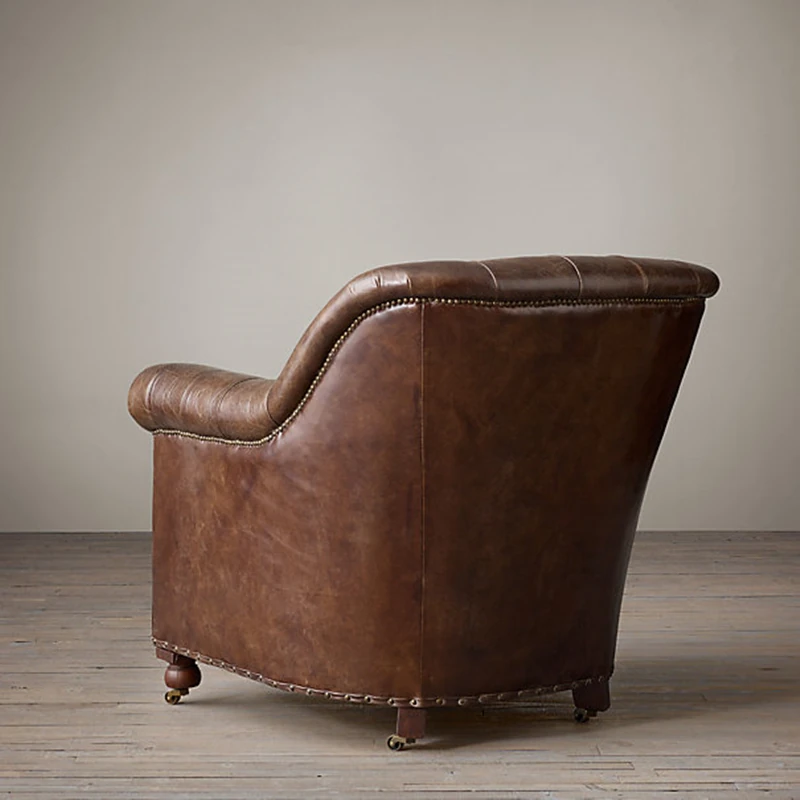 American Luxury Tiger Chair - European Neo-Classical High-Back Single Sofa Chair for Living Room and Study - French Style Brown Upholstered Accent Chair with Tufted Design