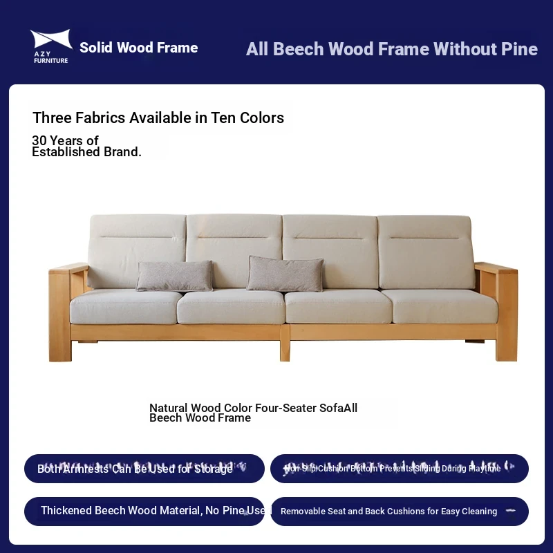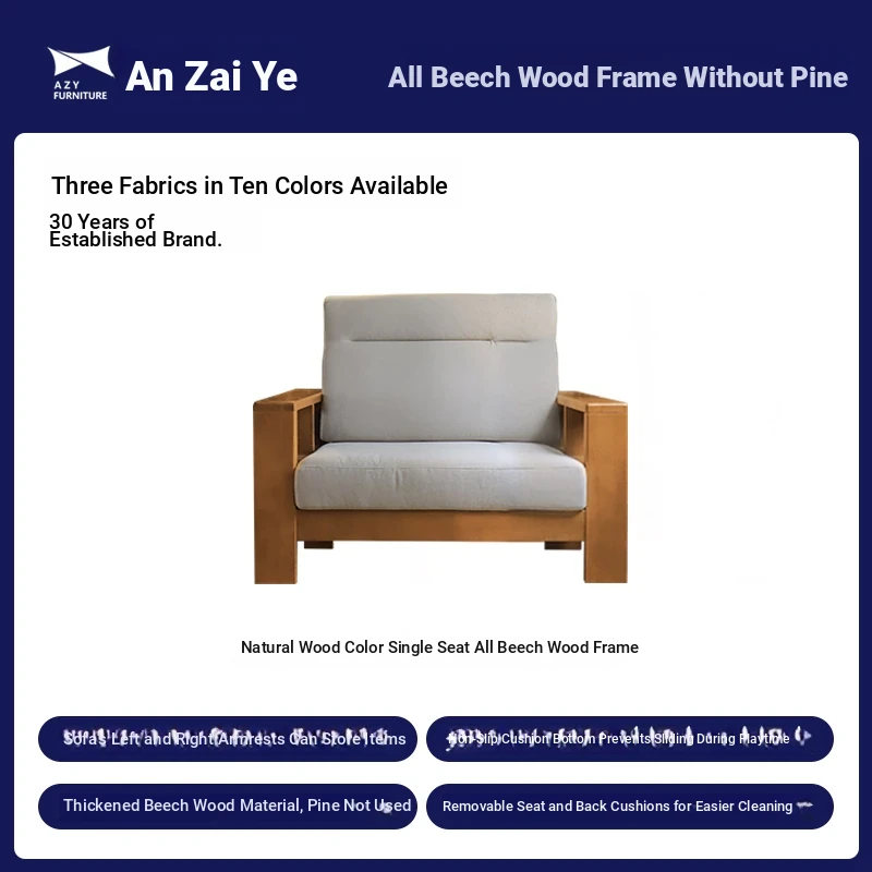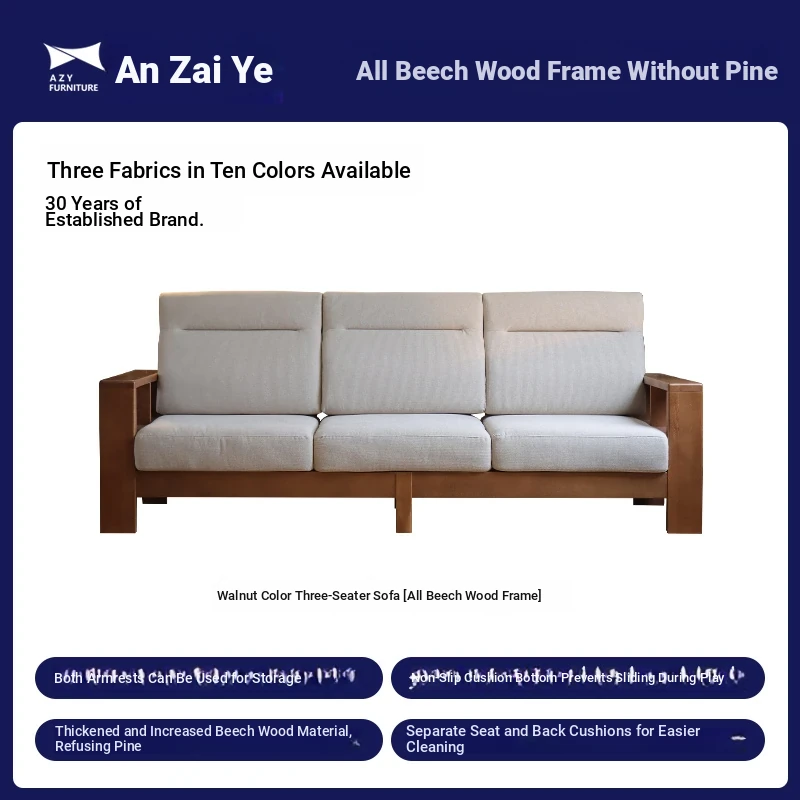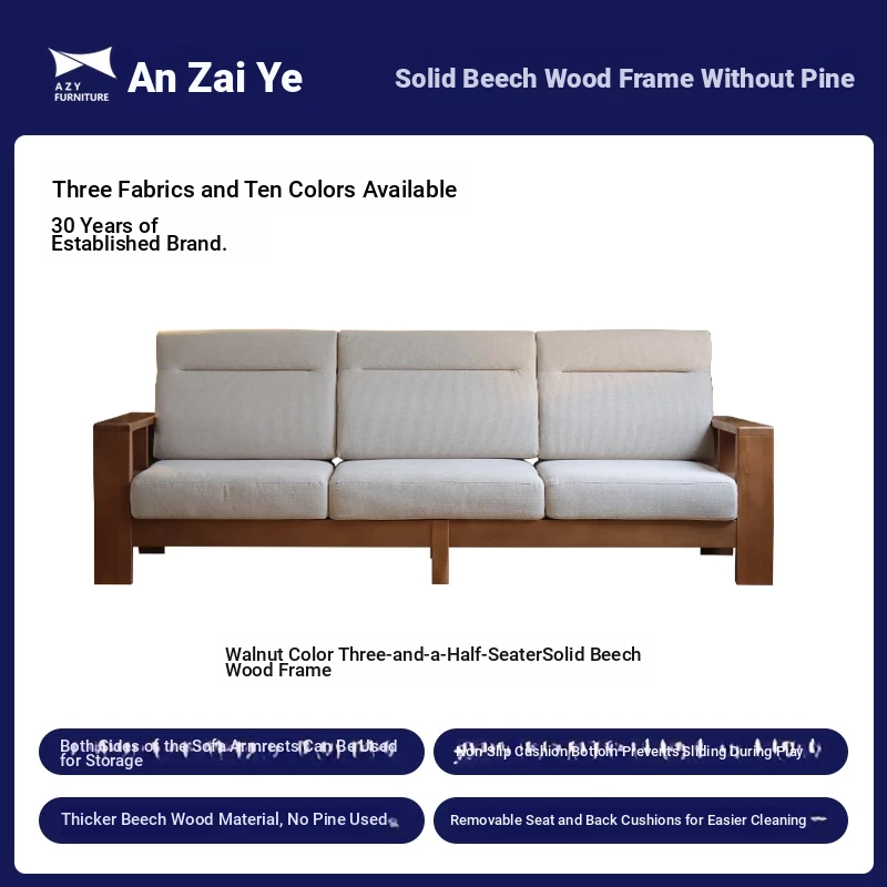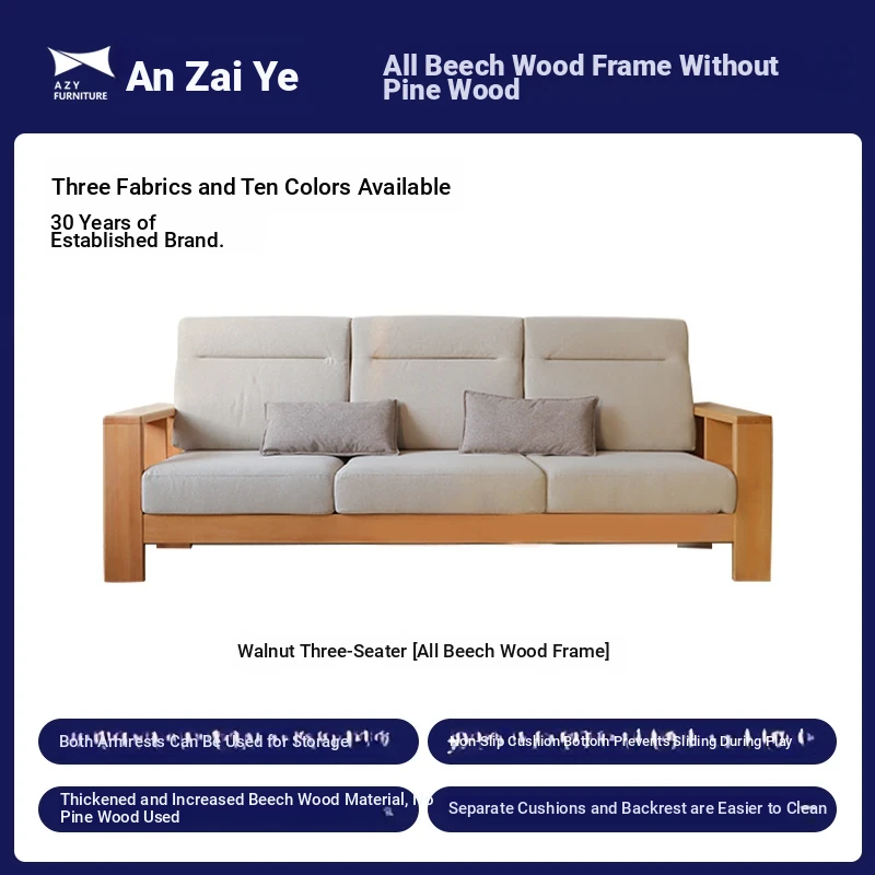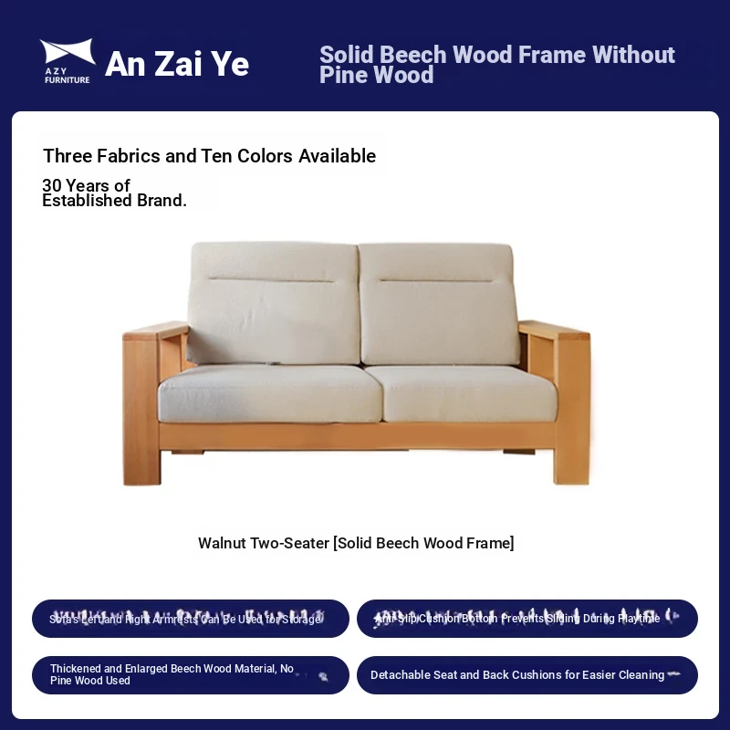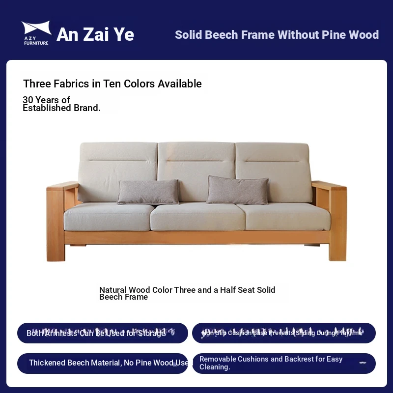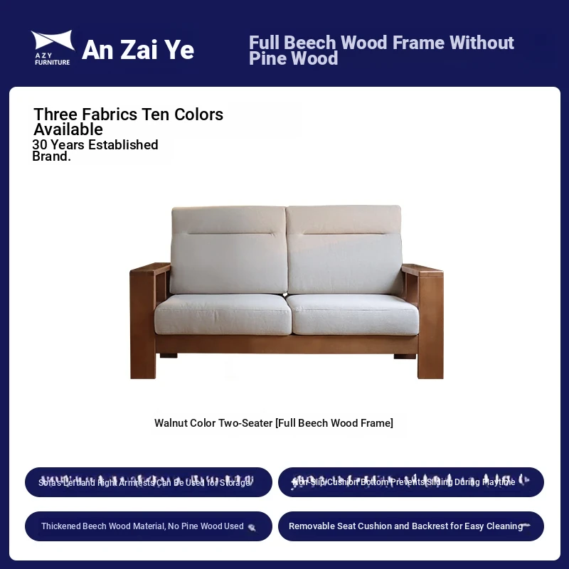Anzaiye Solid Wood Sofa - Removable and Washable, Perfectly Balanced Softness and Firmness, Ideal for Small Living Rooms with High Back Support
