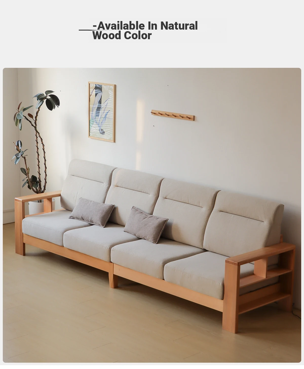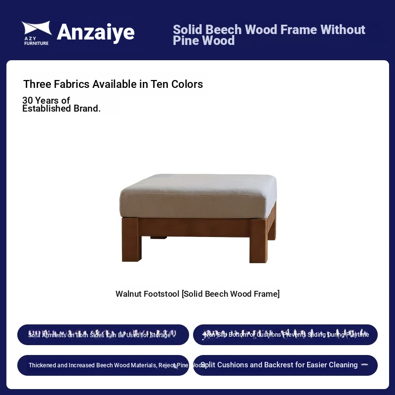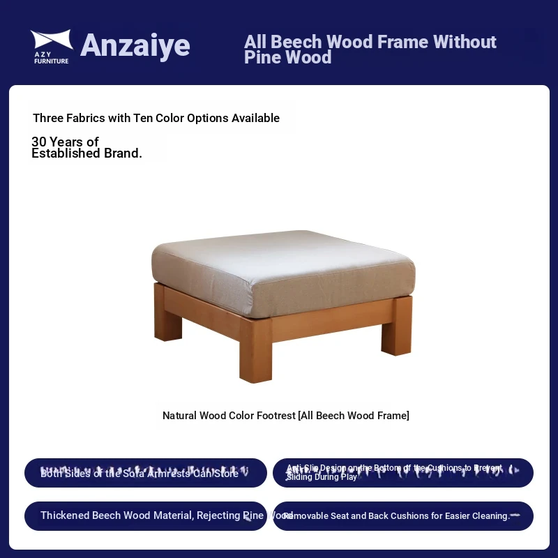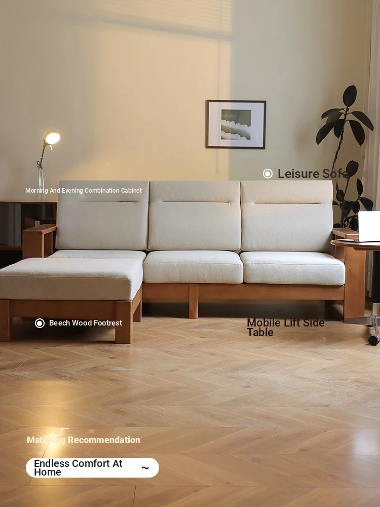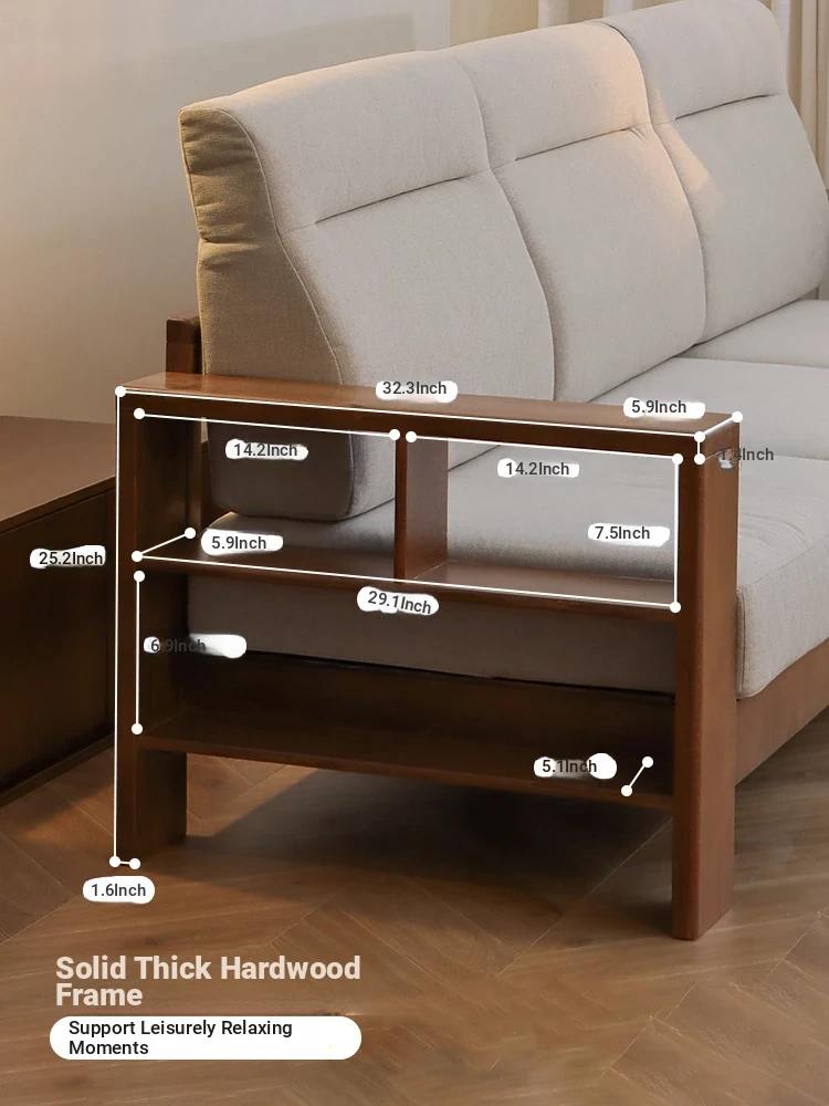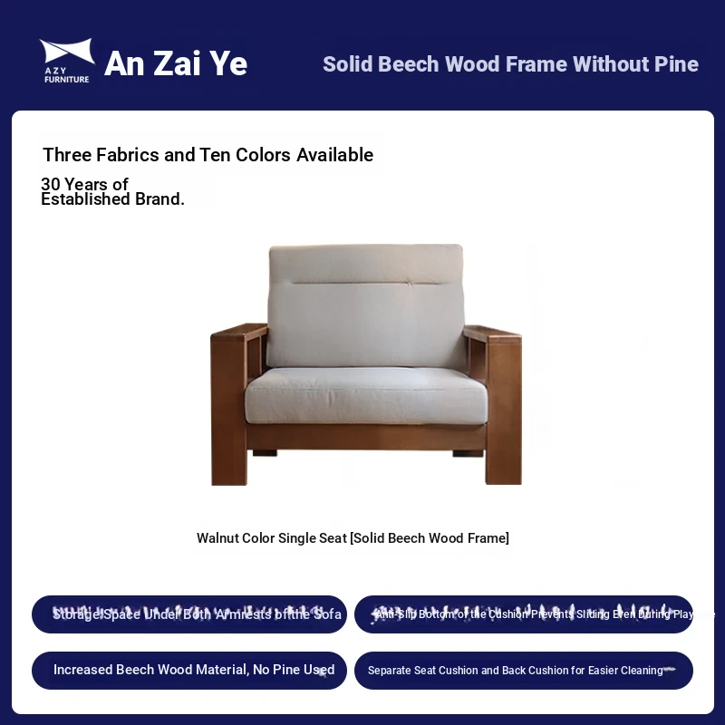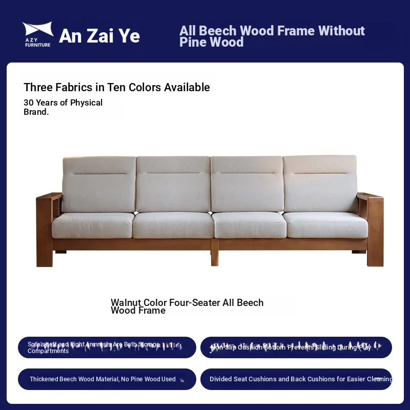 Anzaiye Solid Wood Sofa - Removable and Washable, Perfectly Balanced Softness and Firmness, Ideal for Small Living Rooms with High Back Support