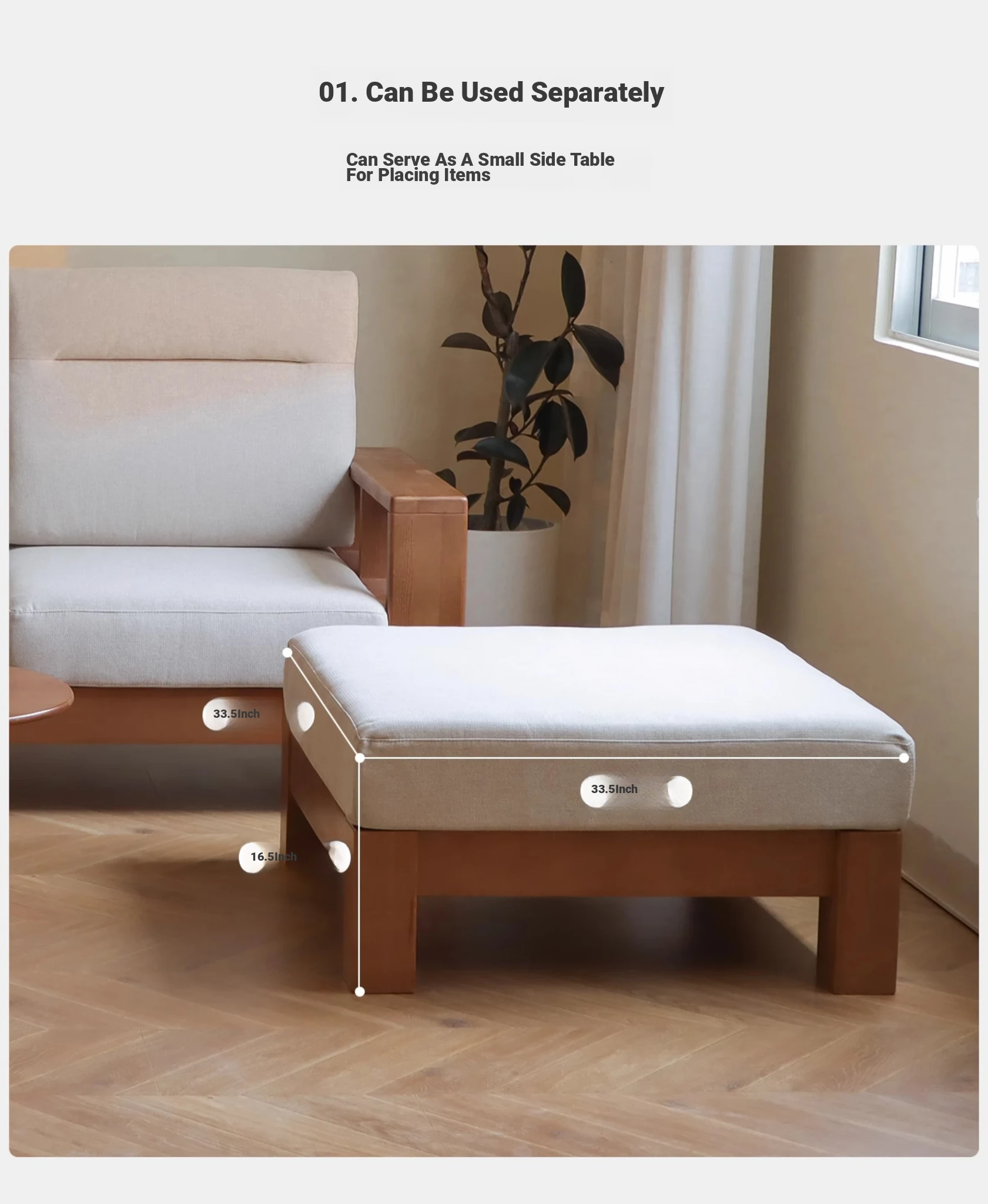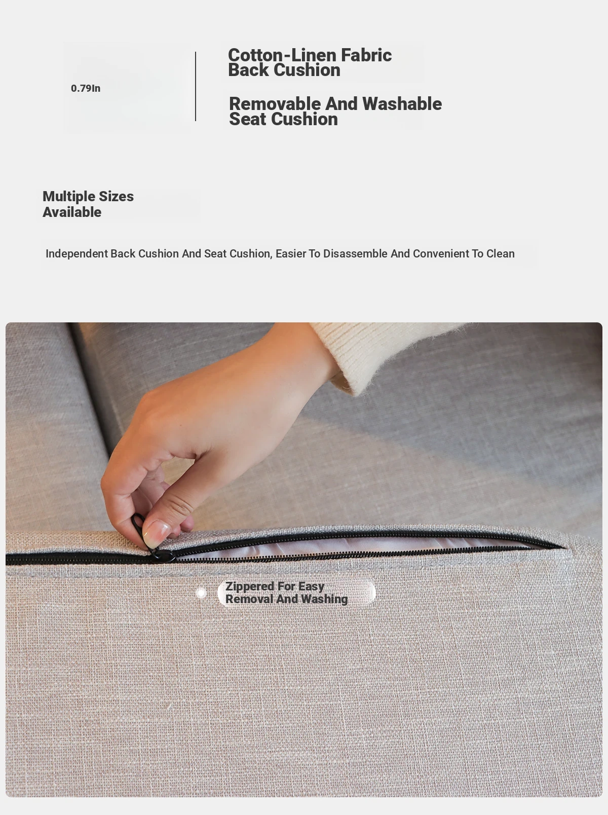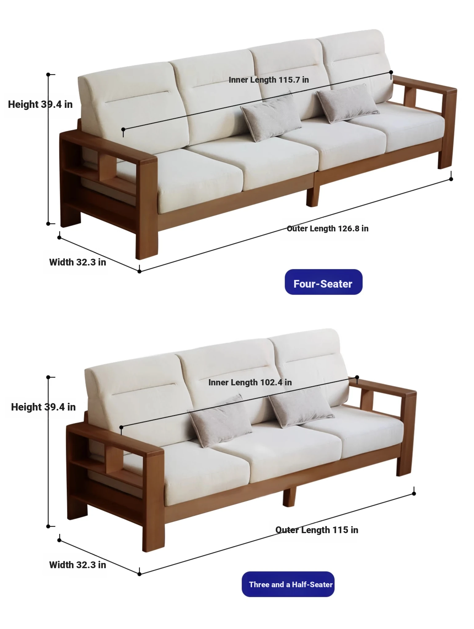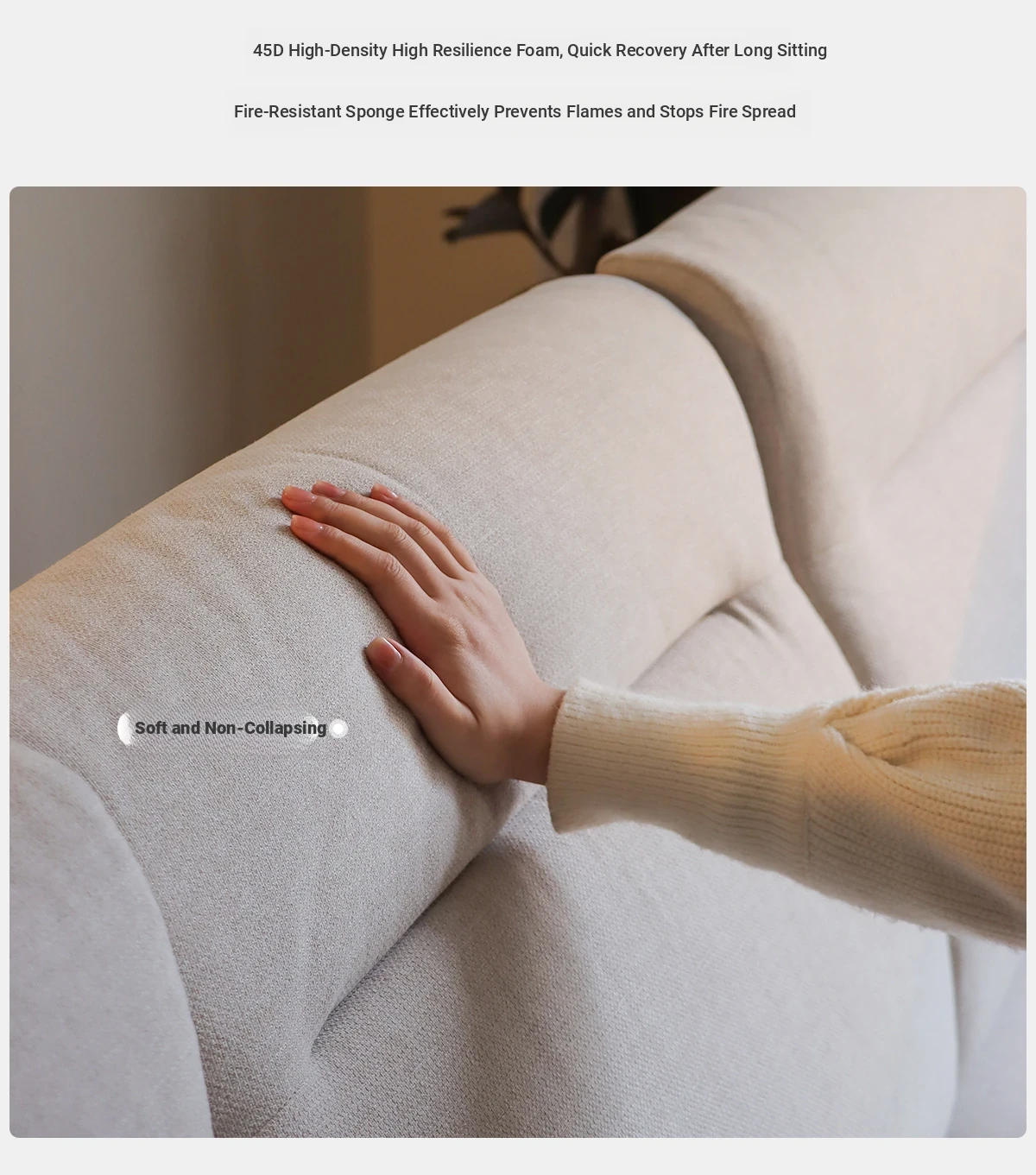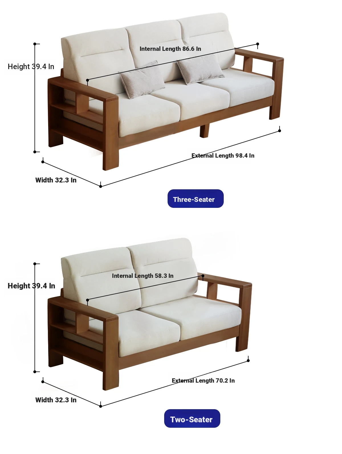 Anzaiye Solid Wood Sofa - Removable and Washable, Perfectly Balanced Softness and Firmness, Ideal for Small Living Rooms with High Back Support