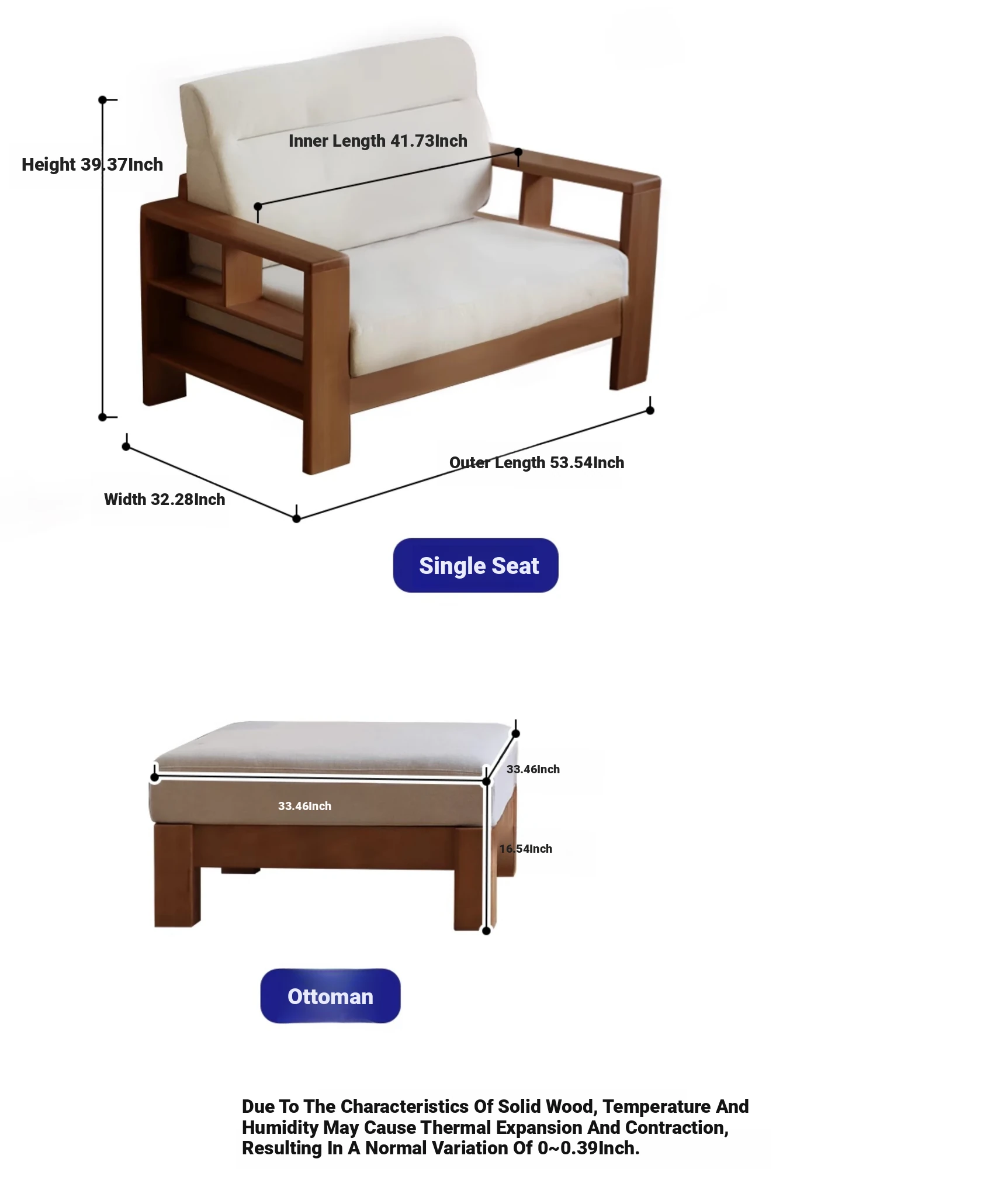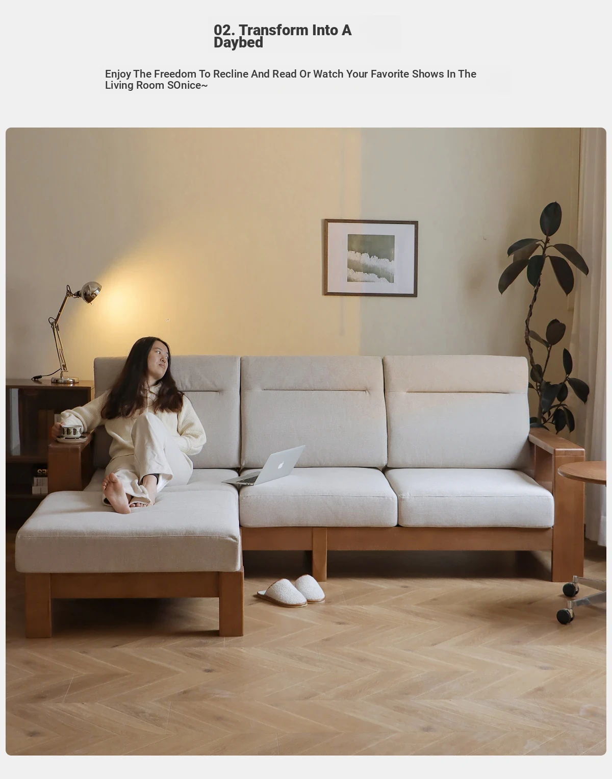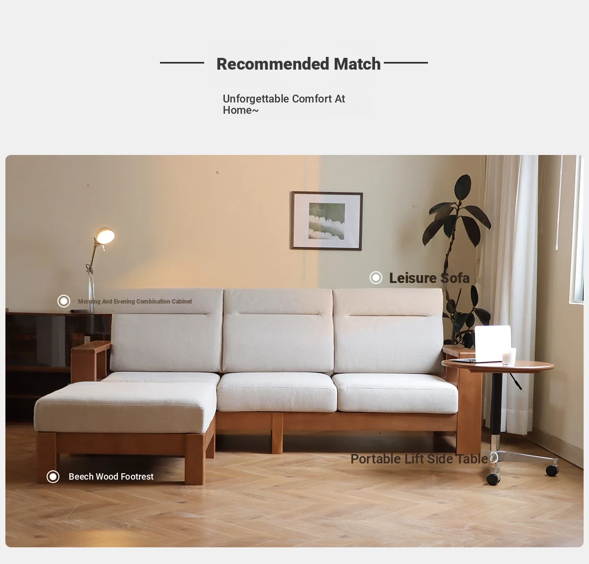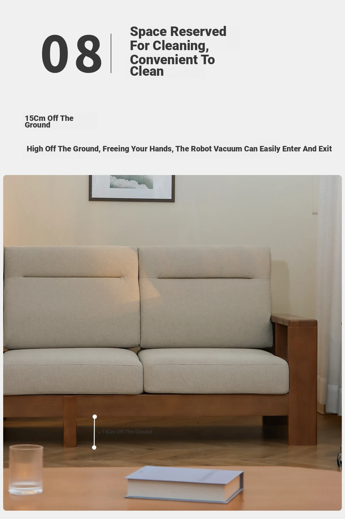Anzaiye Solid Wood Sofa - Removable and Washable, Perfectly Balanced Softness and Firmness, Ideal for Small Living Rooms with High Back Support