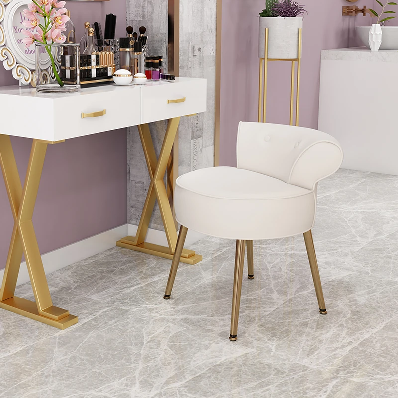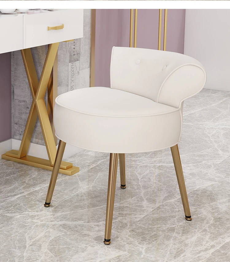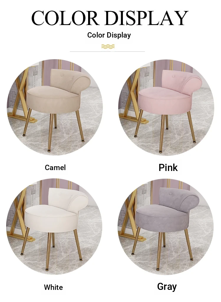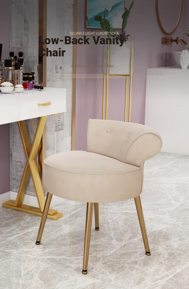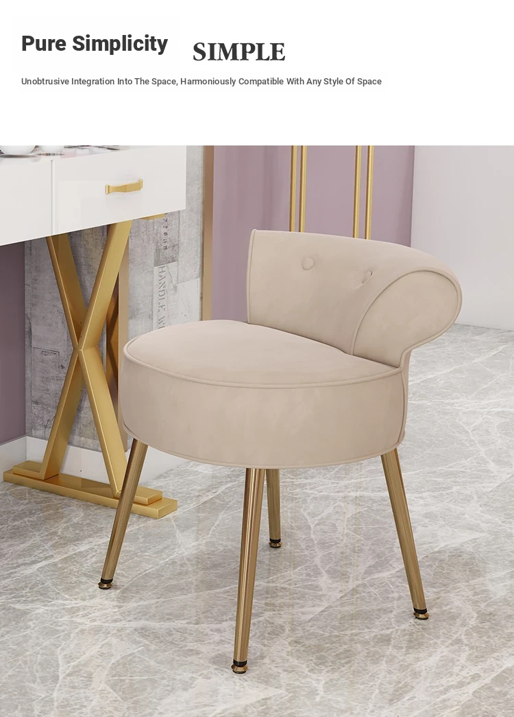 Chic Nordic Cream Velvet Makeup Stool with Backrest - Luxurious Home Vanity Chair with Golden Legs for a Modern Bedroom Look
