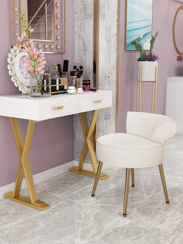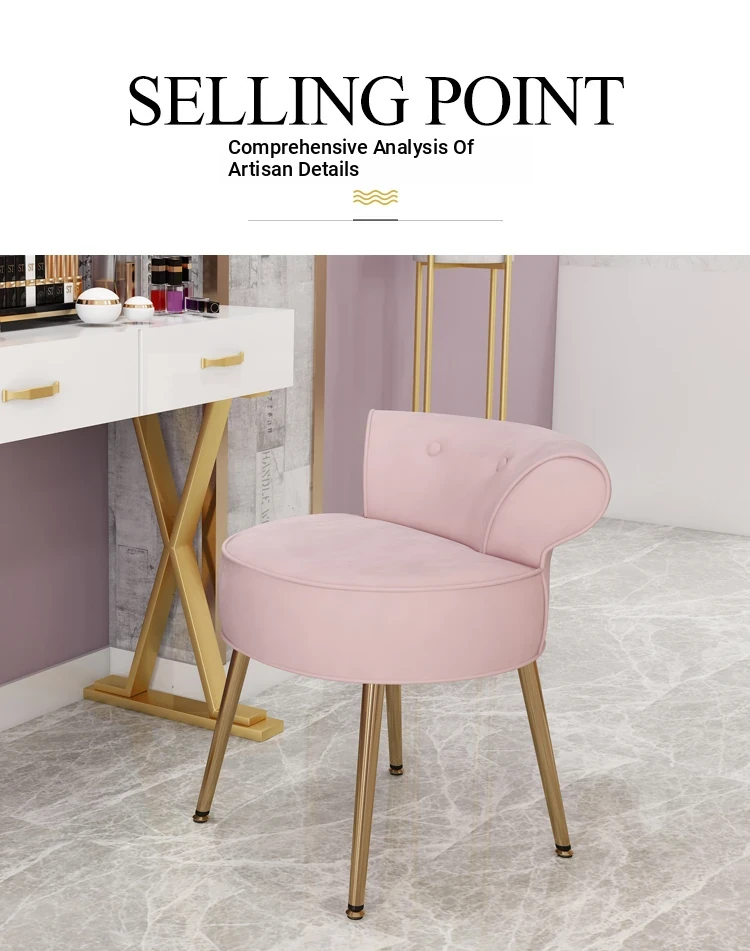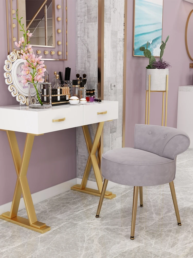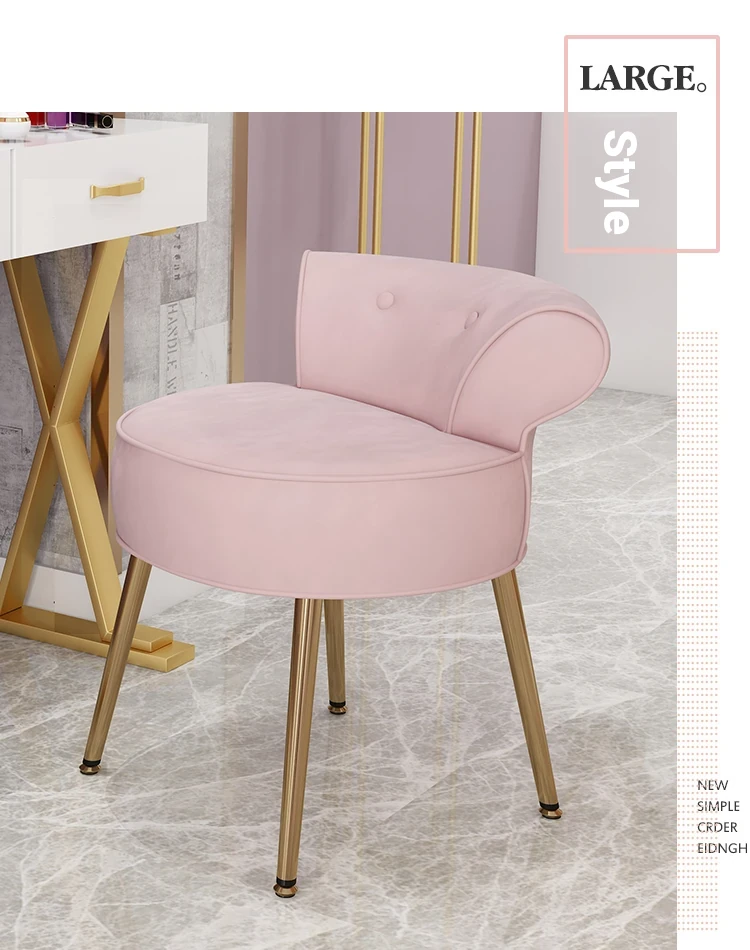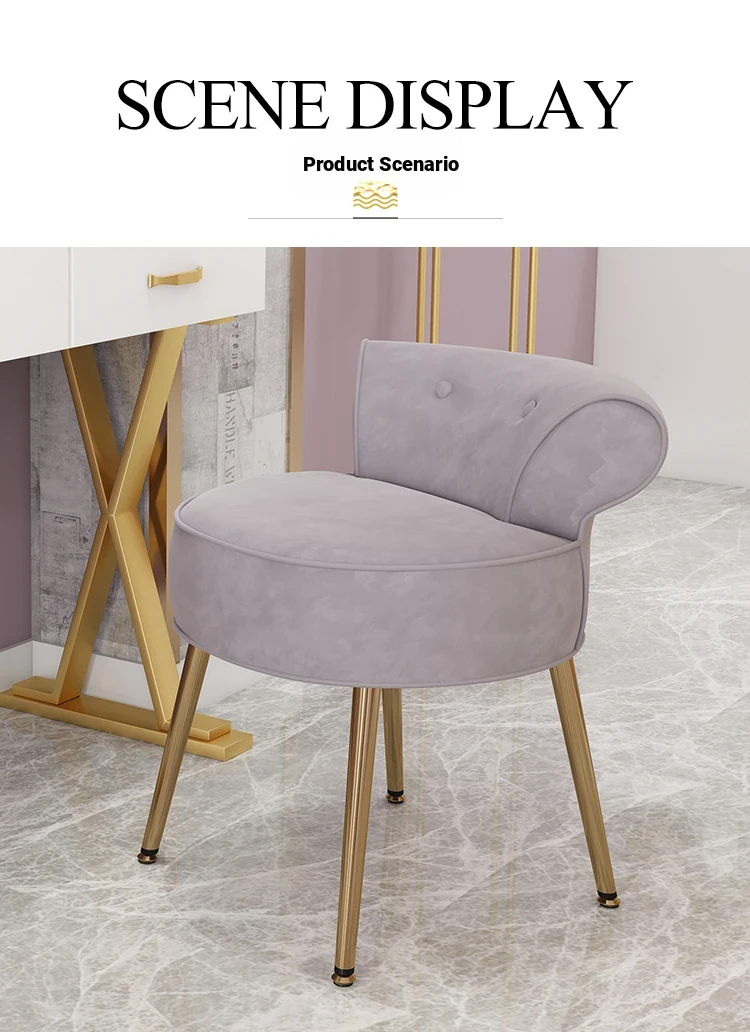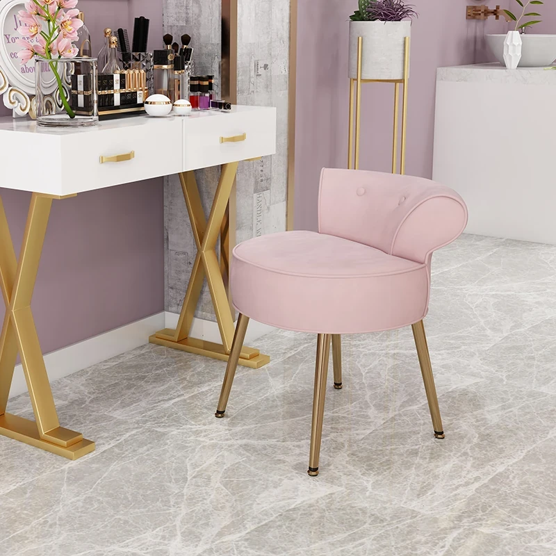 Chic Nordic Cream Velvet Makeup Stool with Backrest - Luxurious Home Vanity Chair with Golden Legs for a Modern Bedroom Look