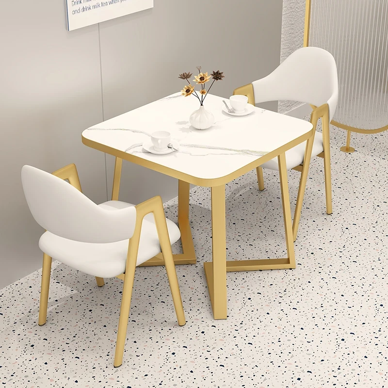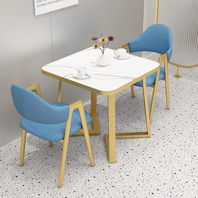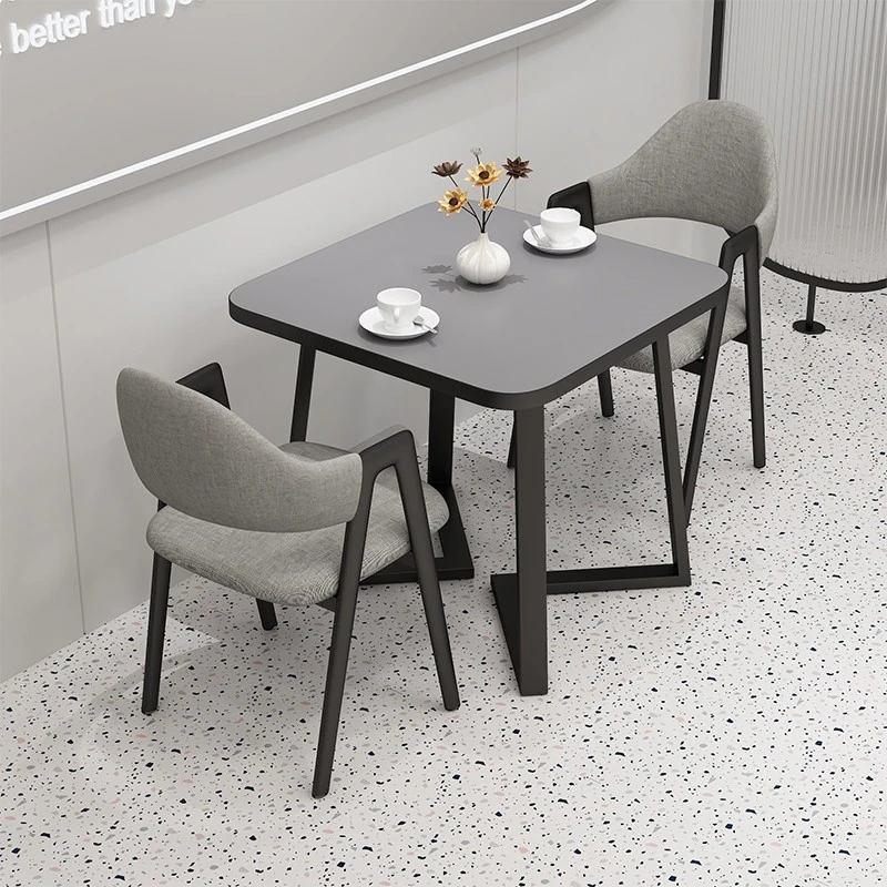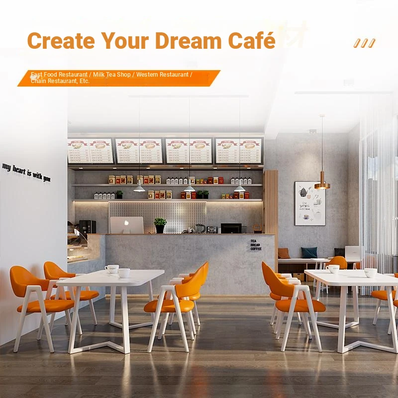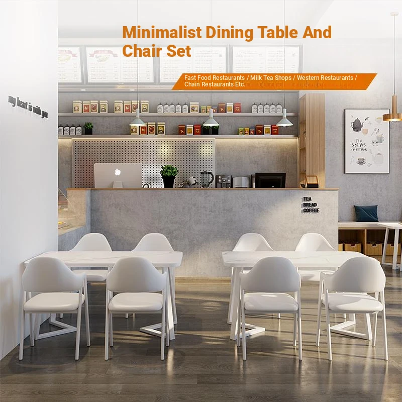 Commercial Rectangular Dining Table and Chairs for Dessert and Milk Tea Shops - Trendy Snack Bar Furniture for Quick Service Restaurants, Perfect for Meetings and Socializing