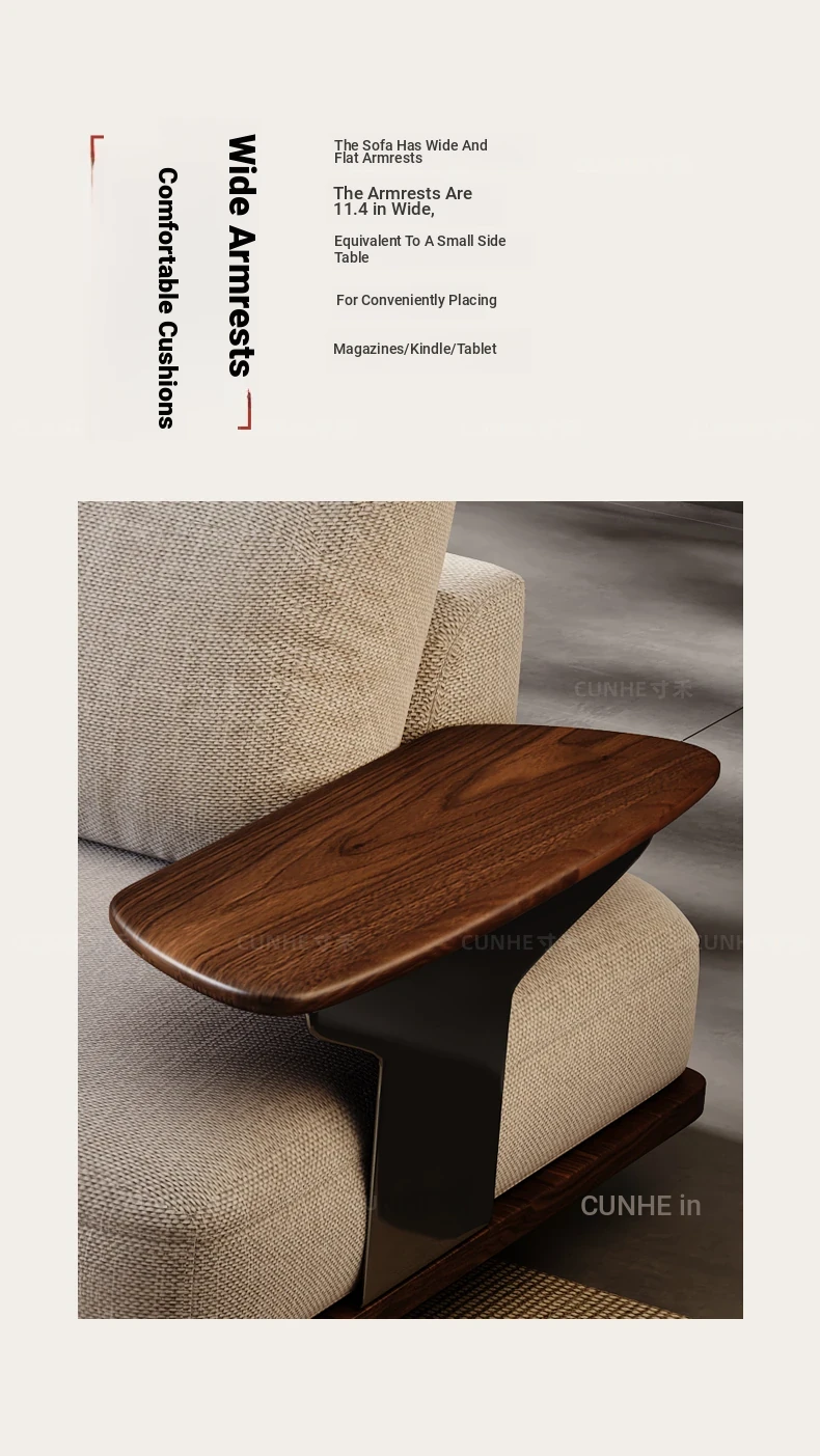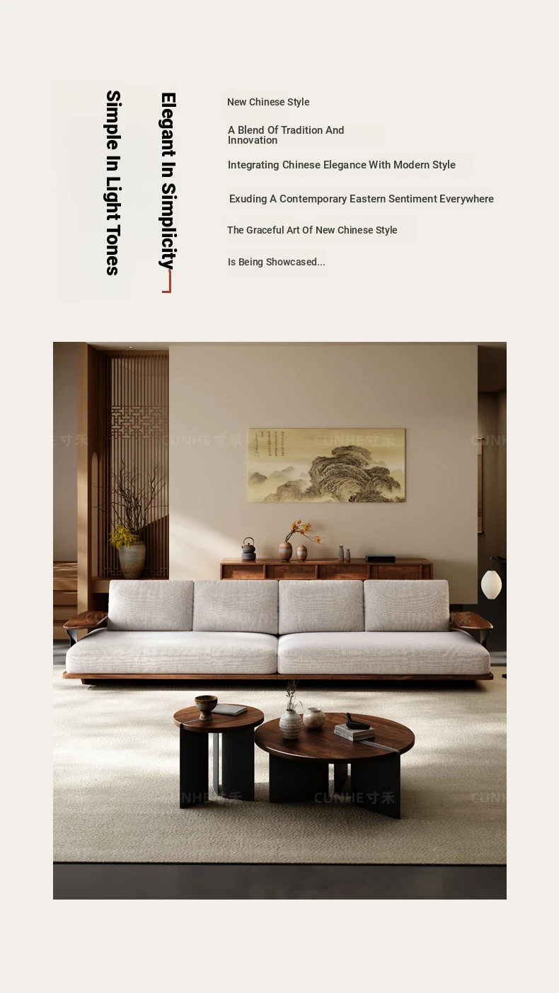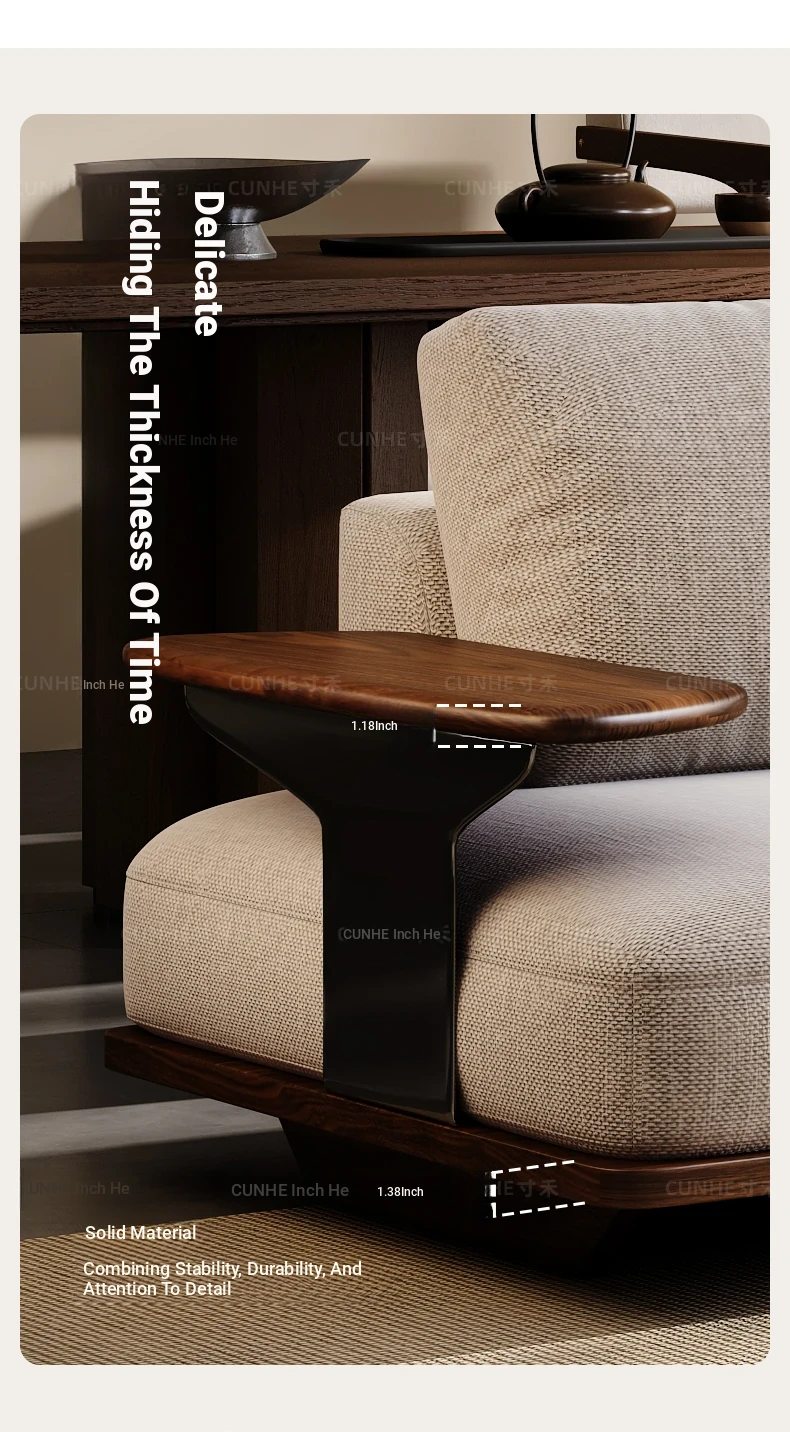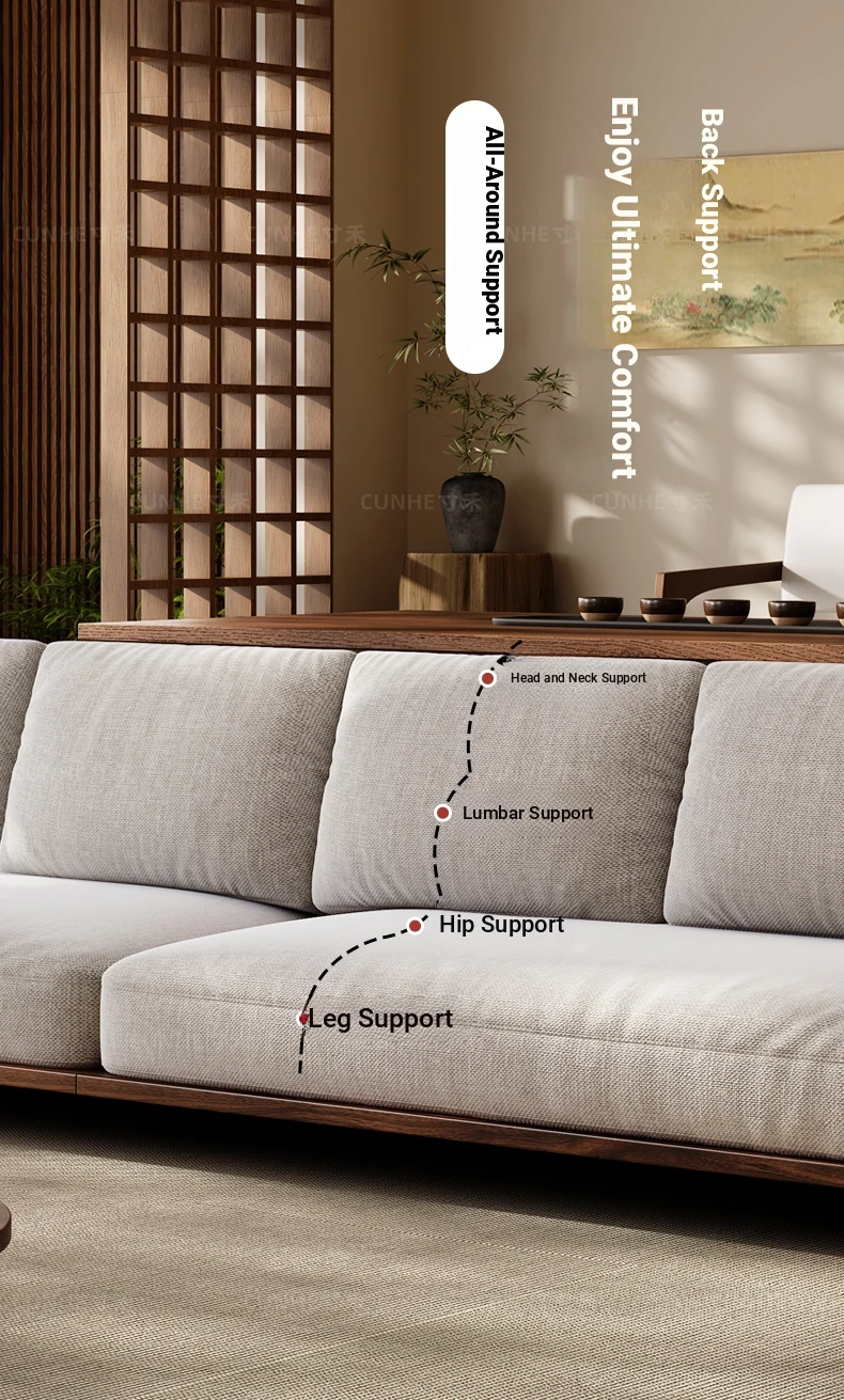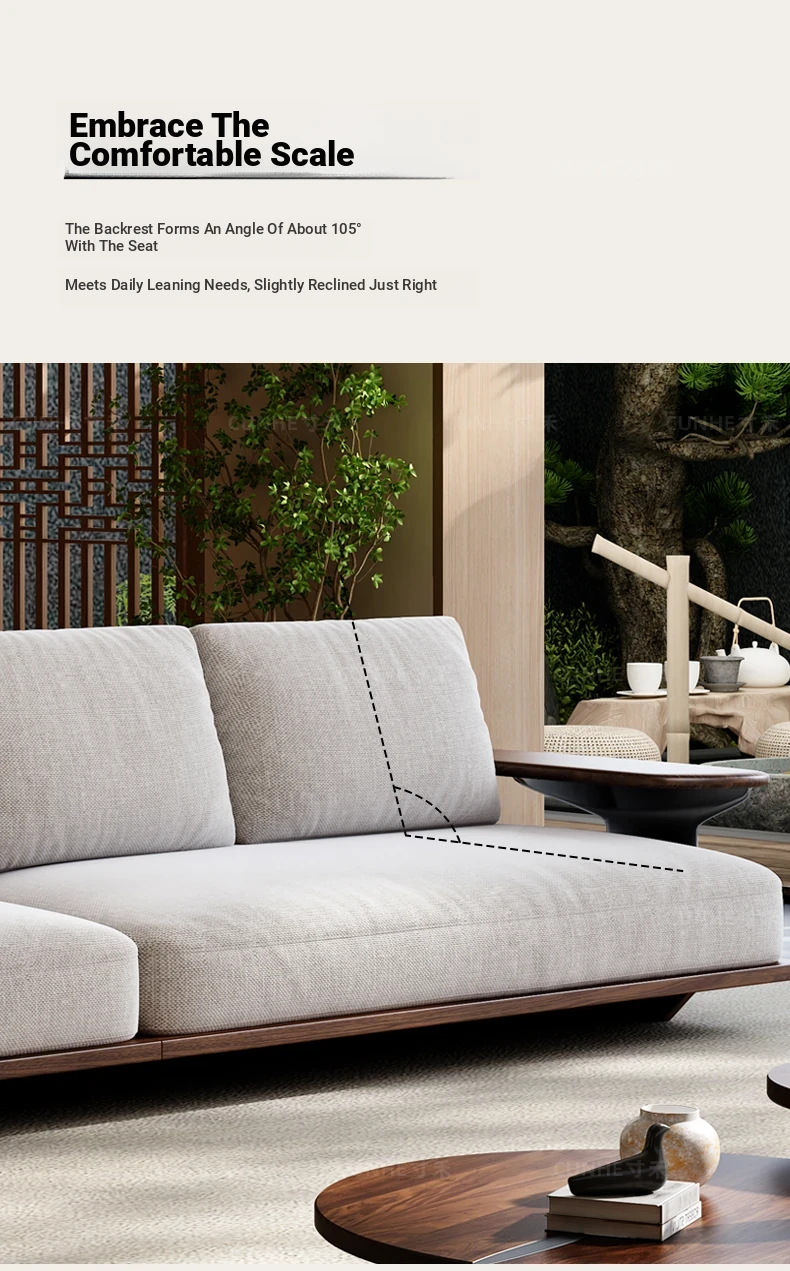 "Duanhe Song Style Aesthetic Walnut Wood New Chinese Cotton Linen Genuine Leather Solid Wood Sofa - Modern Minimalist Design for Living Room, 2025 New Arrival"