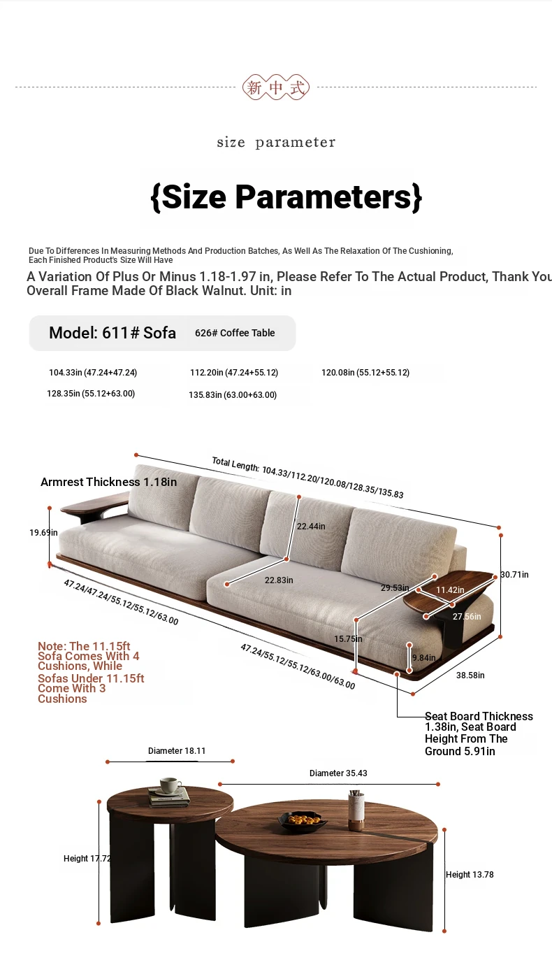 [Standard Edition] Four-person 120.08in [thickened first layer cowhide] + FAS black walnut
