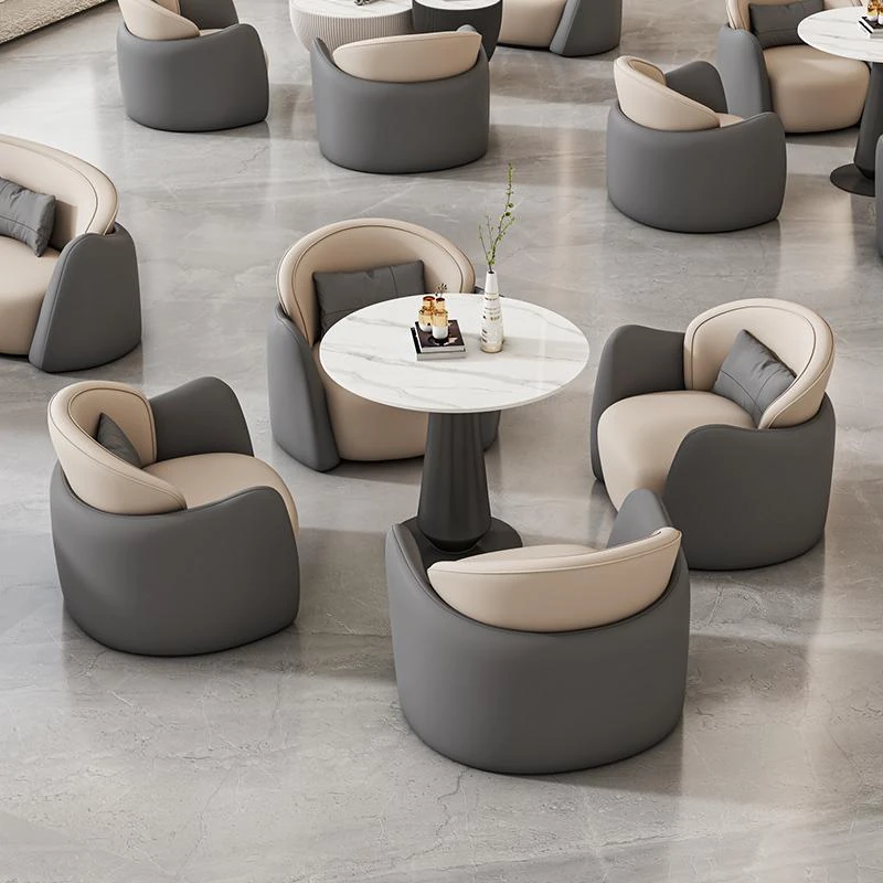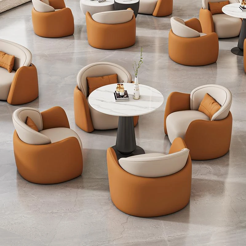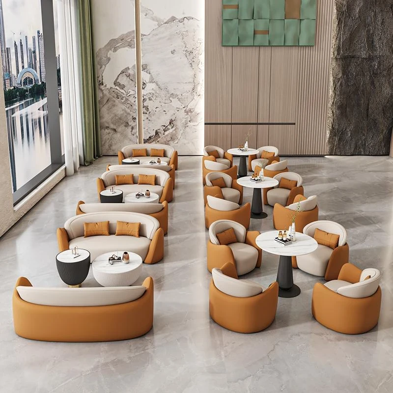 Elegant Leather Sofa Set for Hotel Lobbies and Business Offices - Perfect for Reception Areas and Meeting Spaces