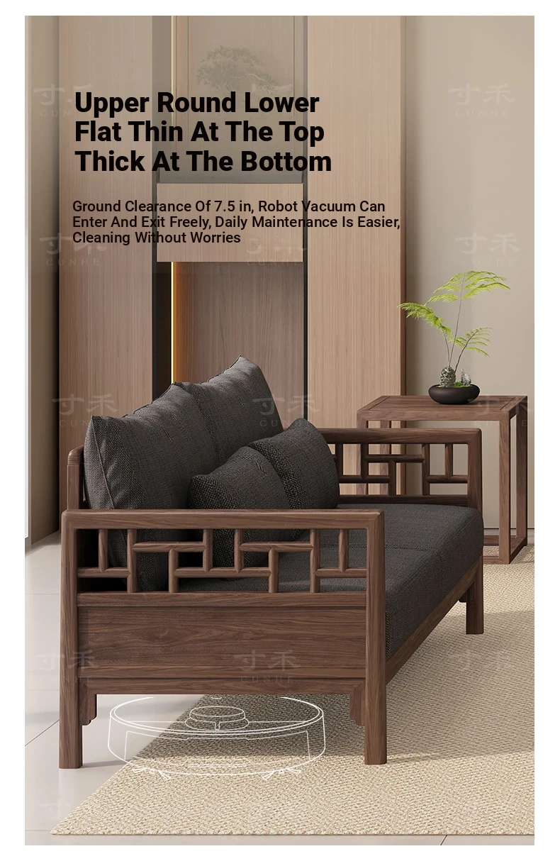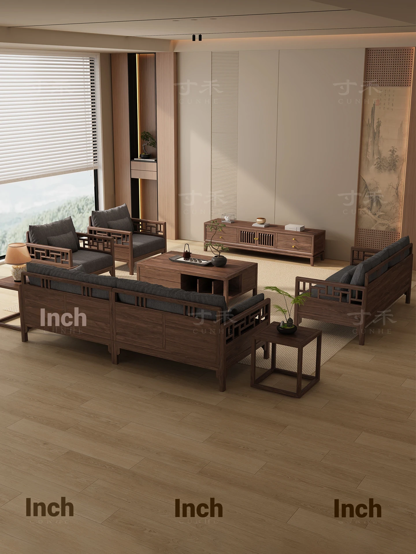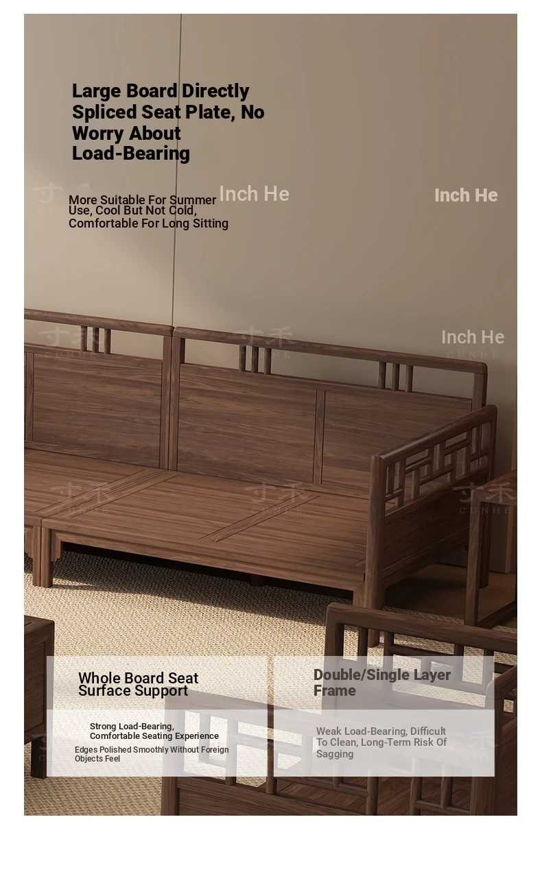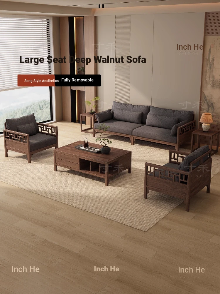 "Elegant Song Dynasty Aesthetic Solid Walnut Sofa - New Chinese Style Tea House Booth for Living Room & Villa - 2025 Latest Design"
