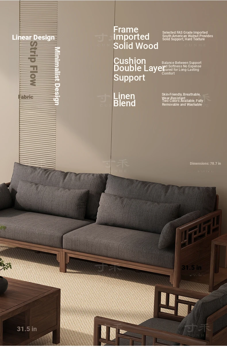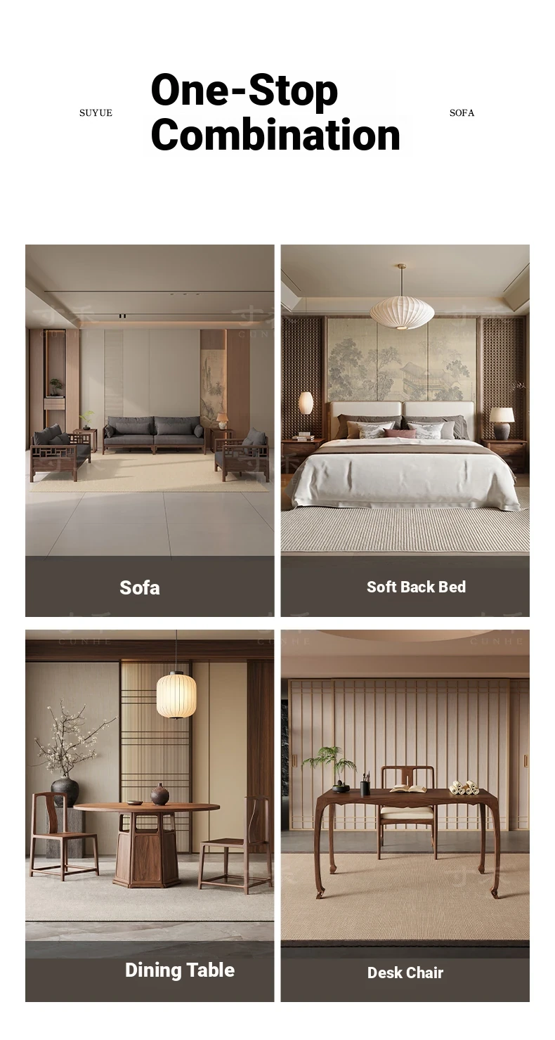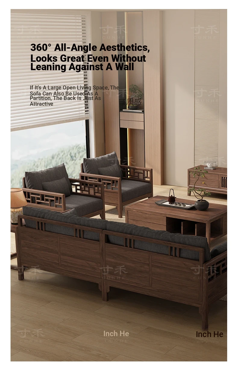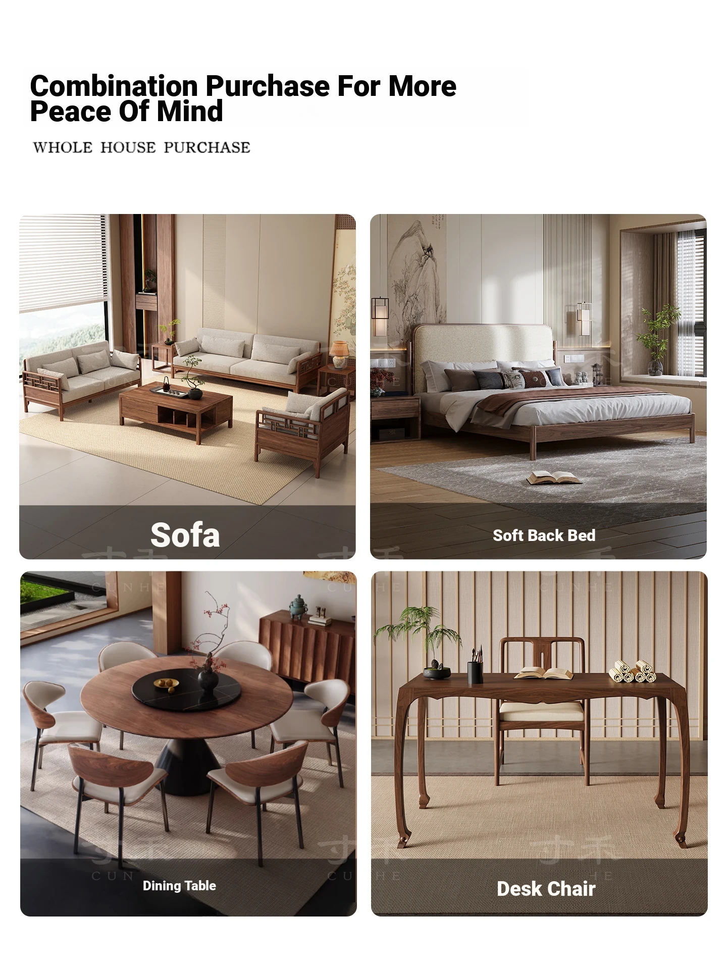 "Elegant Song Dynasty Aesthetic Solid Walnut Sofa - New Chinese Style Tea House Booth for Living Room & Villa - 2025 Latest Design"