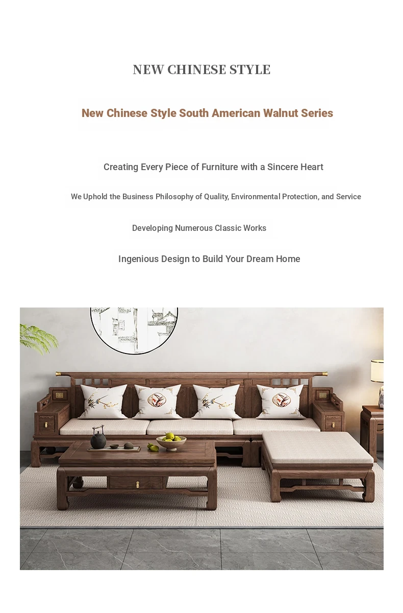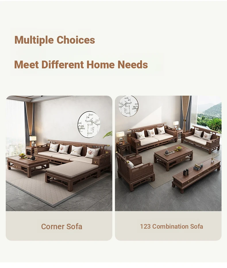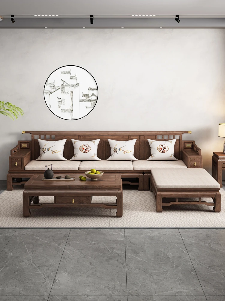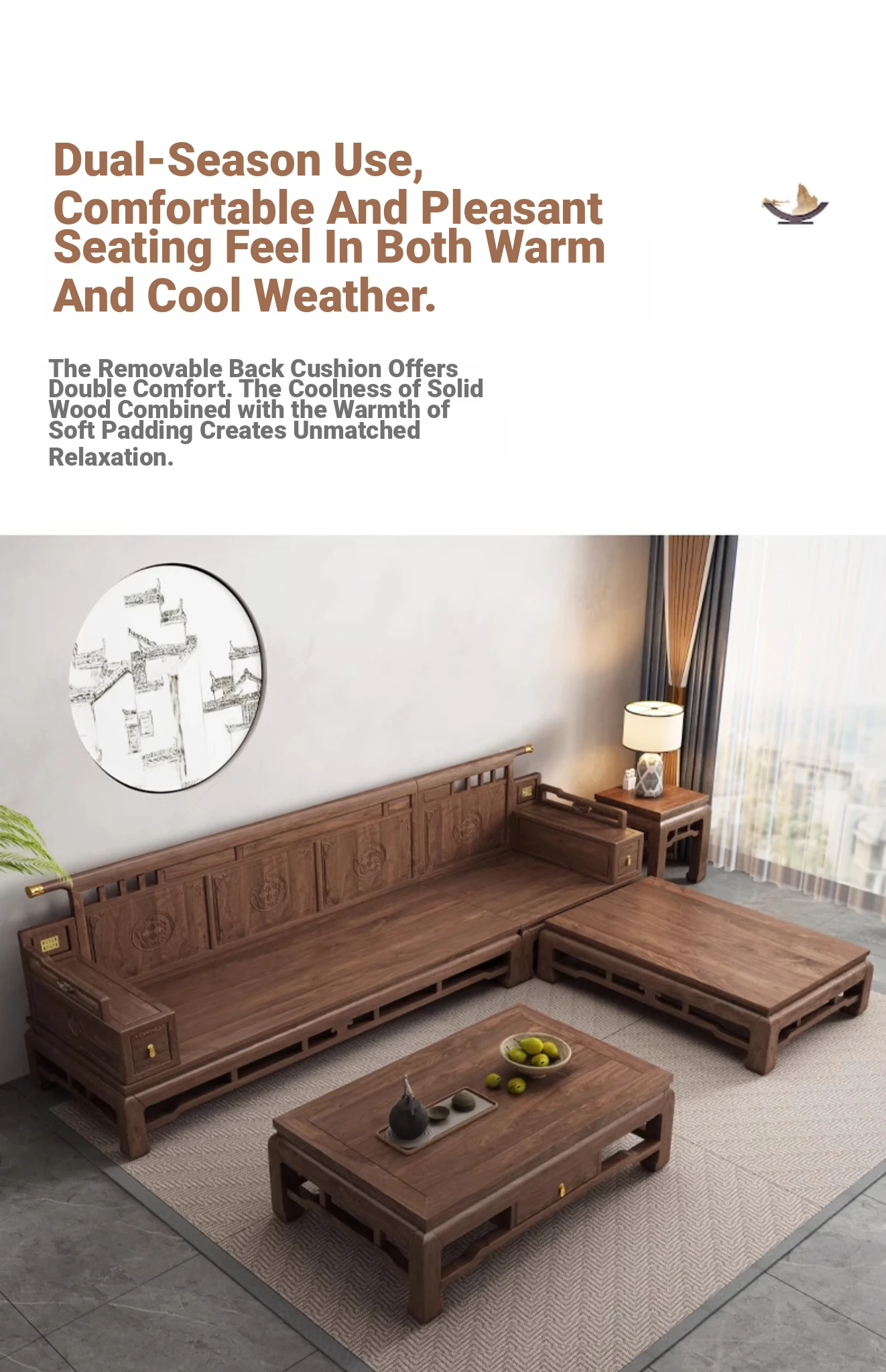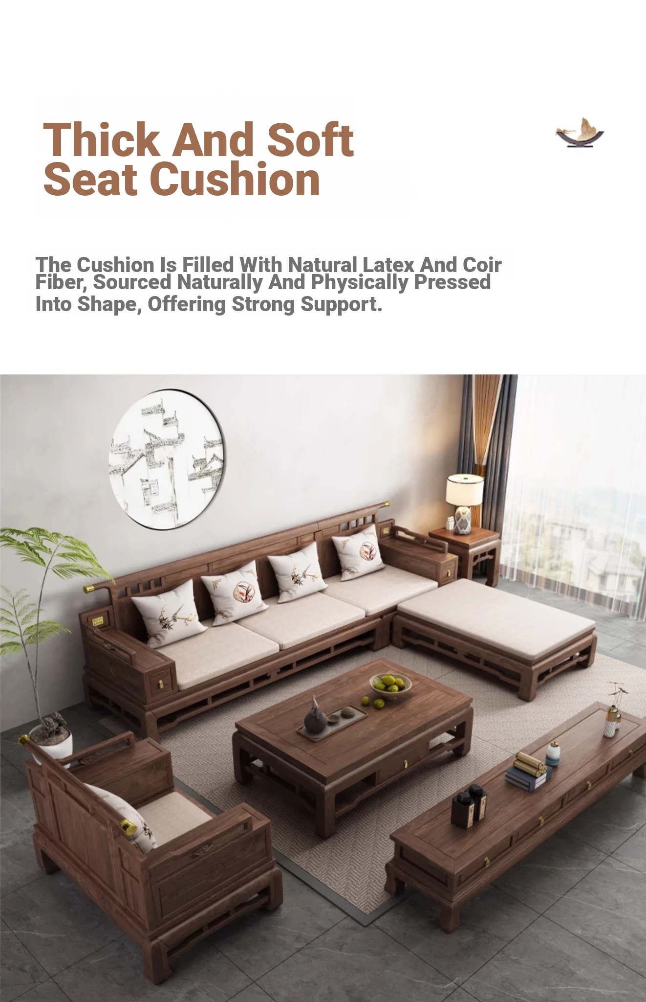 Elegant Song Style Aesthetic: South American Walnut Solid Wood Sofa for Small Spaces - Modern Chinese Corner Sofa with Chaise Lounge for Home Living Room