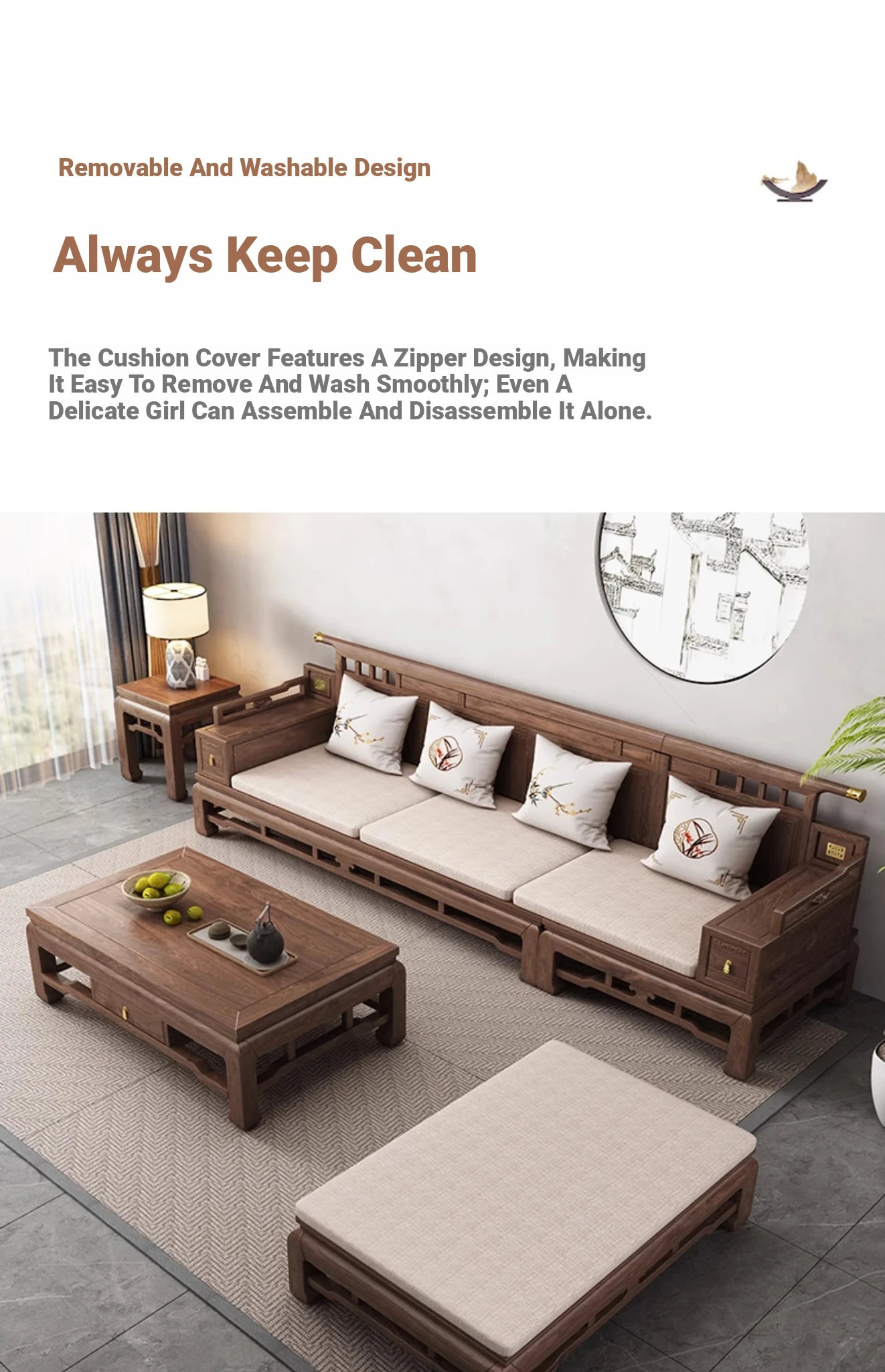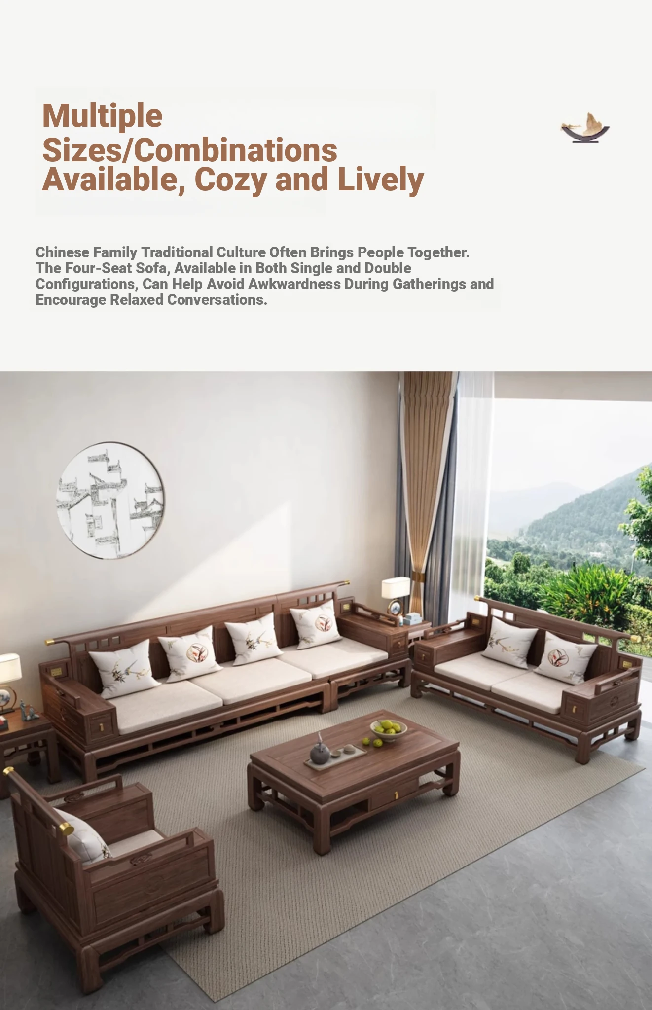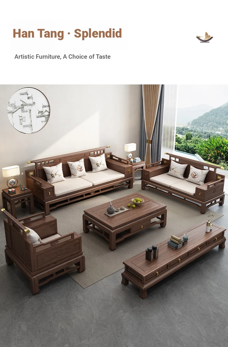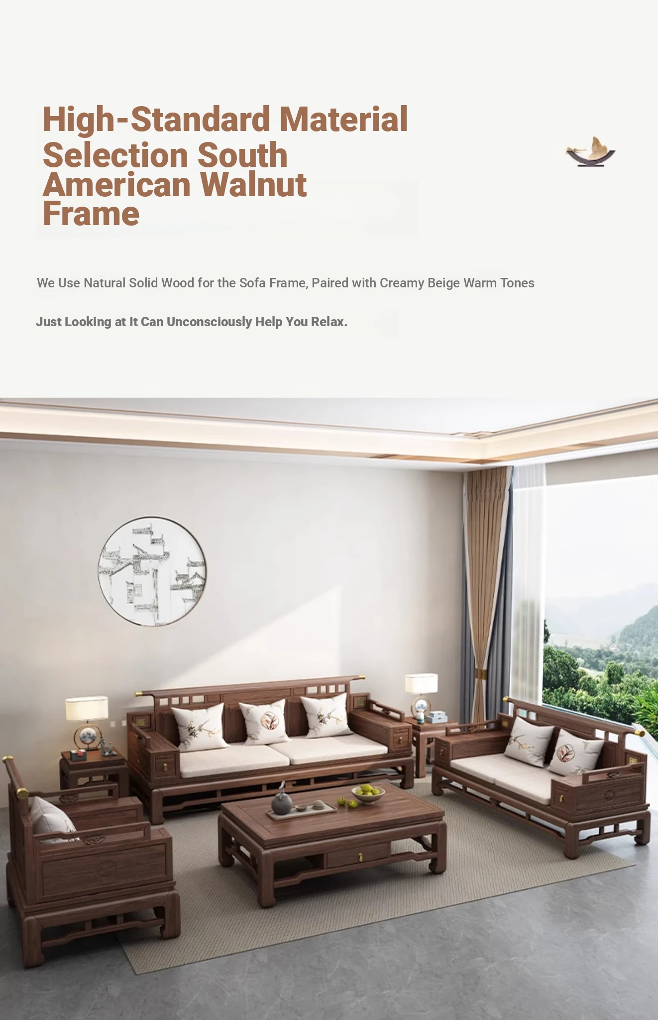 Elegant Song Style Aesthetic: South American Walnut Solid Wood Sofa for Small Spaces - Modern Chinese Corner Sofa with Chaise Lounge for Home Living Room