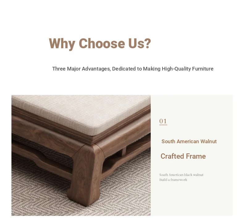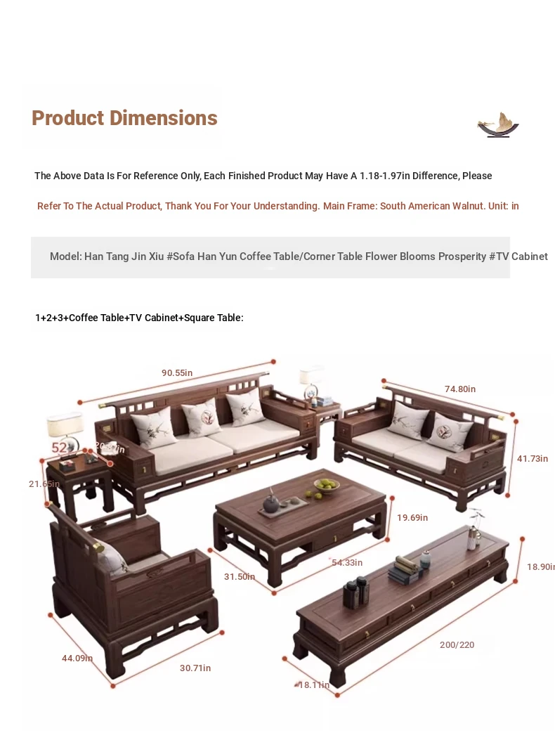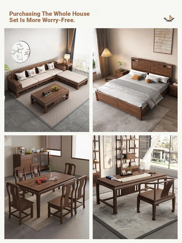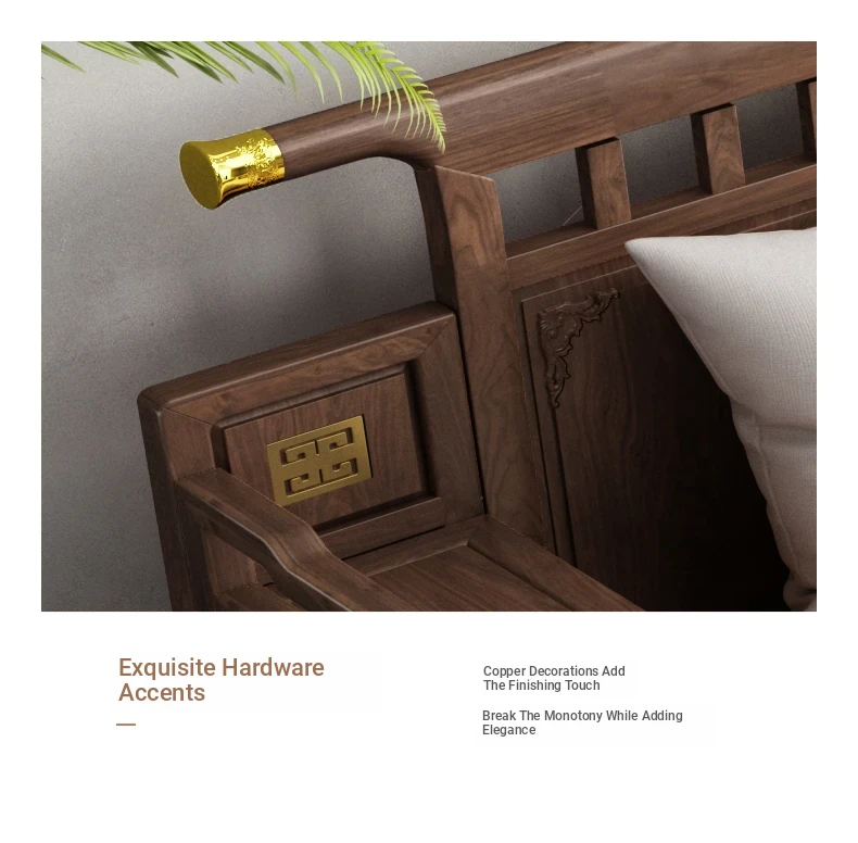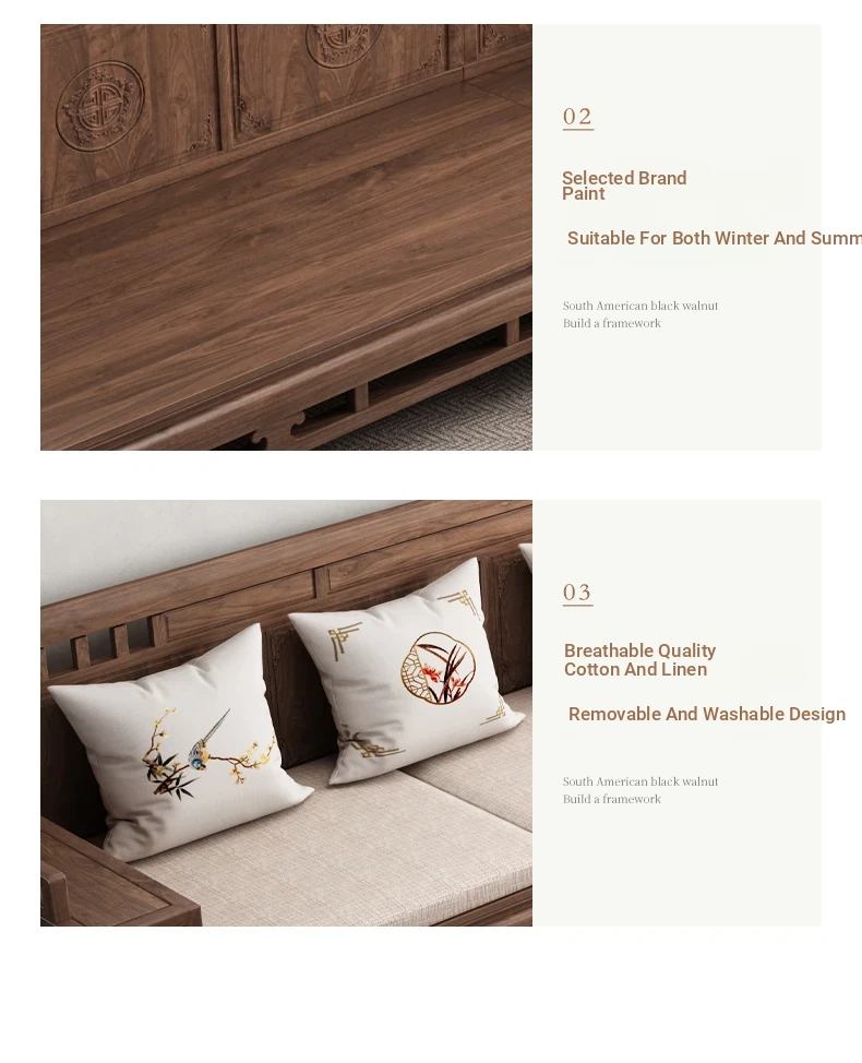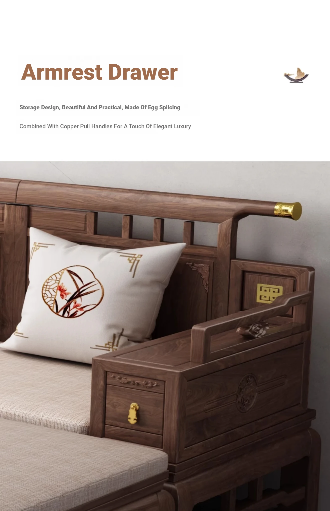 Elegant Song Style Aesthetic: South American Walnut Solid Wood Sofa for Small Spaces - Modern Chinese Corner Sofa with Chaise Lounge for Home Living Room