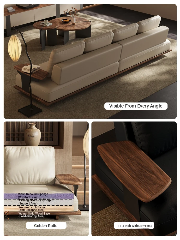 [Standard Edition] Four-person 127.95in [thickened first layer cowhide] + FAS black walnut