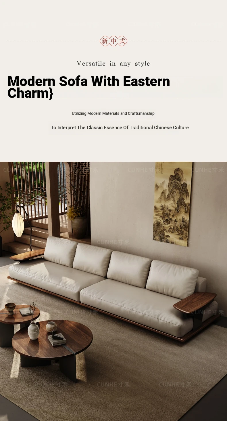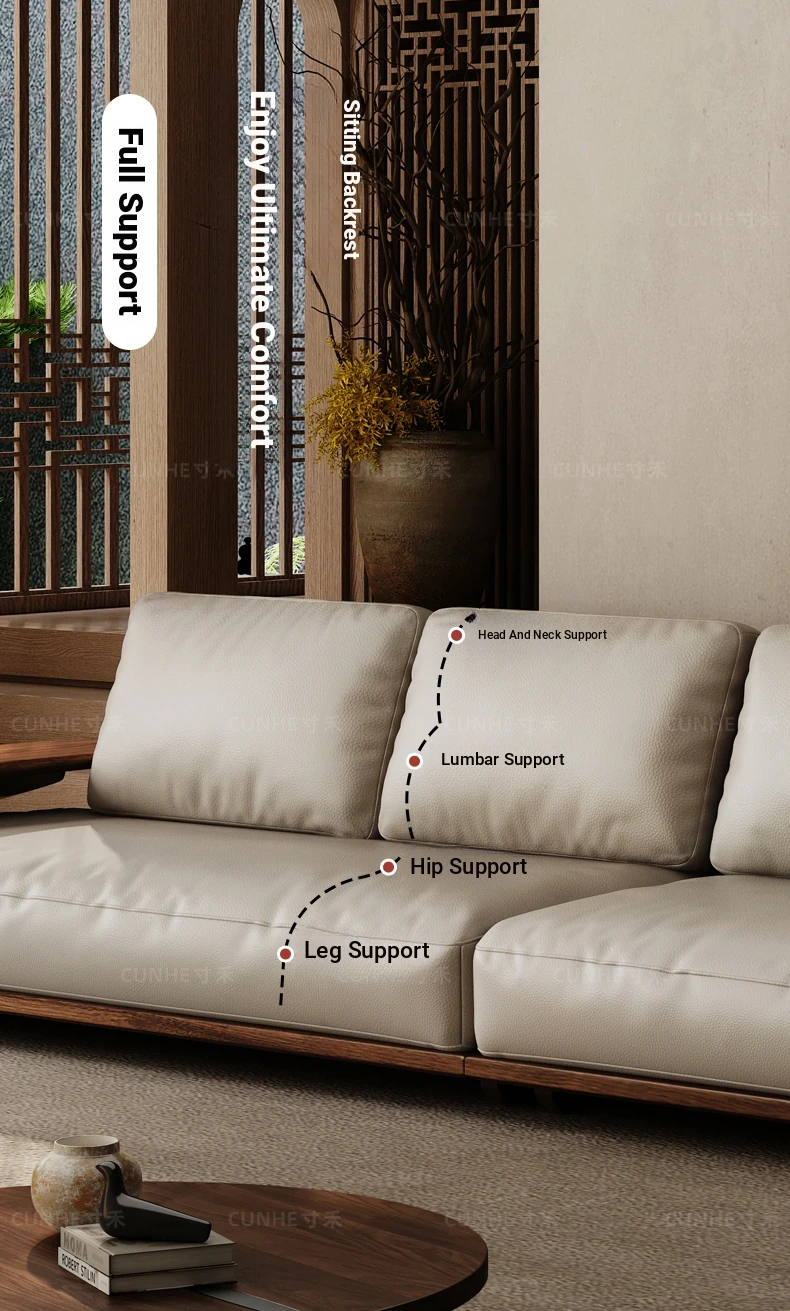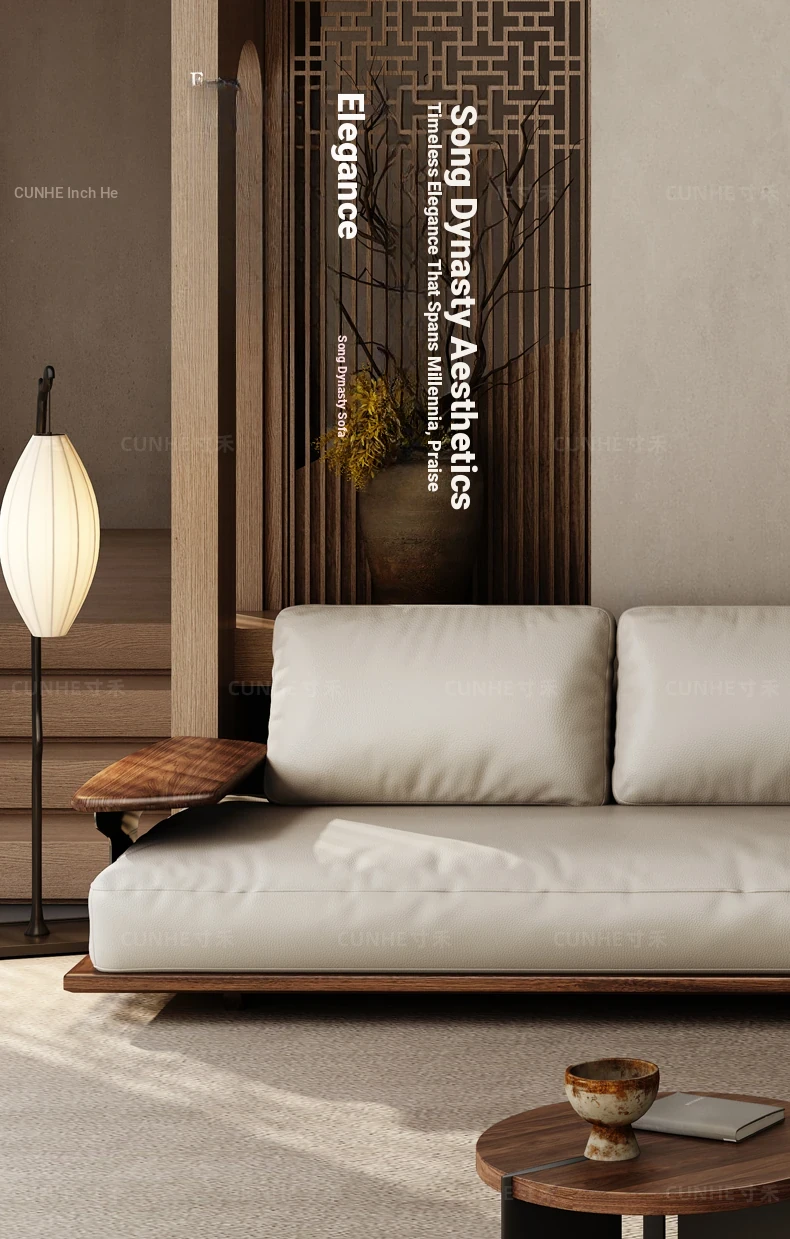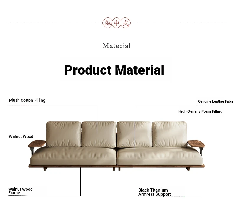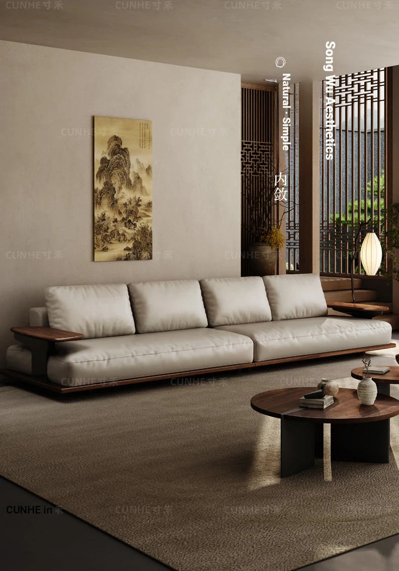 Elegant Song Style Black Walnut Leather Sofa - Premium Solid Wood with Top Layer Cowhide for a Modern Chinese Living Room - 2025 New Collection