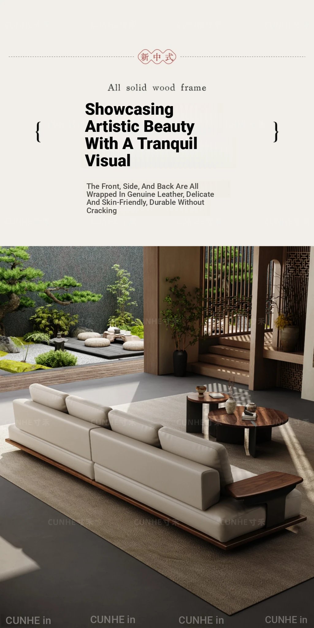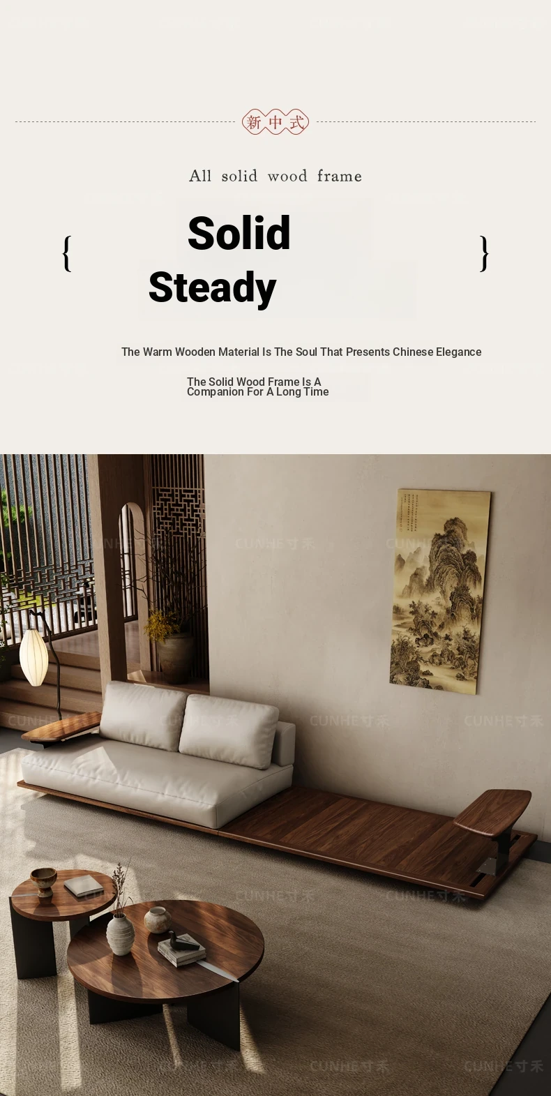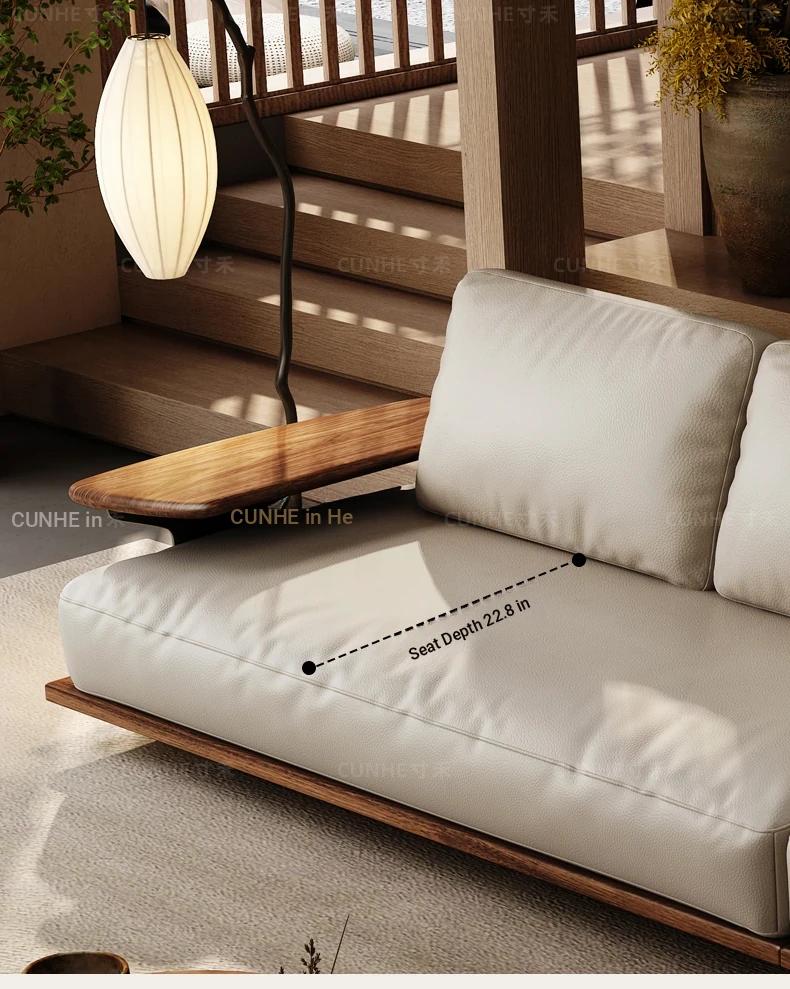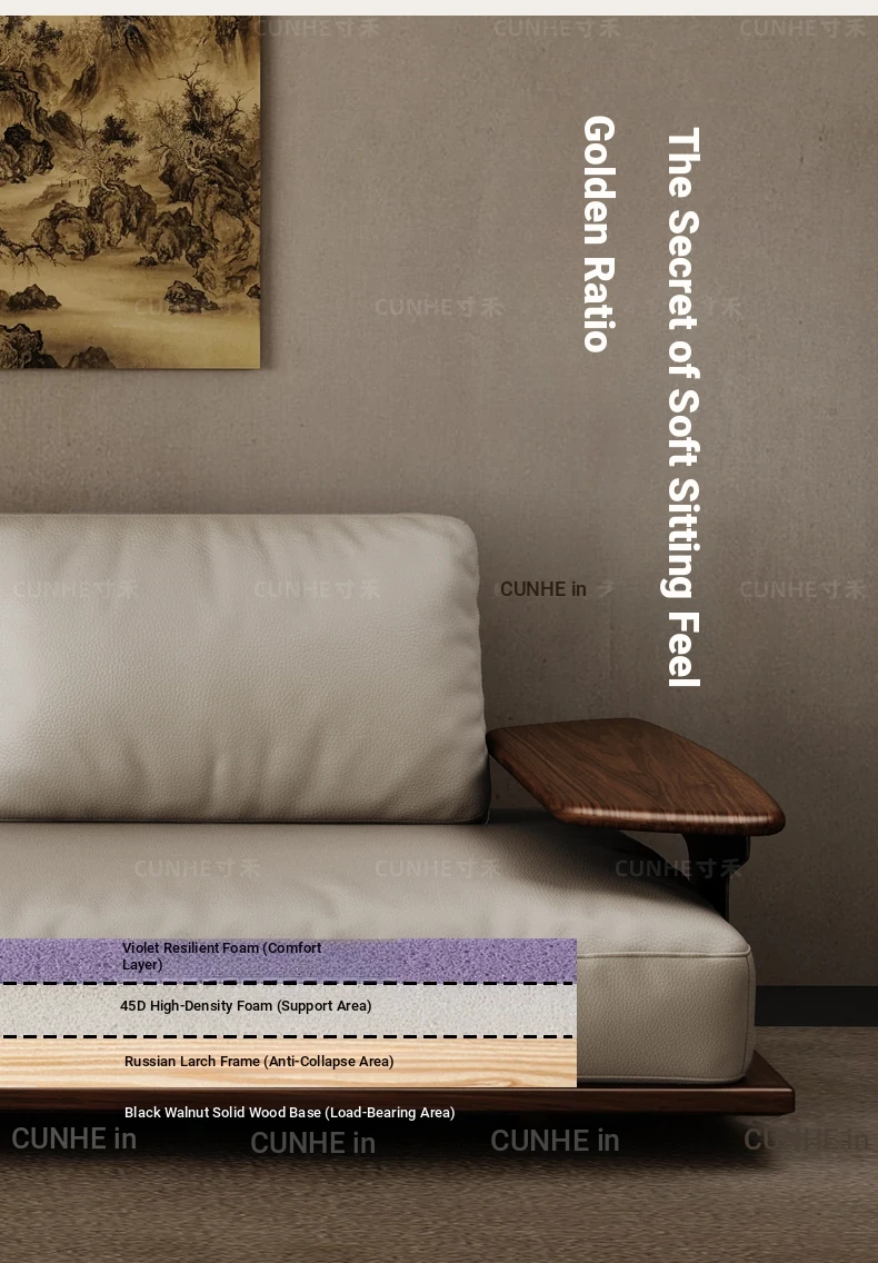 Elegant Song Style Black Walnut Leather Sofa - Premium Solid Wood with Top Layer Cowhide for a Modern Chinese Living Room - 2025 New Collection