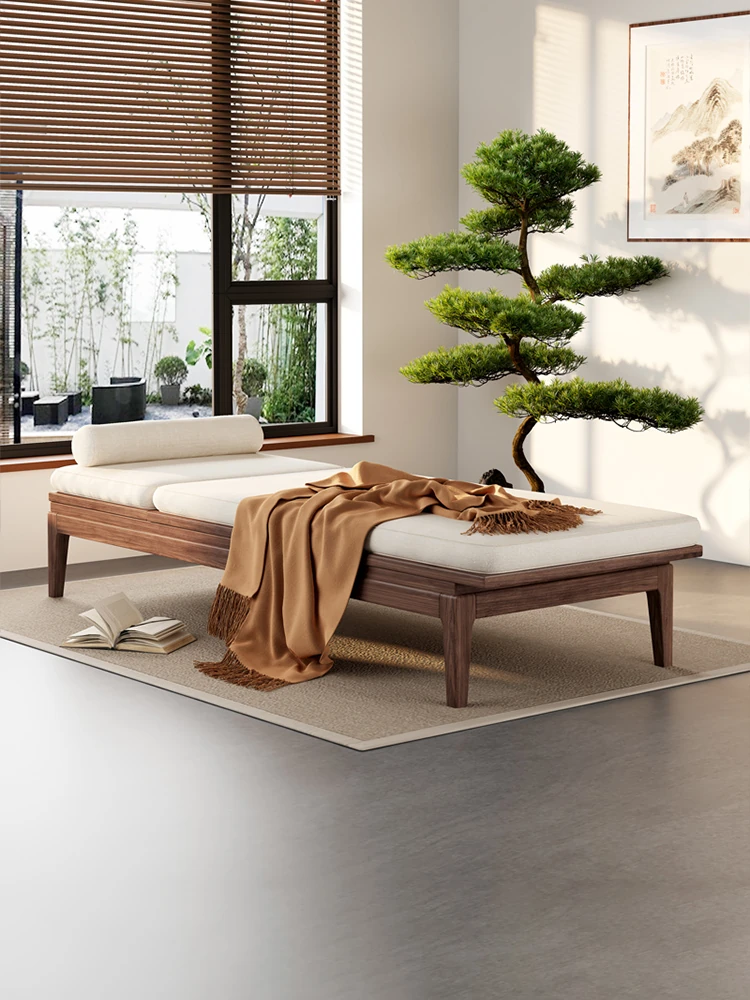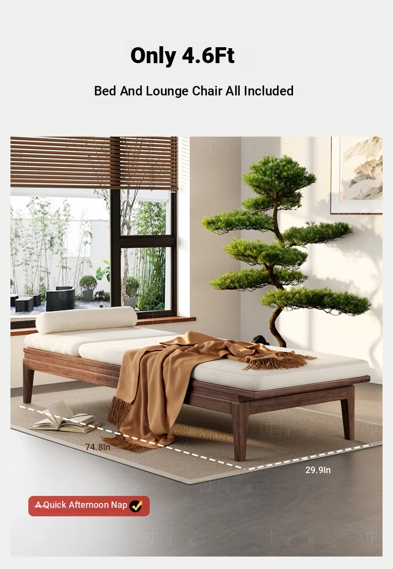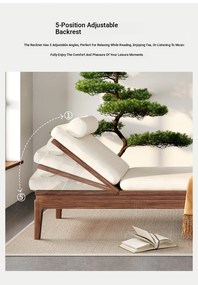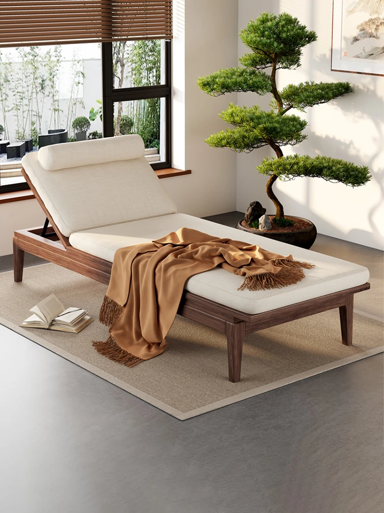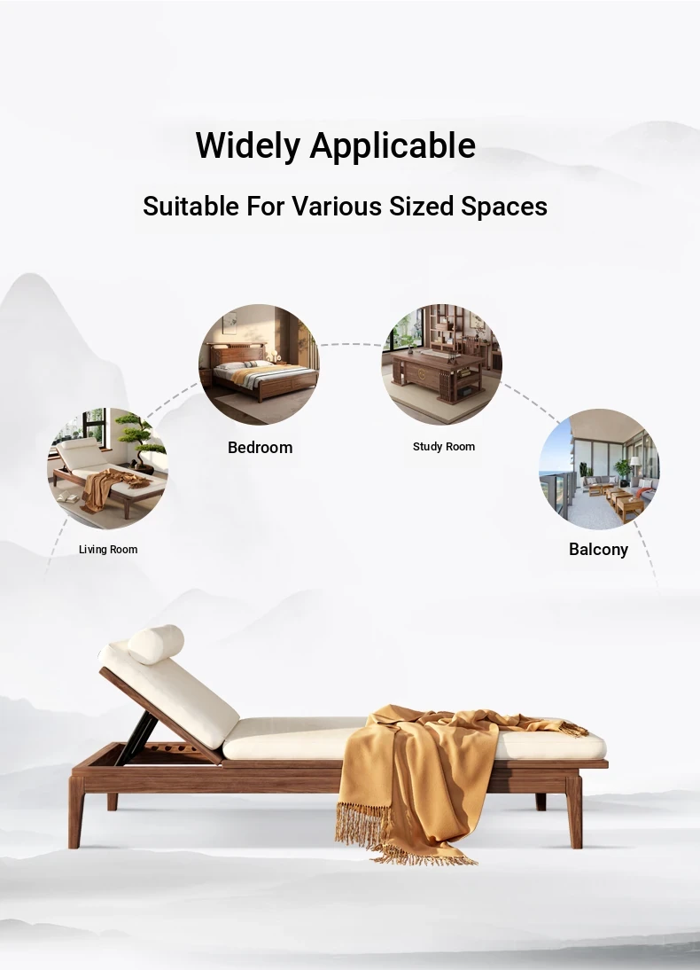 Elegant Song-style Aesthetic South American Walnut Folding Chaise Lounge - Solid Wood Sofa Bed for Living Room Relaxation
