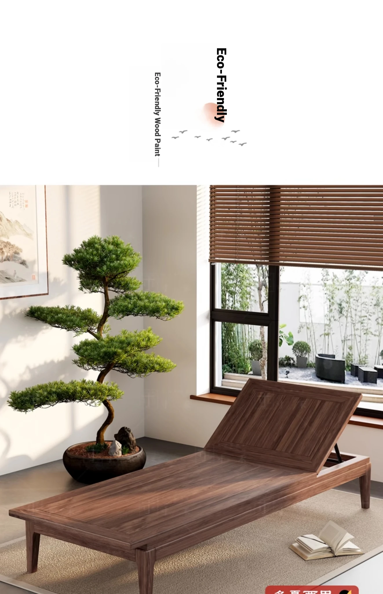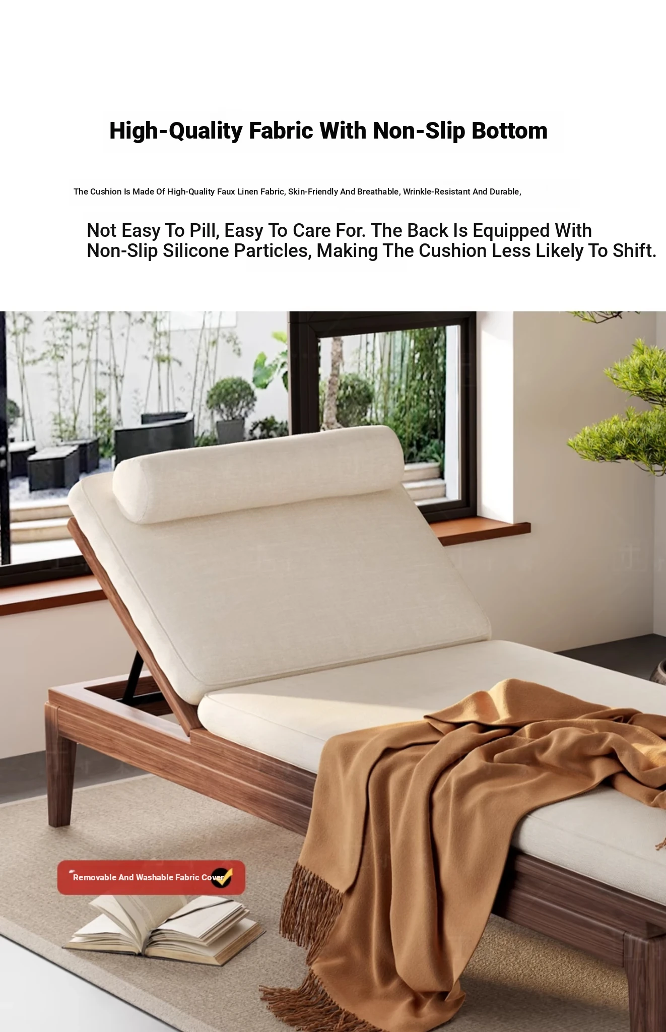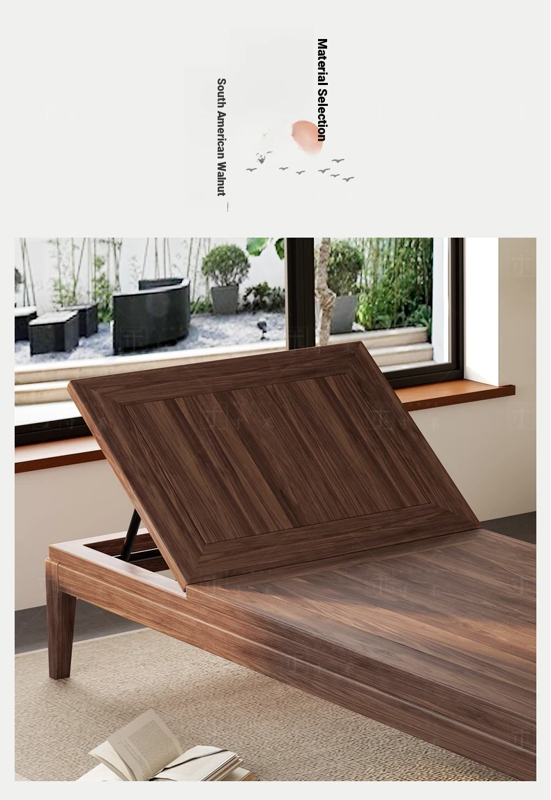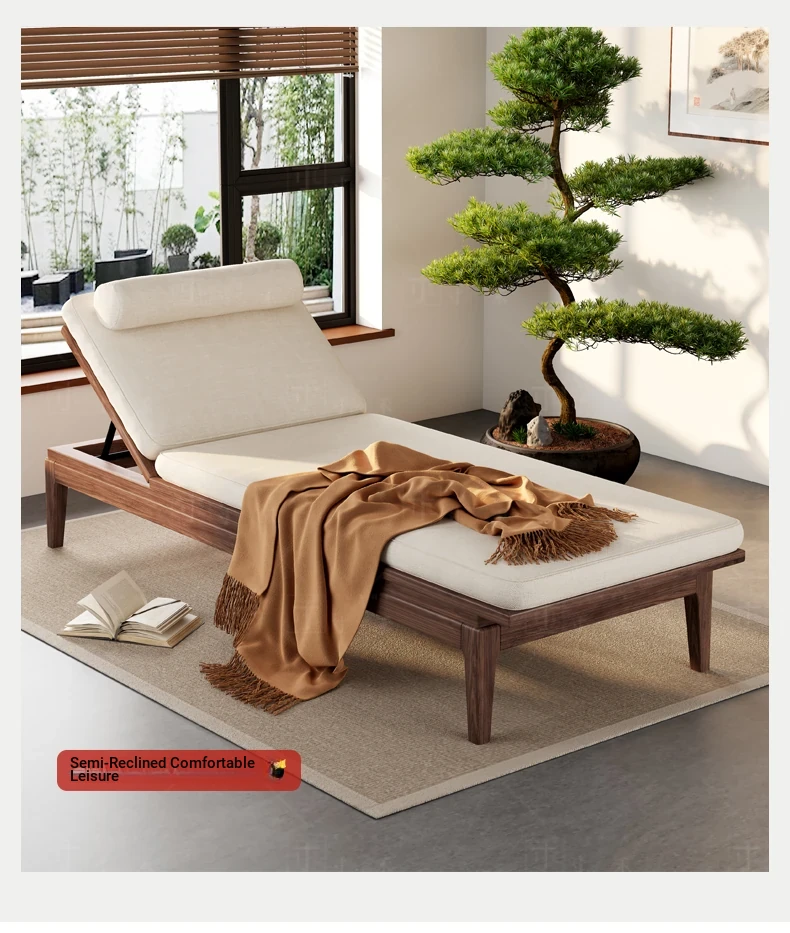 Elegant Song-style Aesthetic South American Walnut Folding Chaise Lounge - Solid Wood Sofa Bed for Living Room Relaxation