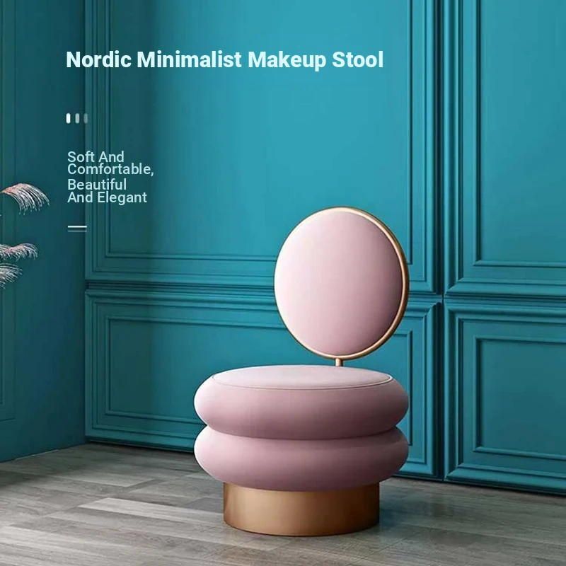 Minimalist Scandinavian Vanity Stool - Chic Bedroom Makeup Chair with Backrest, Perfect for Nail Art and Beauty Routines - Stylish INS Makeup Seat for Ultimate Comfort