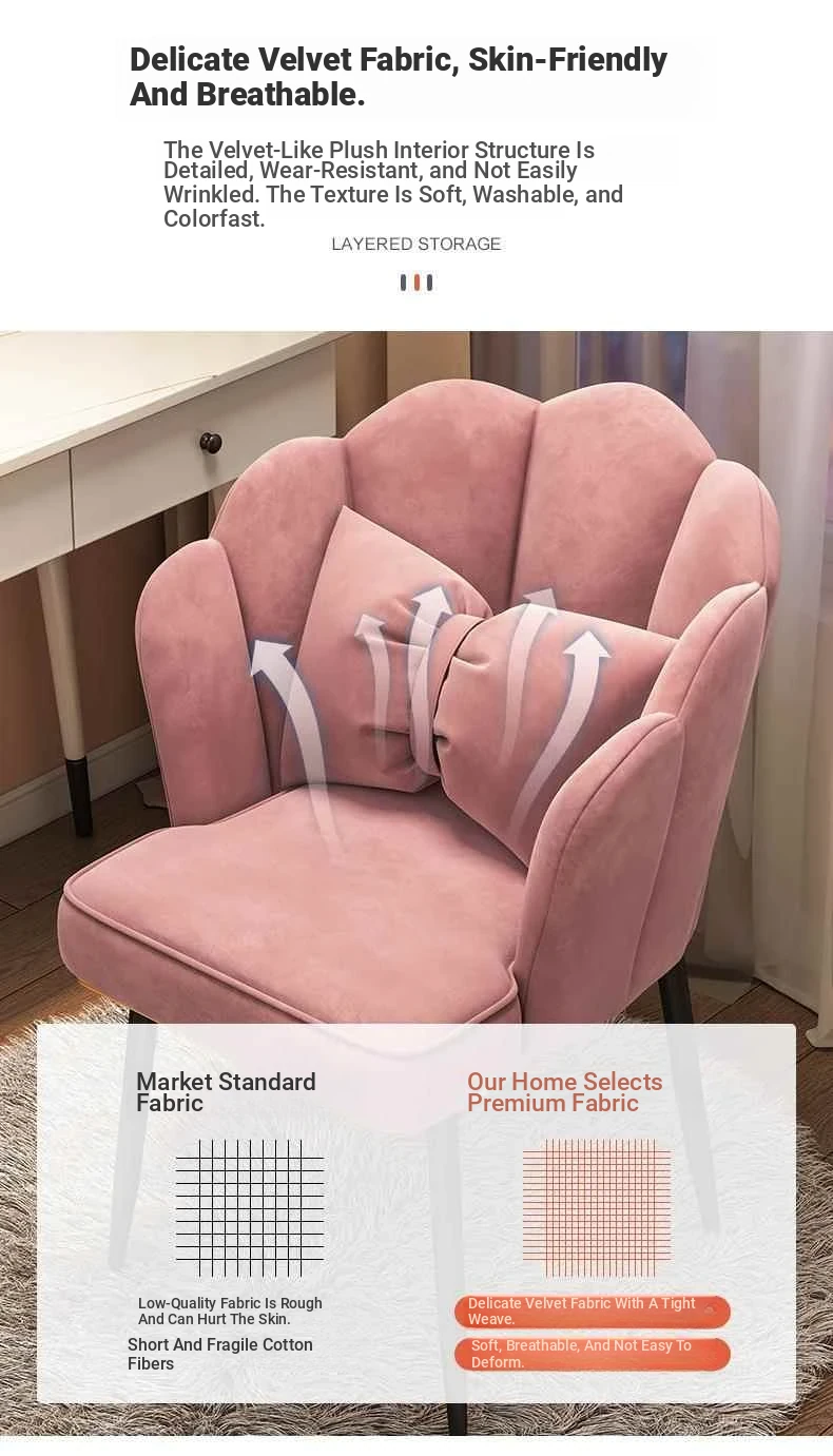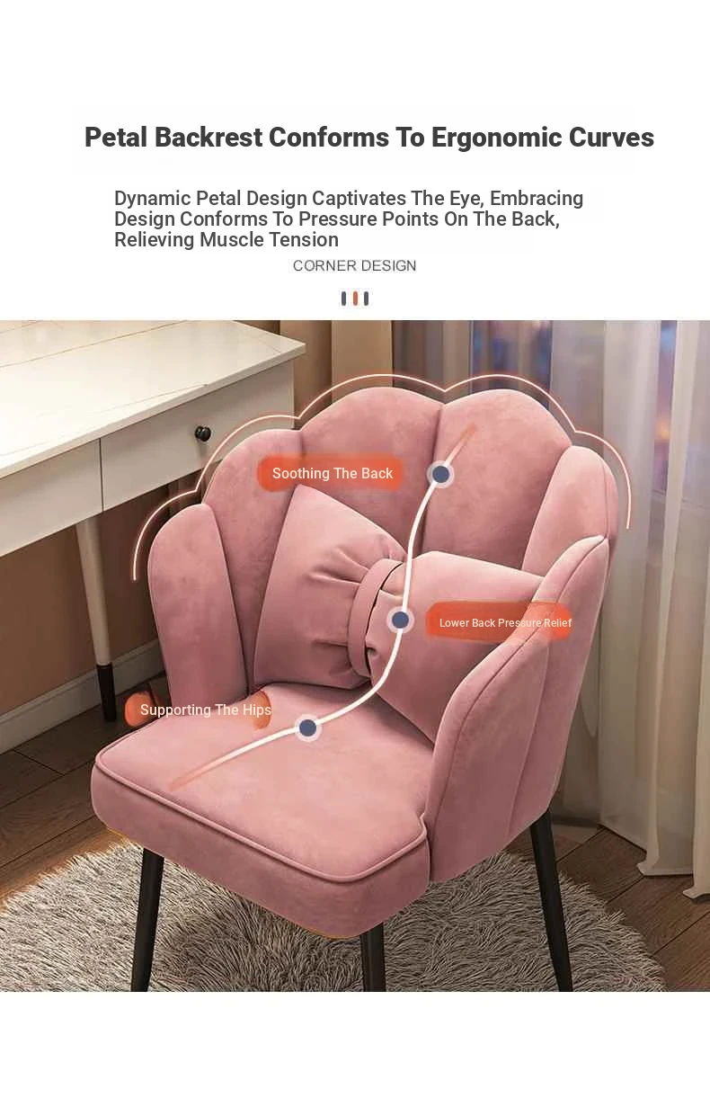 Nordic Style Vanity Chair with Backrest - Cozy and Chic Stool for Home Use, Perfect for Girls' Bedrooms and Trendy Nail Art.