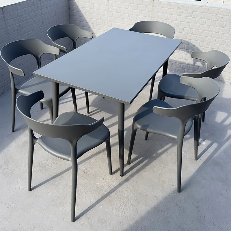 [Dark gray] 6 chairs +59.06in*31.50in carbon steel long table