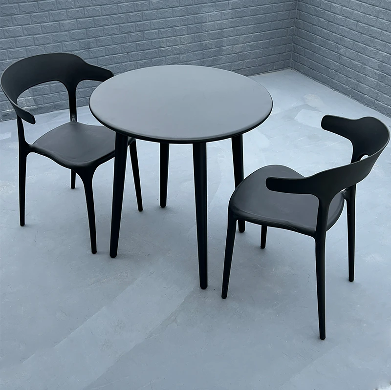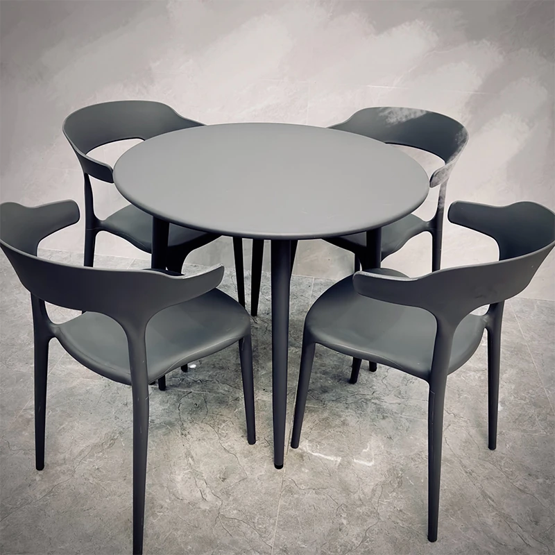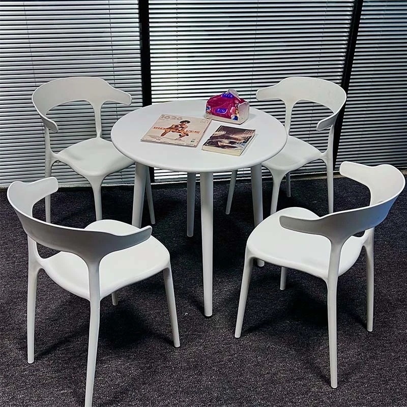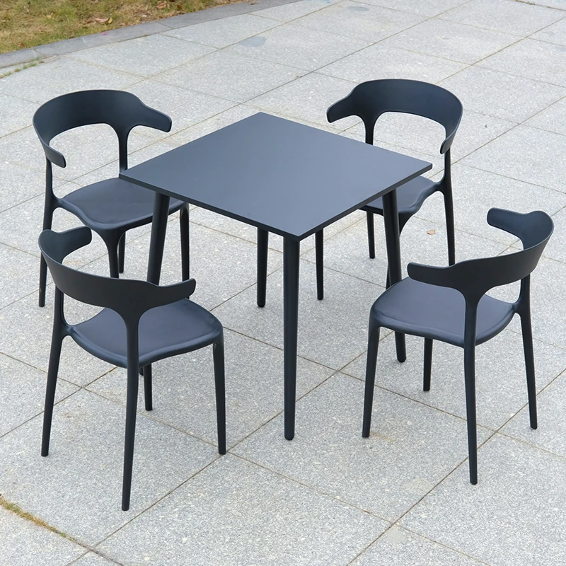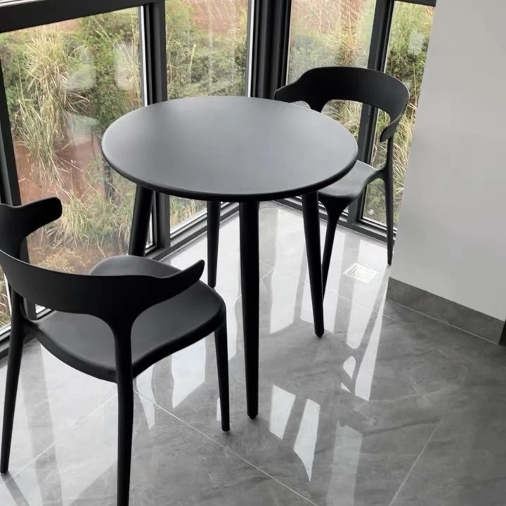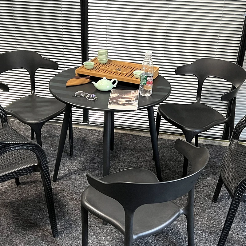 Outdoor Plastic Milk Tea Shop Table and Chair Set - Trendy Small Round Table for Commercial Use, Perfect for Casual Meetings with One Table and Four Chairs