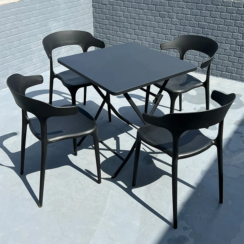 [Black] 4 chairs +27.56in carbon steel Foldable square table