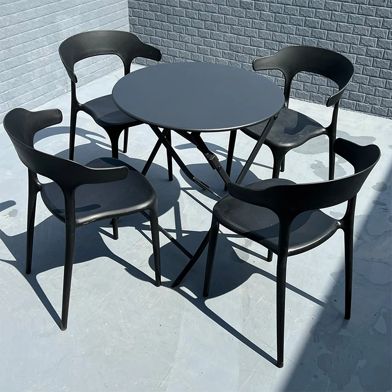 [Dark gray] 4 chairs +27.56in carbon steel round table