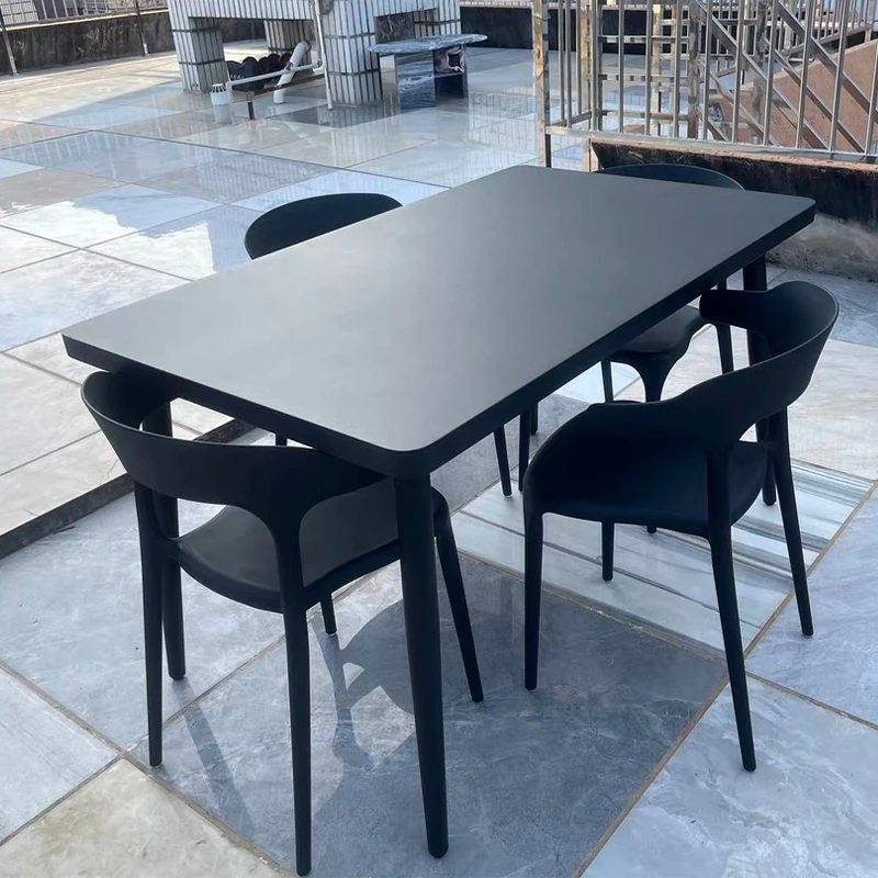 [Black] 4 chairs +47.24in*27.56in carbon steel long table